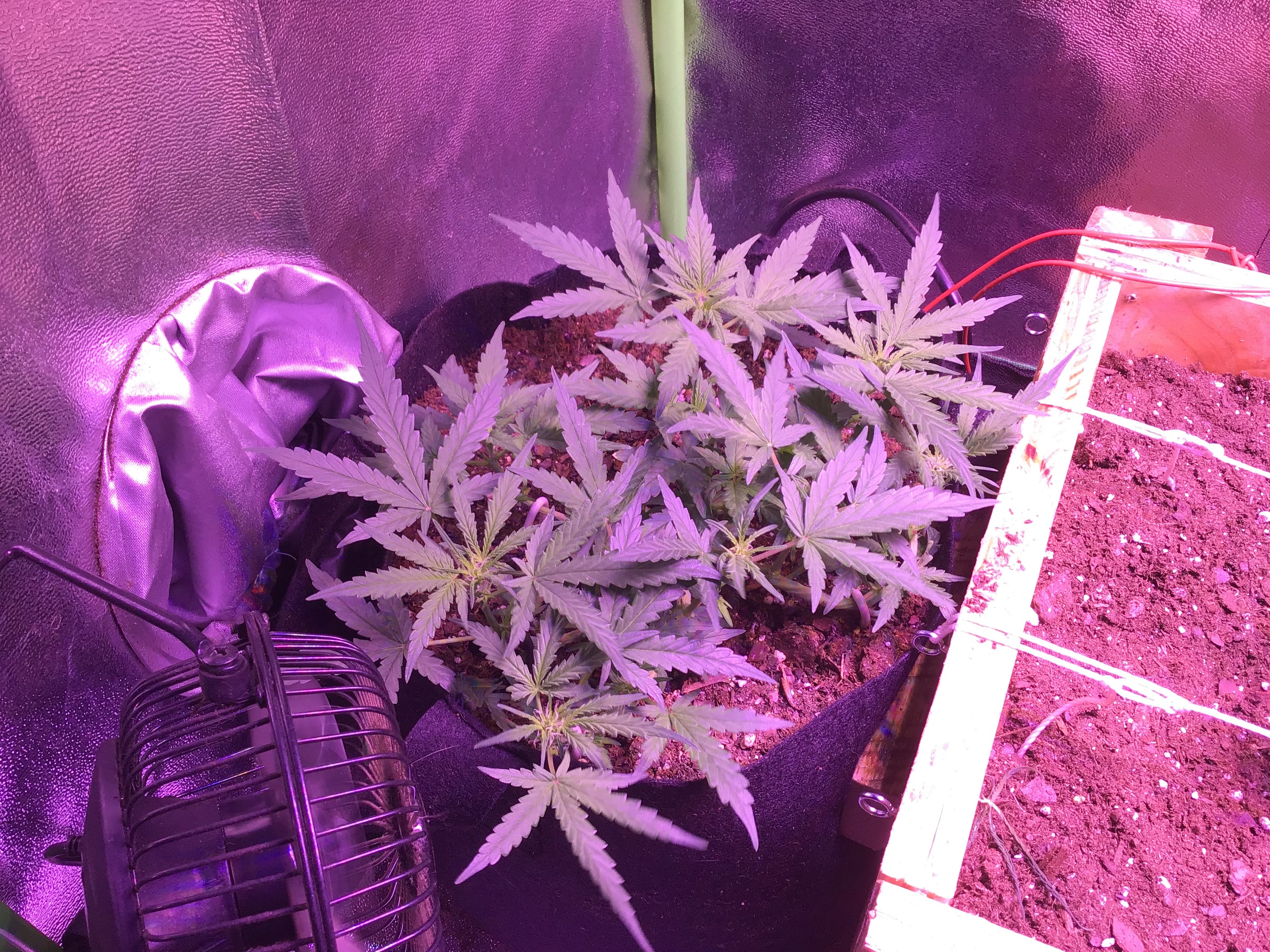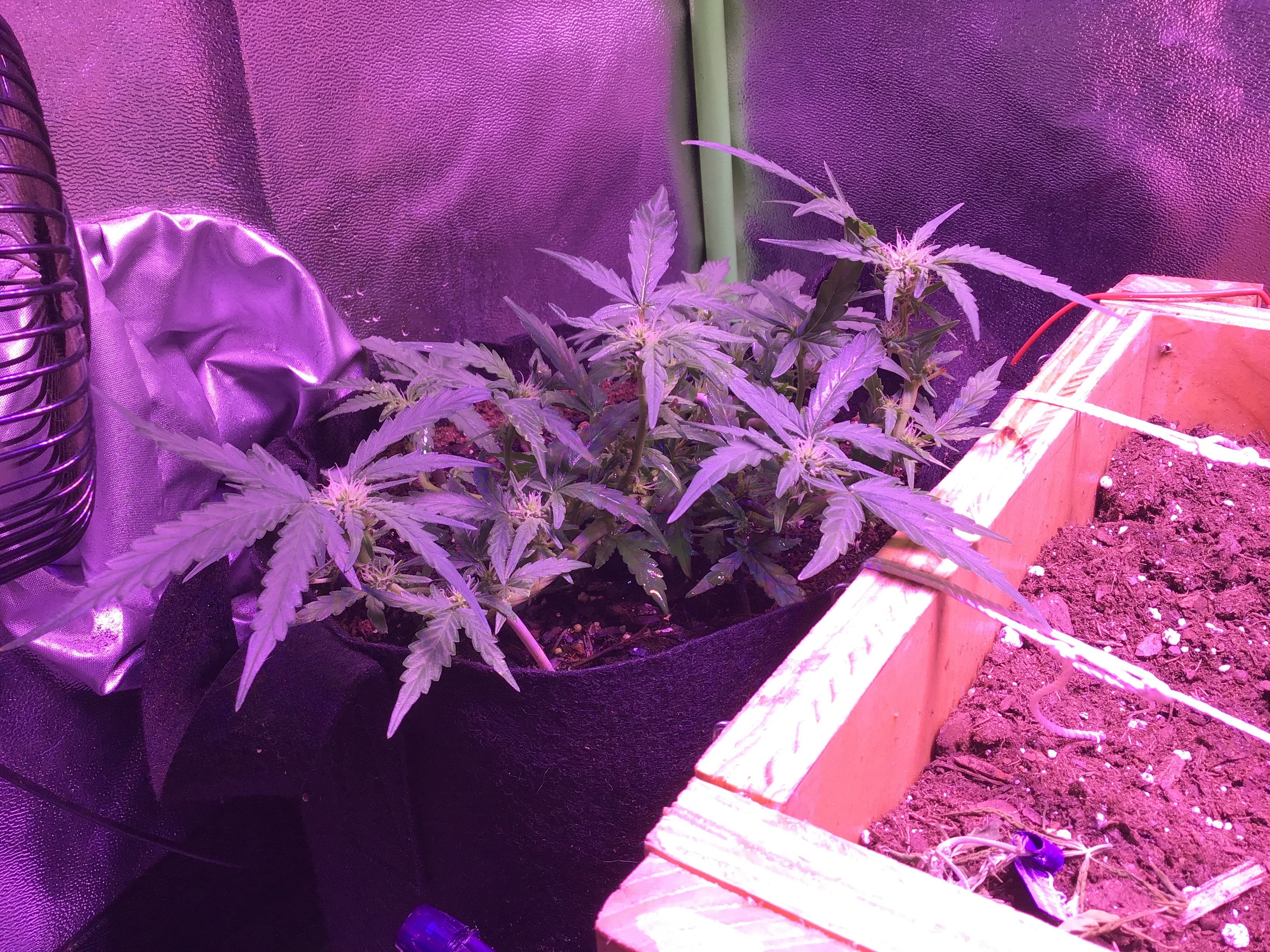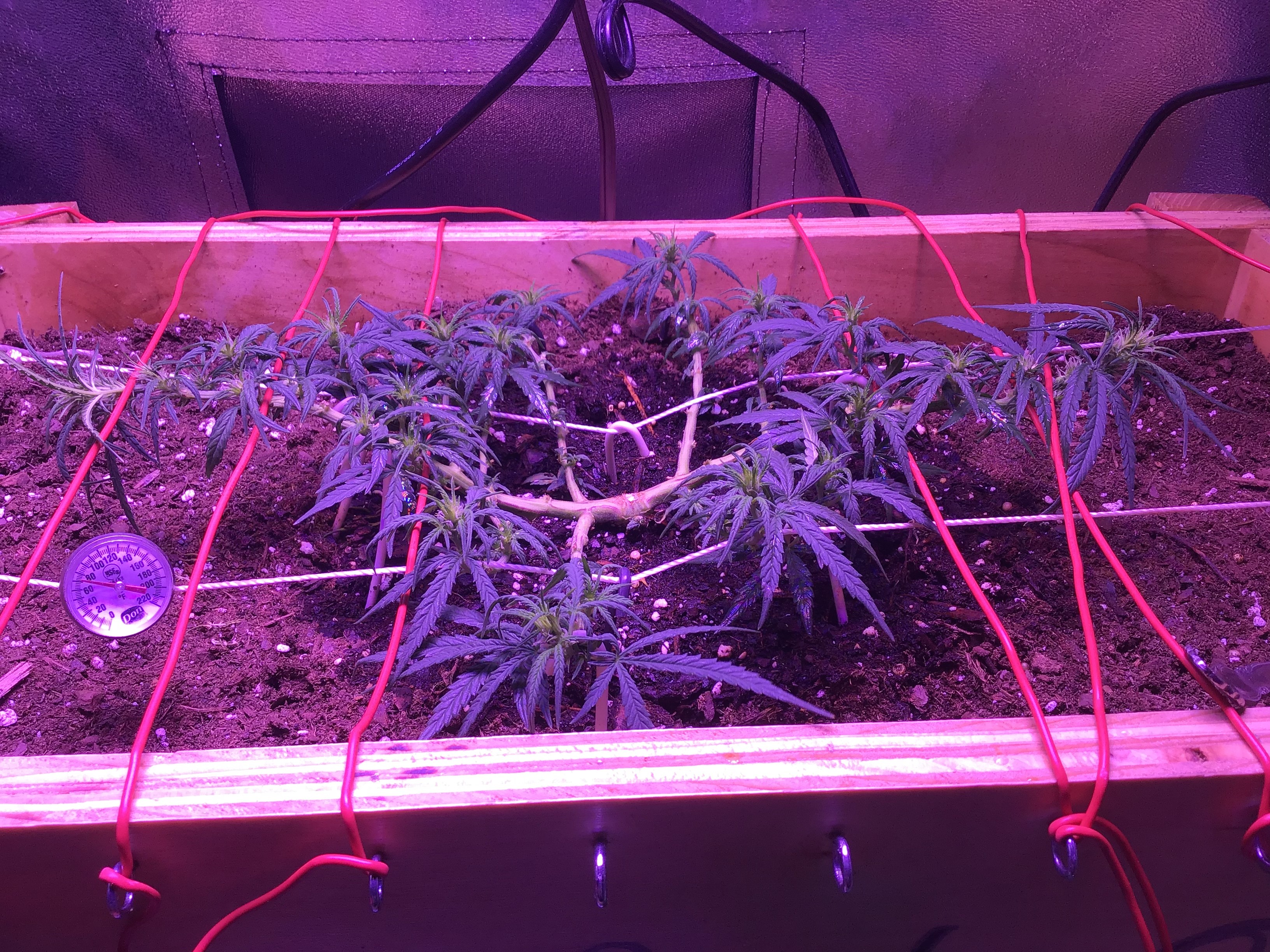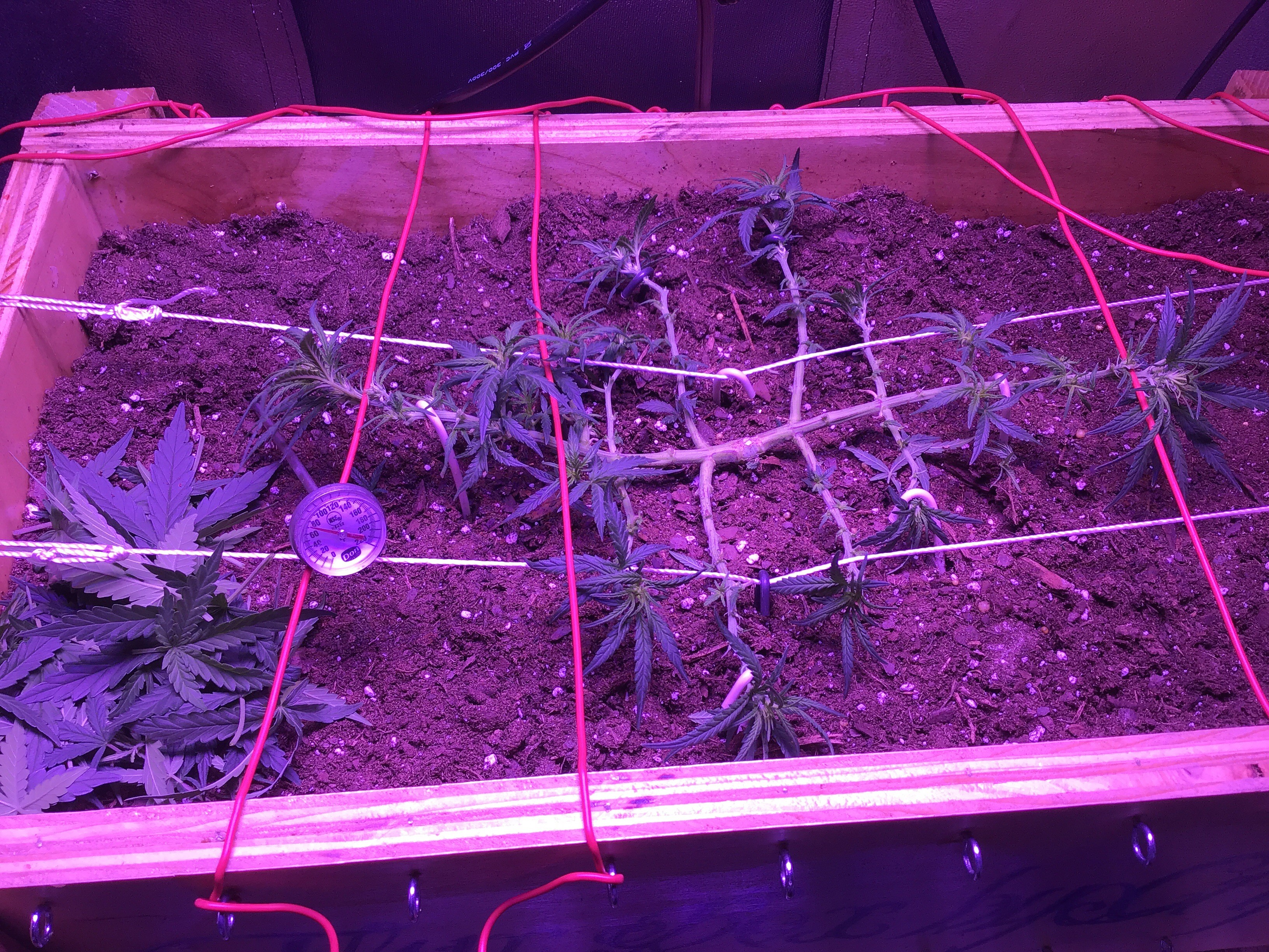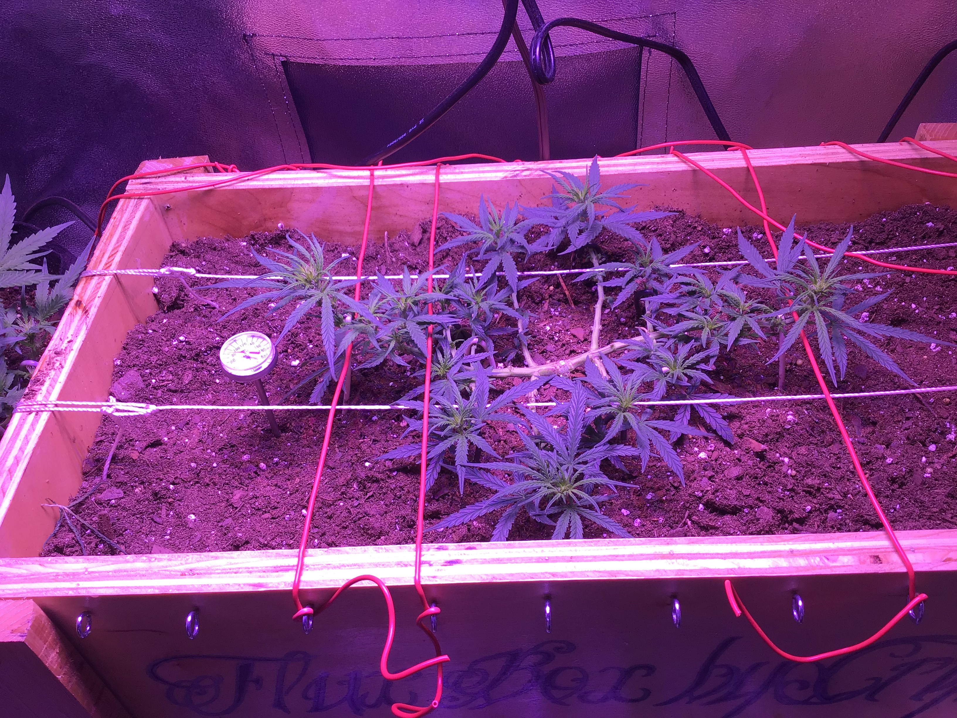 PaganRicholdjarhead100 Yeah, so it’s Friday and I’m doing a update. I never know how I’ll be feeling from day to day tho. It looks like I’ll do ok with these new training methods. SR looks like she’ll have 22 colas on her, that’s 20 on branches and the 2 mains. JR is sitting at 18 colas doing the spiral training. You can see how JR is showing trichomes now. They are both 1-1/2 months old. I switched up the lighting to 24/7 the other day. Starting yesterday they both went from 8oz of feeding once a day to twice a day now. I know some only folier feed once a week, but I do every other day. It’s pretty much since I have to trim that often and train. The box I designed for my fluxing seems to be working out pretty good. I love the ease of just adjusting my wires through their eyelets when needed. Hindsight, I should have used more soil to make the training a bit easier. I’ll do that on my next flux. I did up my terpinator from 5ccs/-1/2gal to 6 and my calmag from 3.75 to 4.25. I guess we’ll all see how this goes. I know Rich and OJH have been showing interest in it. Grow height shouldn’t be much more than 2’ and that’ll be all cola.