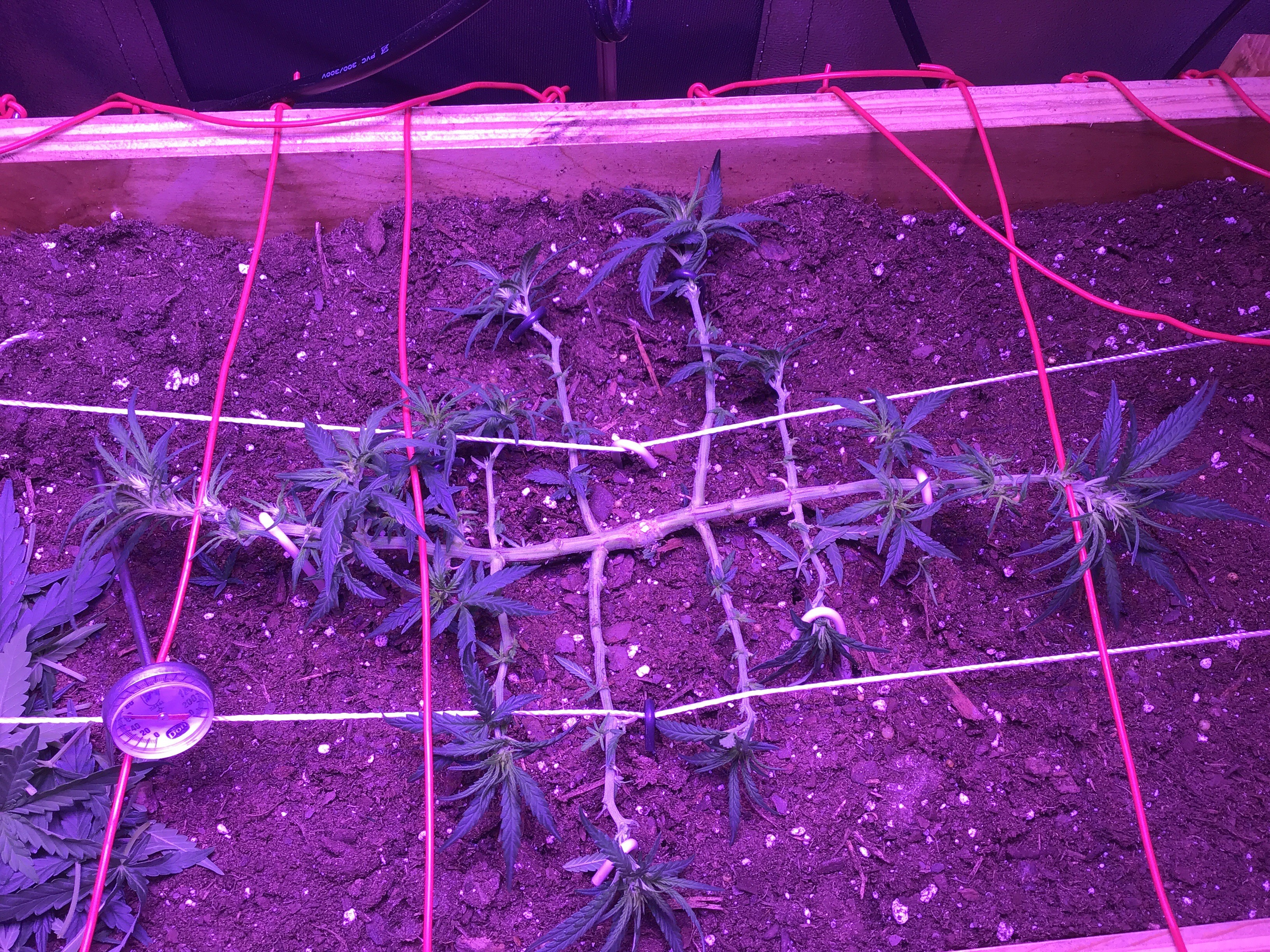Training going well. No topping just lst some of these grows on here are very interesting I'm curious as to the yields and timeframes with advanced training that a few are doing. These 2 autos have pistols already so I wasn't willing to slow them down any. These are 25 days from hitting towel.