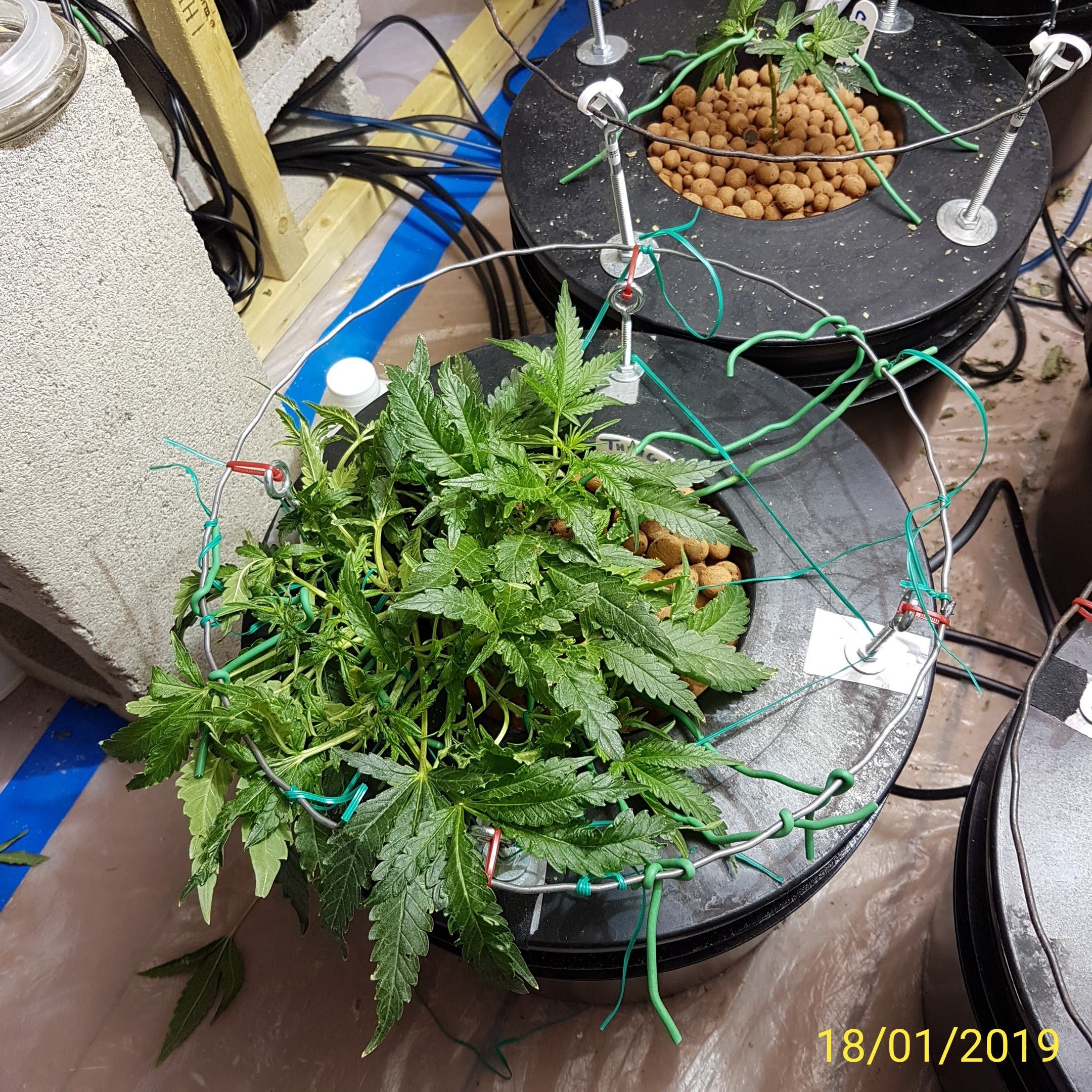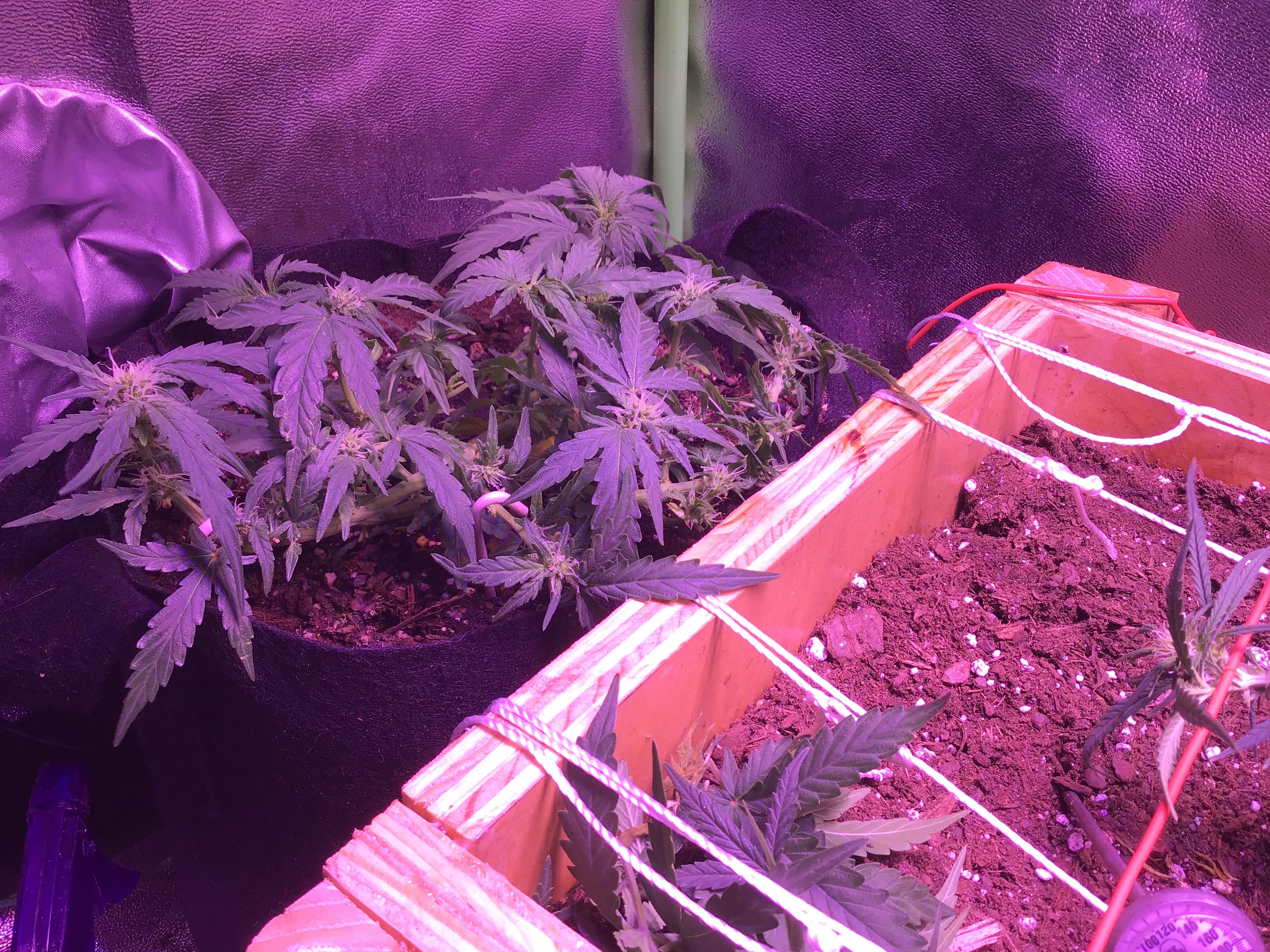 both are doing great - I was able to maintain a fairly flat profile with both plants. now, its time for those trained stems to turn up towards the light and become monster colas