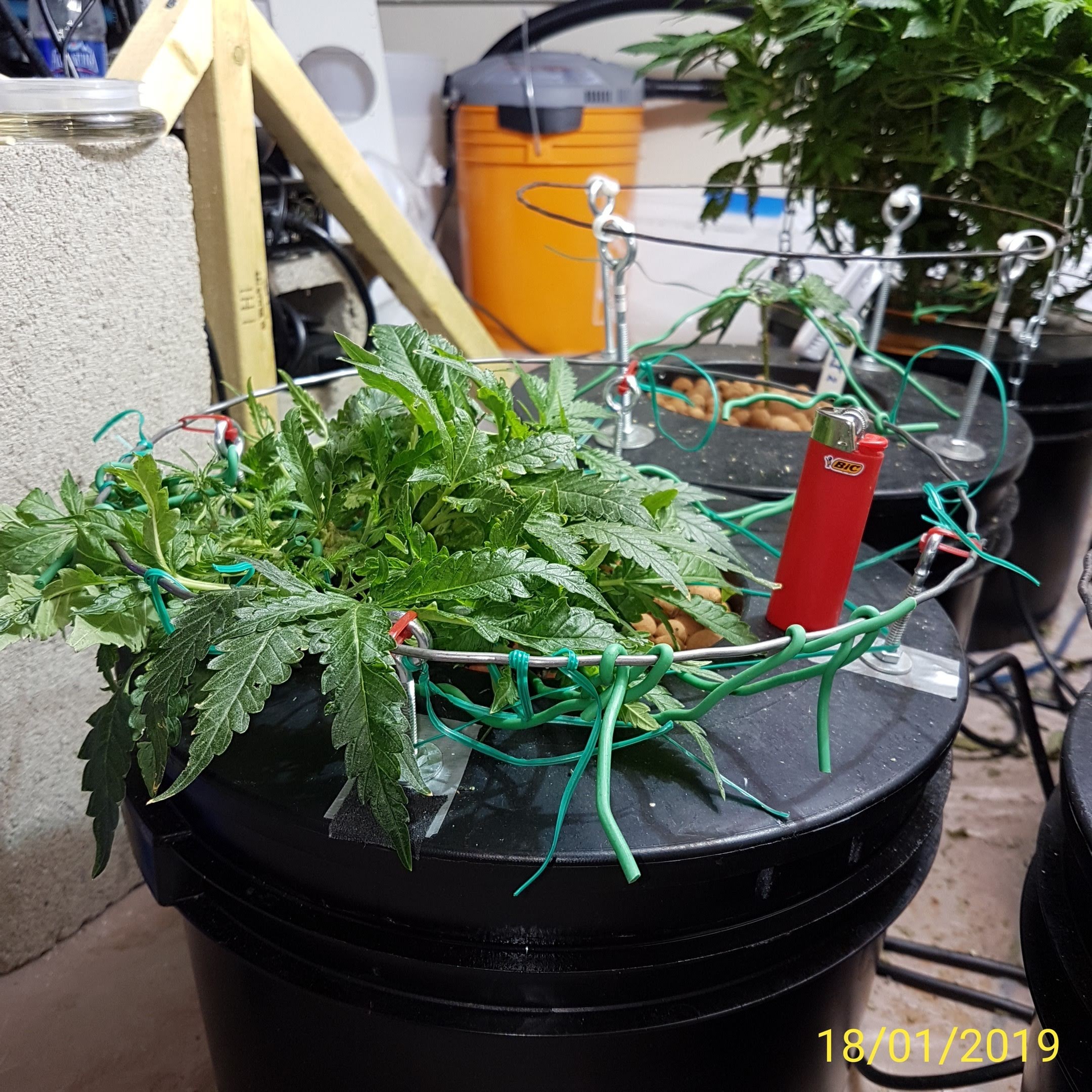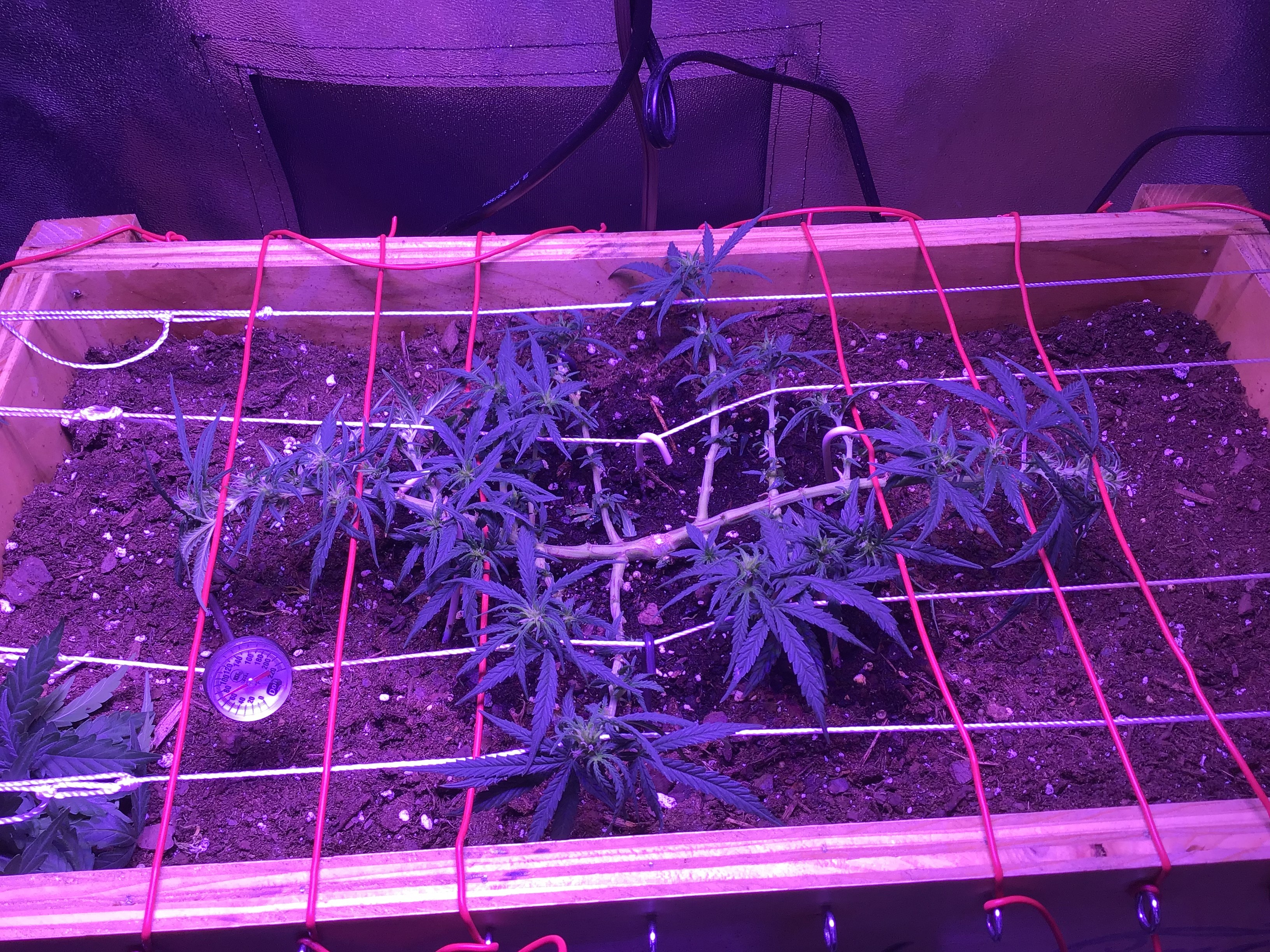 Today is day 40 for the Bubba Kush. I have just about finished the quadlining technique with her. I have the branches to the edge of the pot, so I ran out of coco to stake them down in lol.