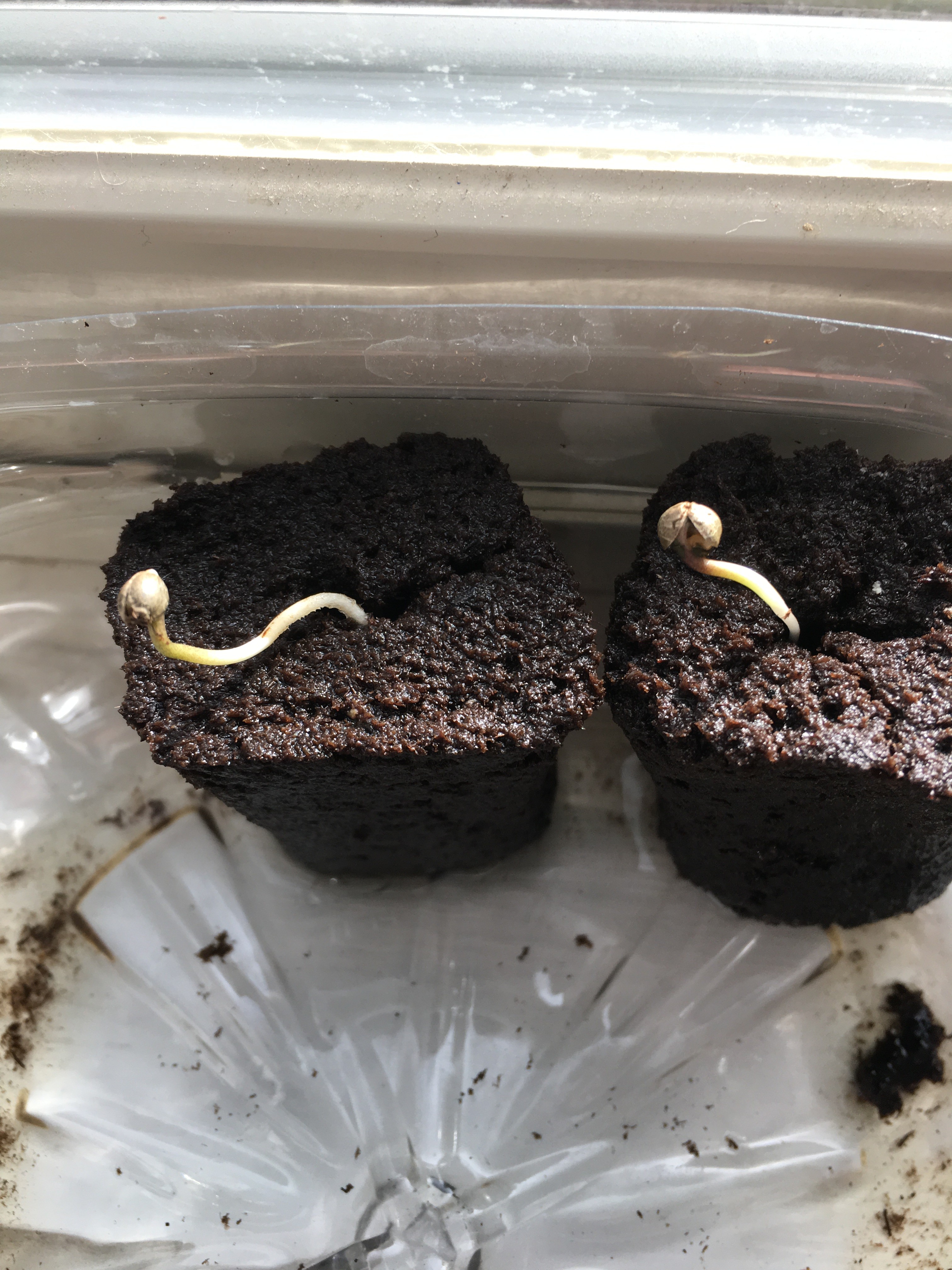 Lots of great photos on this thread. Kind of late to join the party, but this is the result of the GG4 Autos I received Wednesday. So far I have two helmet heads, and a breech birth. That's the one I am kind of worried about. Born with cotyledons headed toward the center of the earth, and no tap root apparent as of yet I righted it. Pulled the rapid rooter apart, and reorienting maybe the added solar energy can jump start this sick baby. Marijuana midwifery is my middle name. Well sorta. Click image for larger version