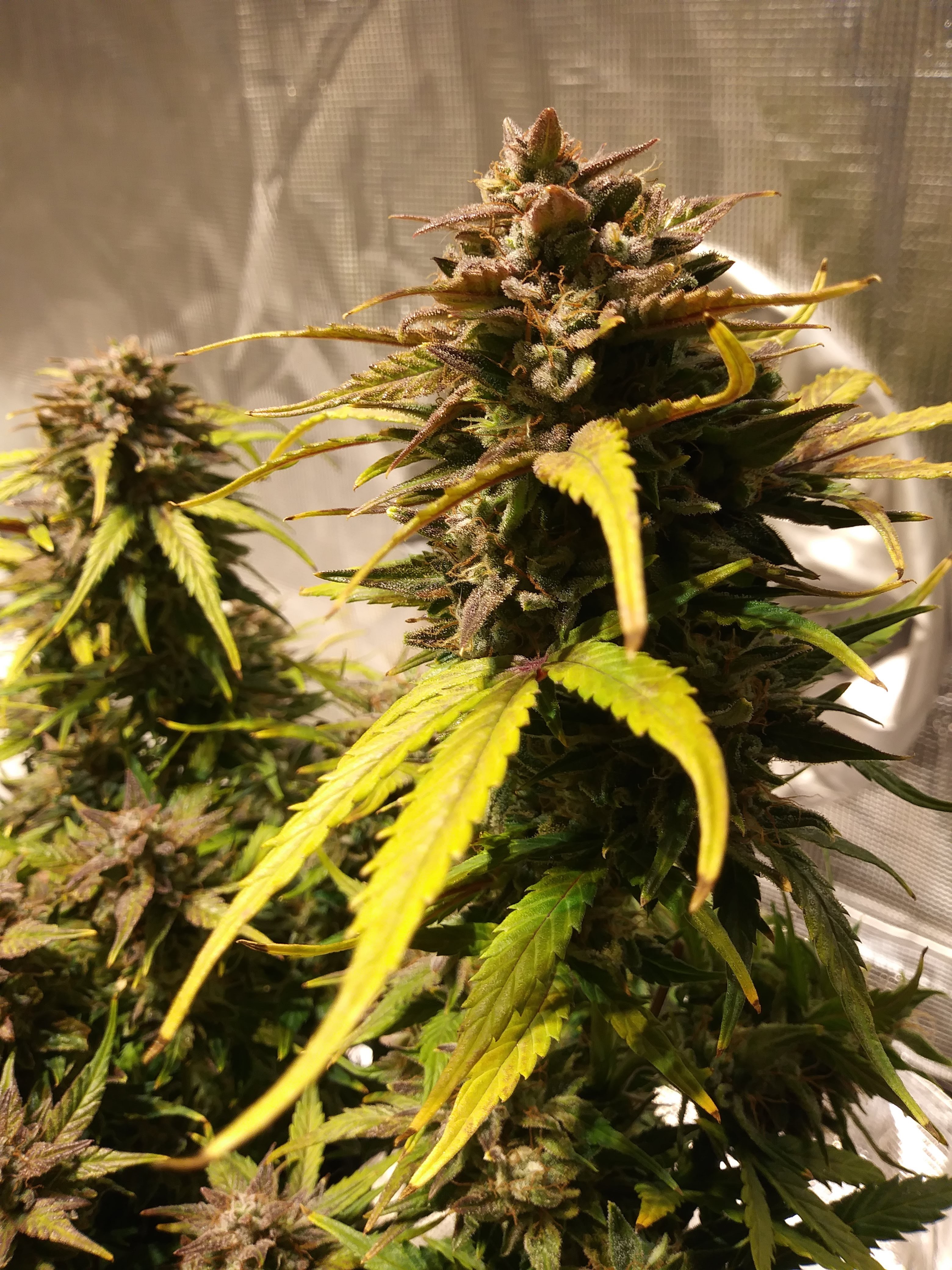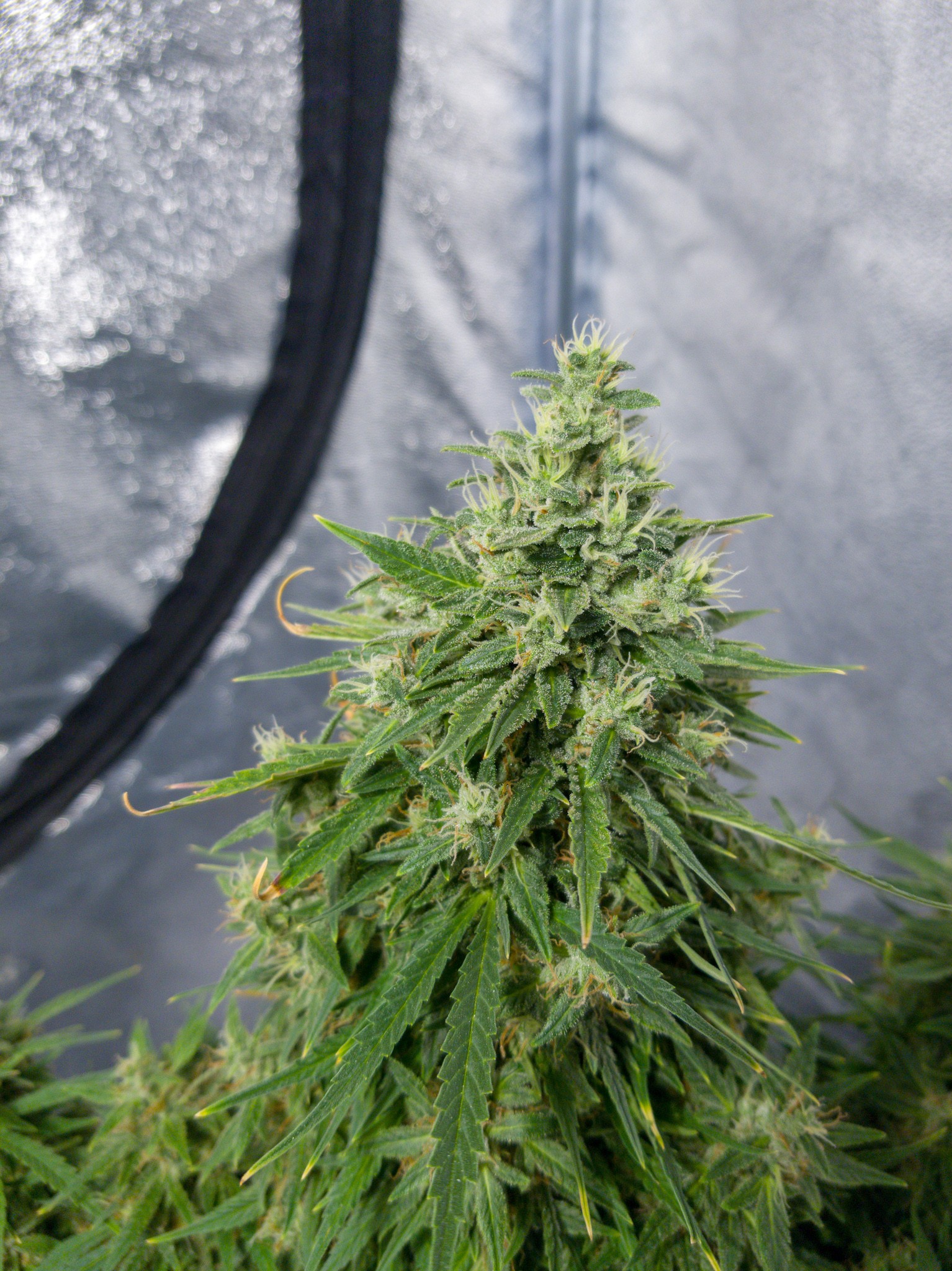 just flat out taken over the tent, and is rising hell with Foxtail from being to close to the light I have also started to find nanners pushing out on the tops. So I have started to bend the top colas to the edge of the tent. I have been battling extreme temperatures swings that have been shifting too much not making thing easy but I'm thinking I may have them under control now.