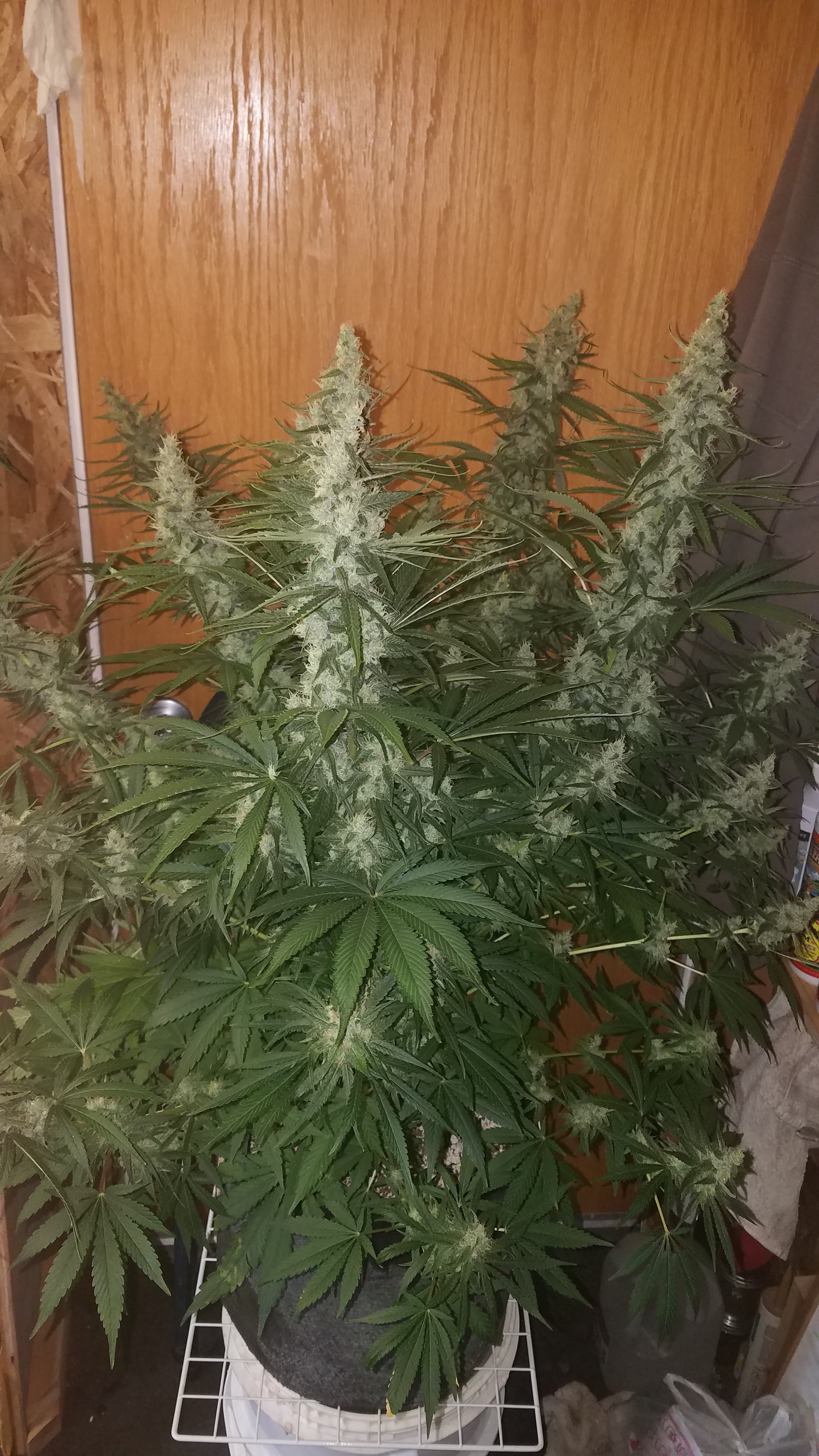 wow after seeing everyone's grows i'm kinda disappointed in mine its hard to remember im two or 3 weeks behind I didn't plant mine until 12/15 but here gos I have 5 in bloom and 5 not in bloom mutant Louie is the 6th picture it is smaller than most height wise but well see how she turns out ,the one in the back right corner looks about half dead ,I think im going to pull her out and see whats what ,I'm also going to water with less so I can water more often , I have been giving them open sesame,
