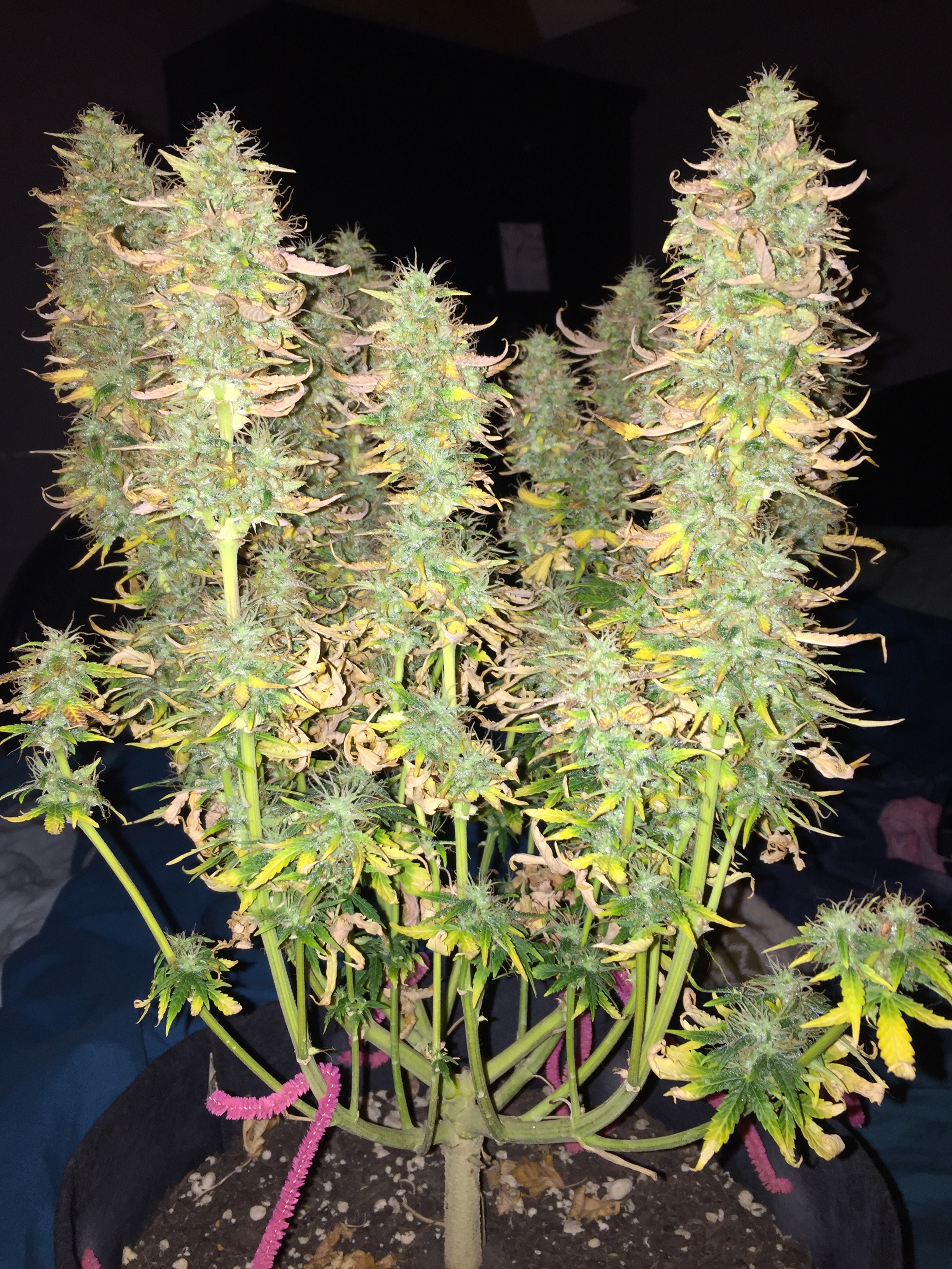 Ill post tonight my small girl is doing great super dense buds I'm thinking I've killed my nice plant to much of something last water she turned overnite so gave her 3 gallons of fresh water this morn the last runoff test was good the first was traumatizing. Ill hope for the best over the next few days but the buds look like they fell apart from nice and dense to this ugly fluffy shit. First auto run do no biggie but I'm thinking she was on her finish run and I gave her a modest dose of my mix lol