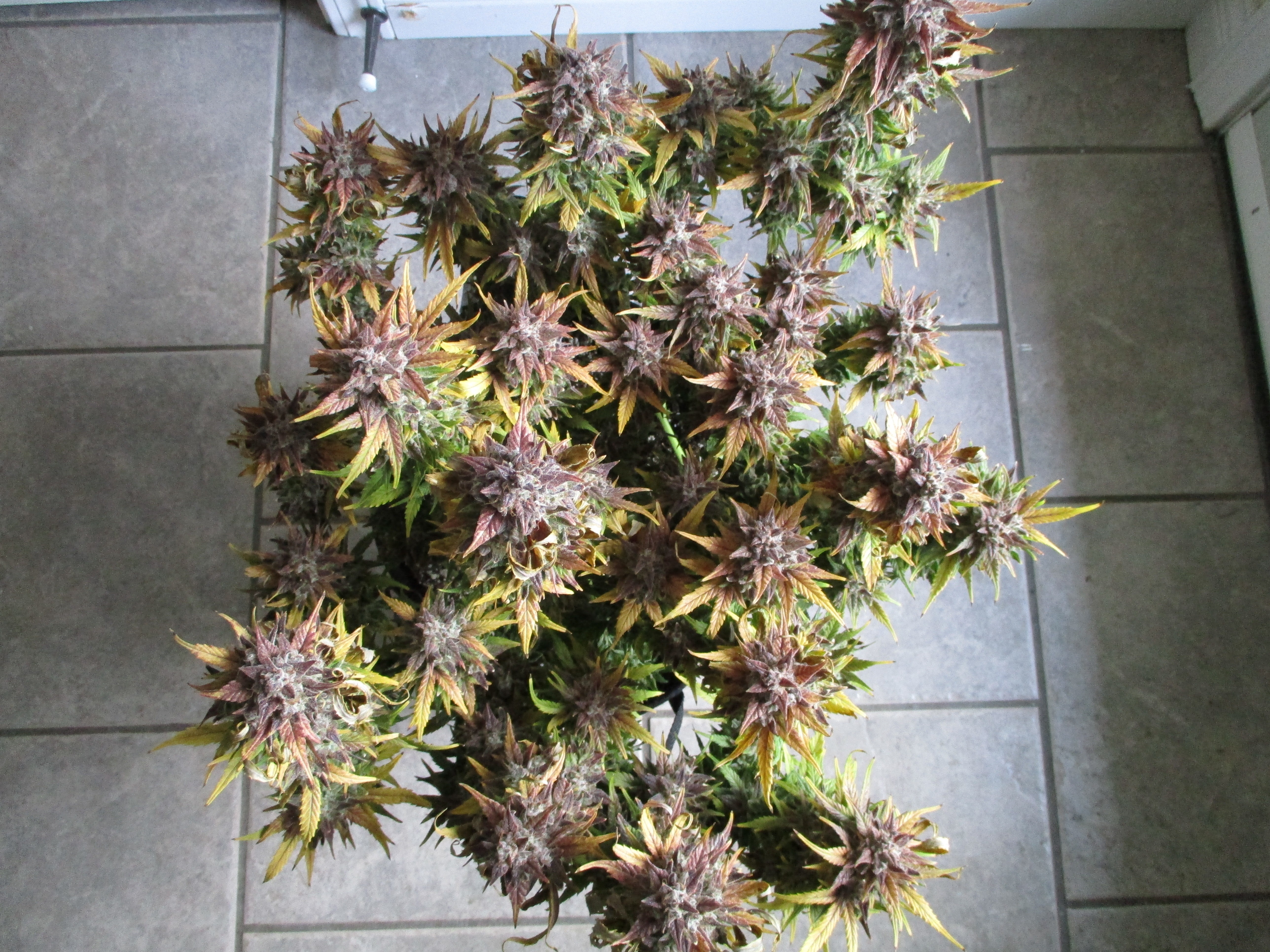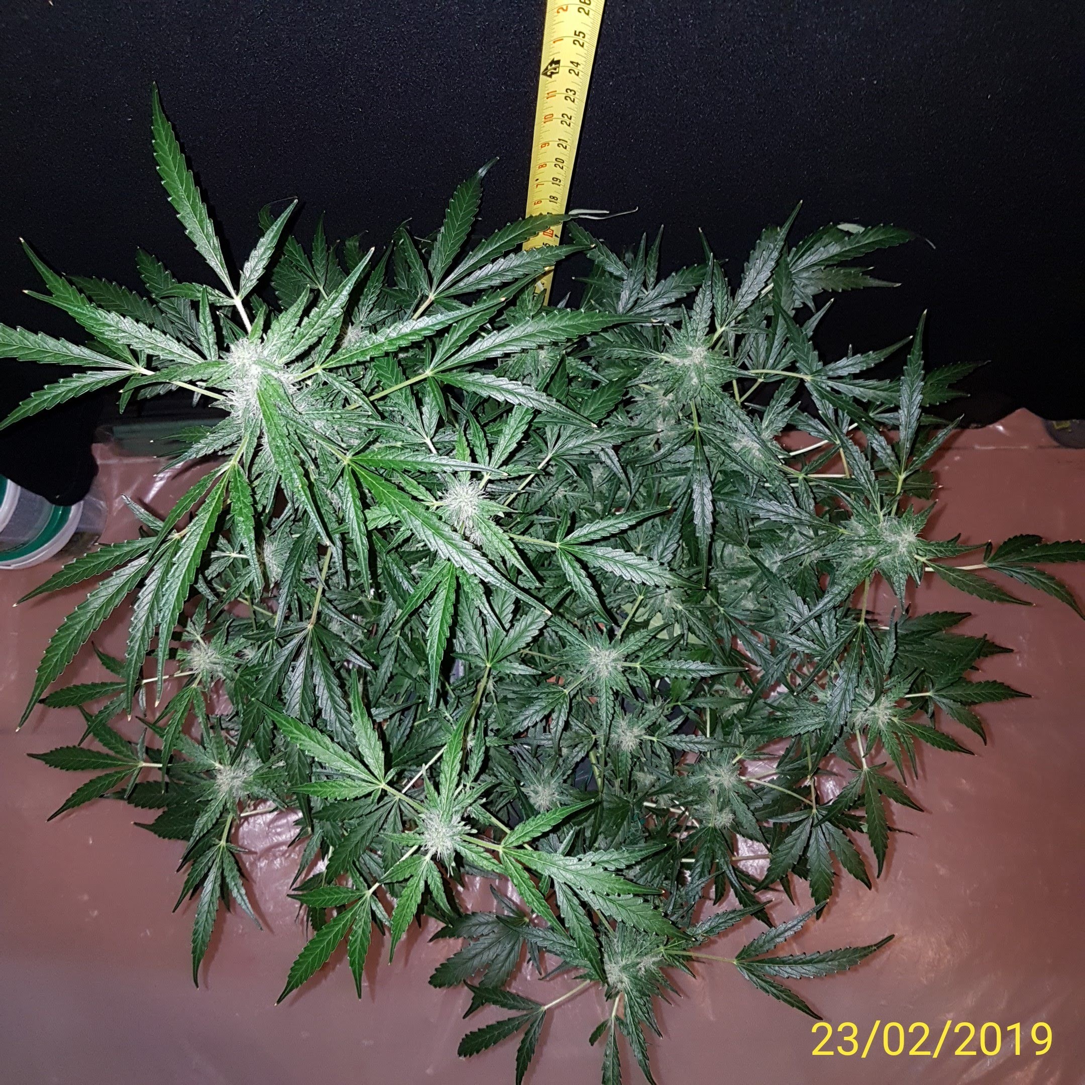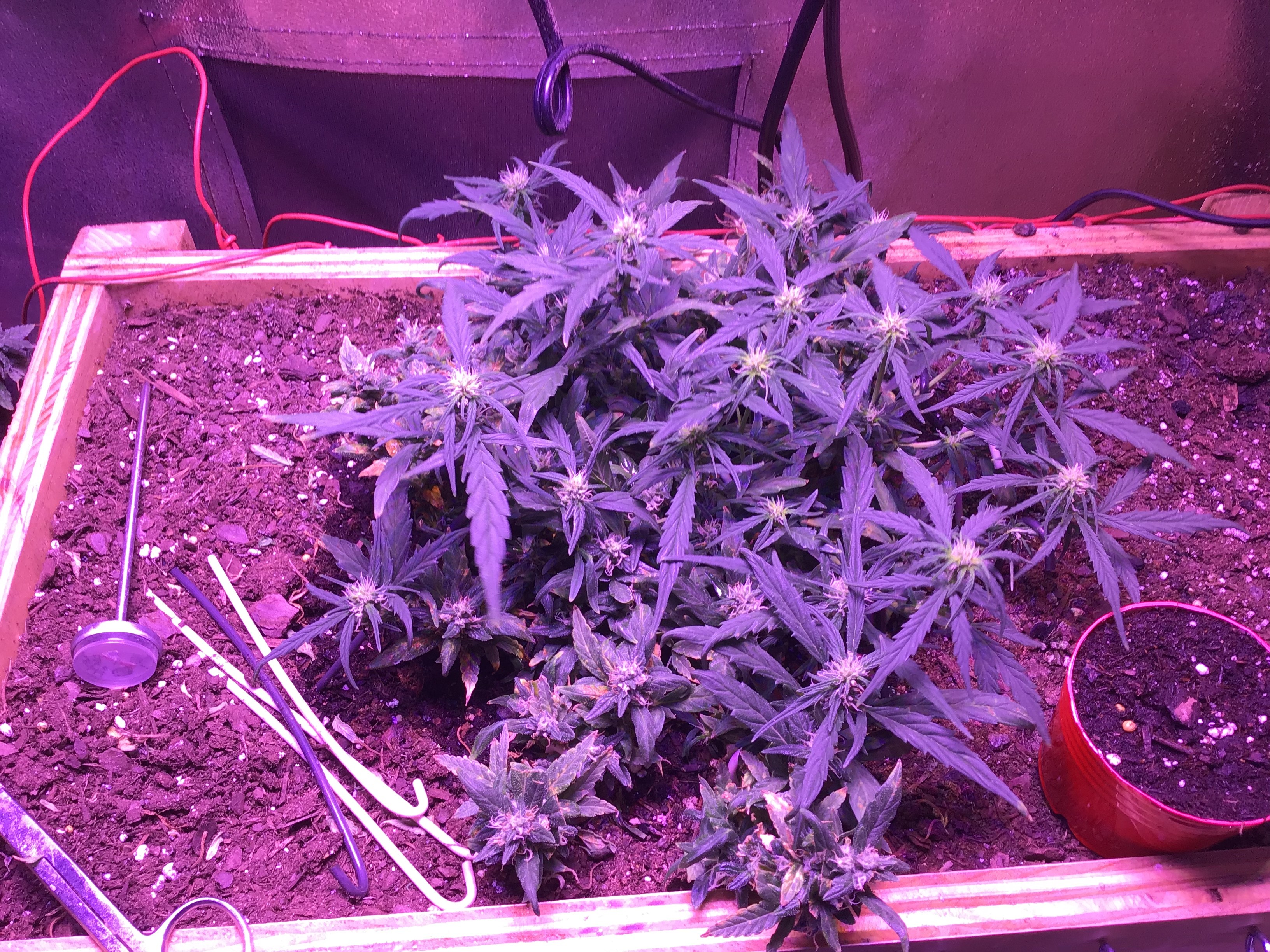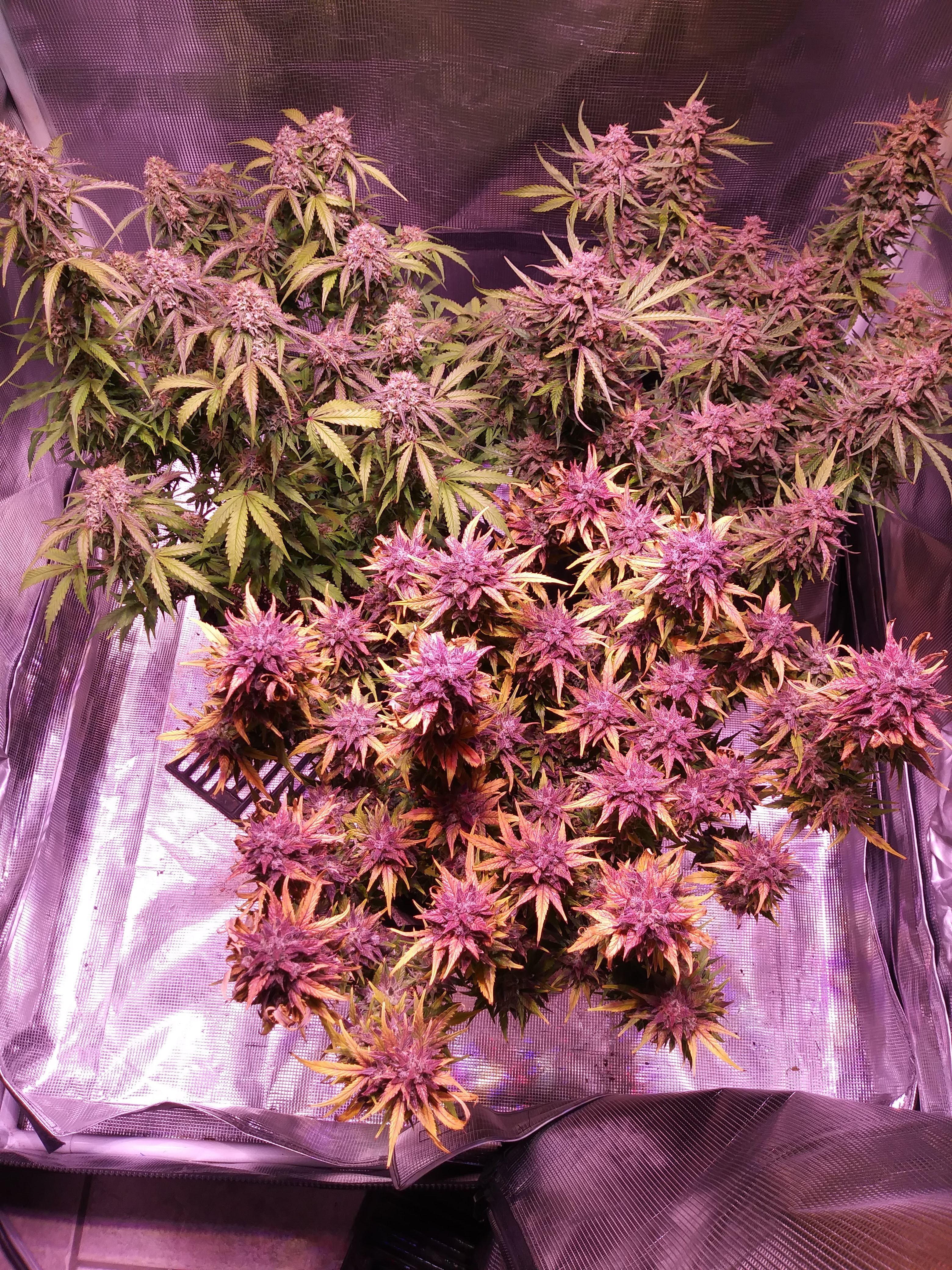 Juicyj89 are you sure it's only 59g wet? It looks much bigger than that to me. I would have guessed 59g dry. But I am going blind and senile. Very nice grow and keep it up looking very good. Also the g the growers advertise are dry weight. On the grams per meter square they count running a sea of green on those weights. So in a 4x4tent probably have 10 to 12 plants maybe topped but not trained per se. Yes defoliate etc. Most cant run a sea of green due to laws on number of plants.