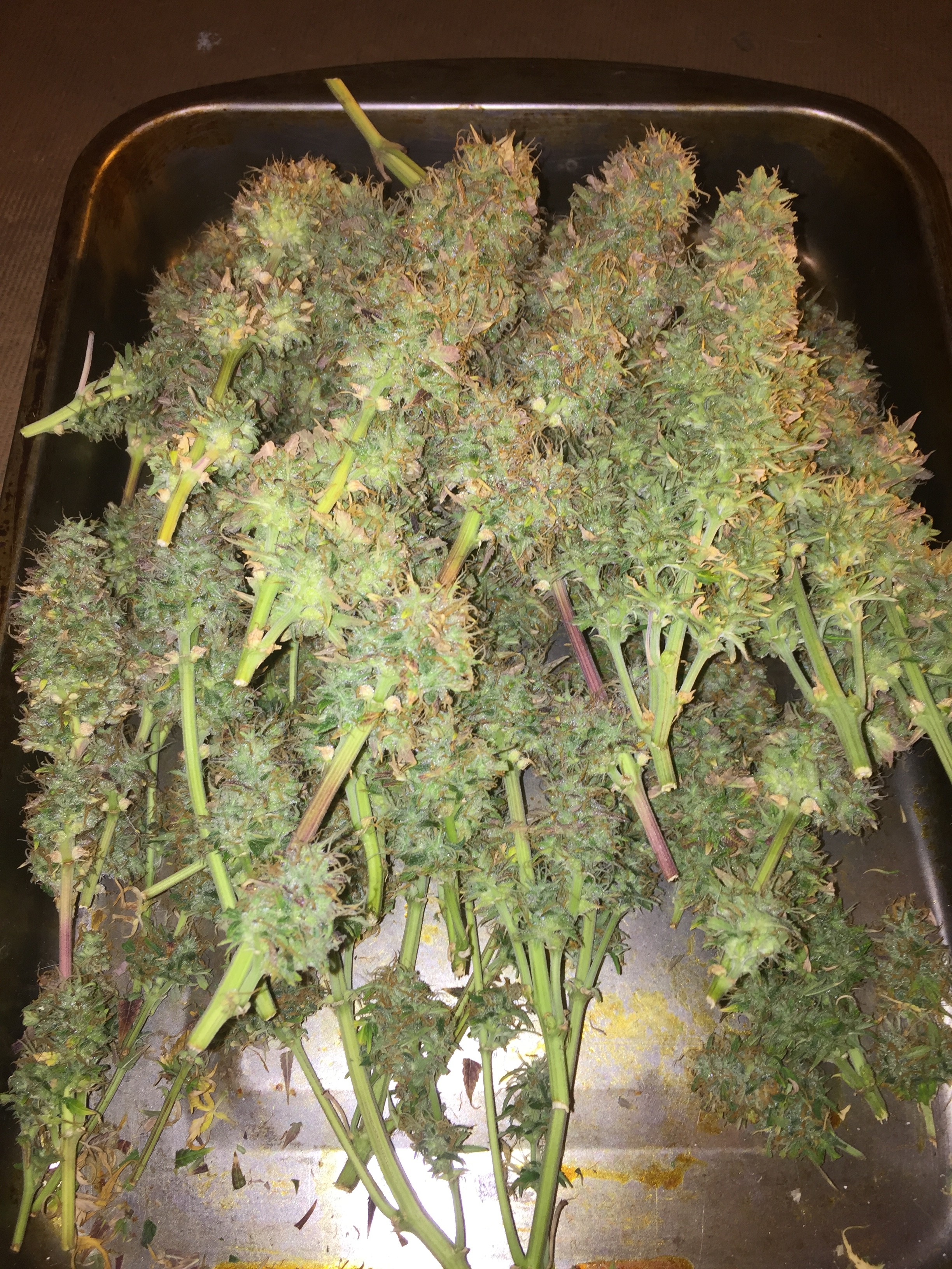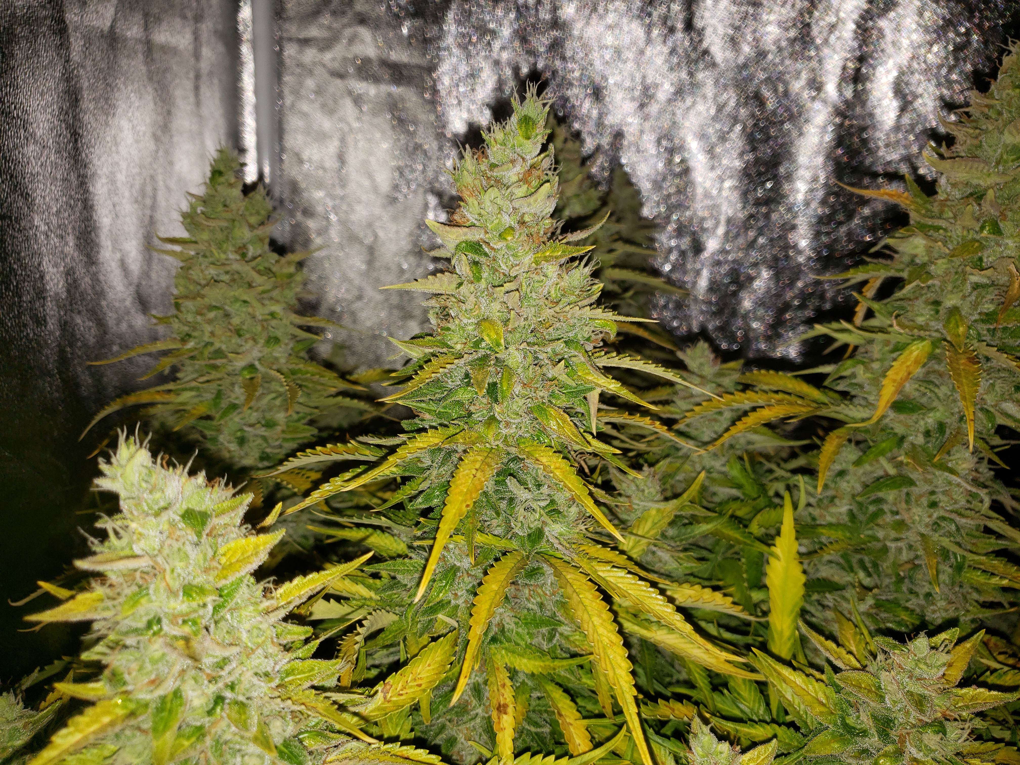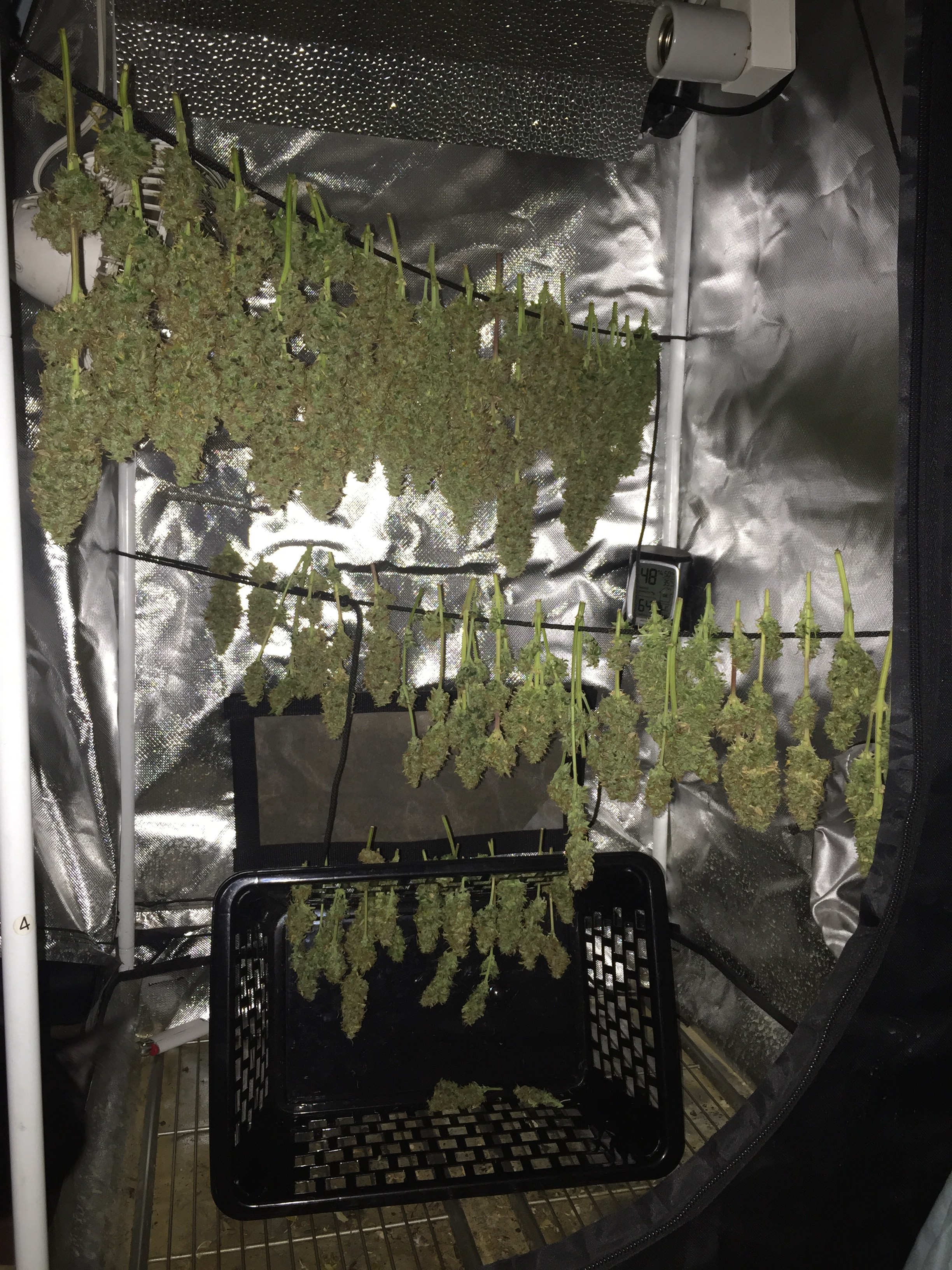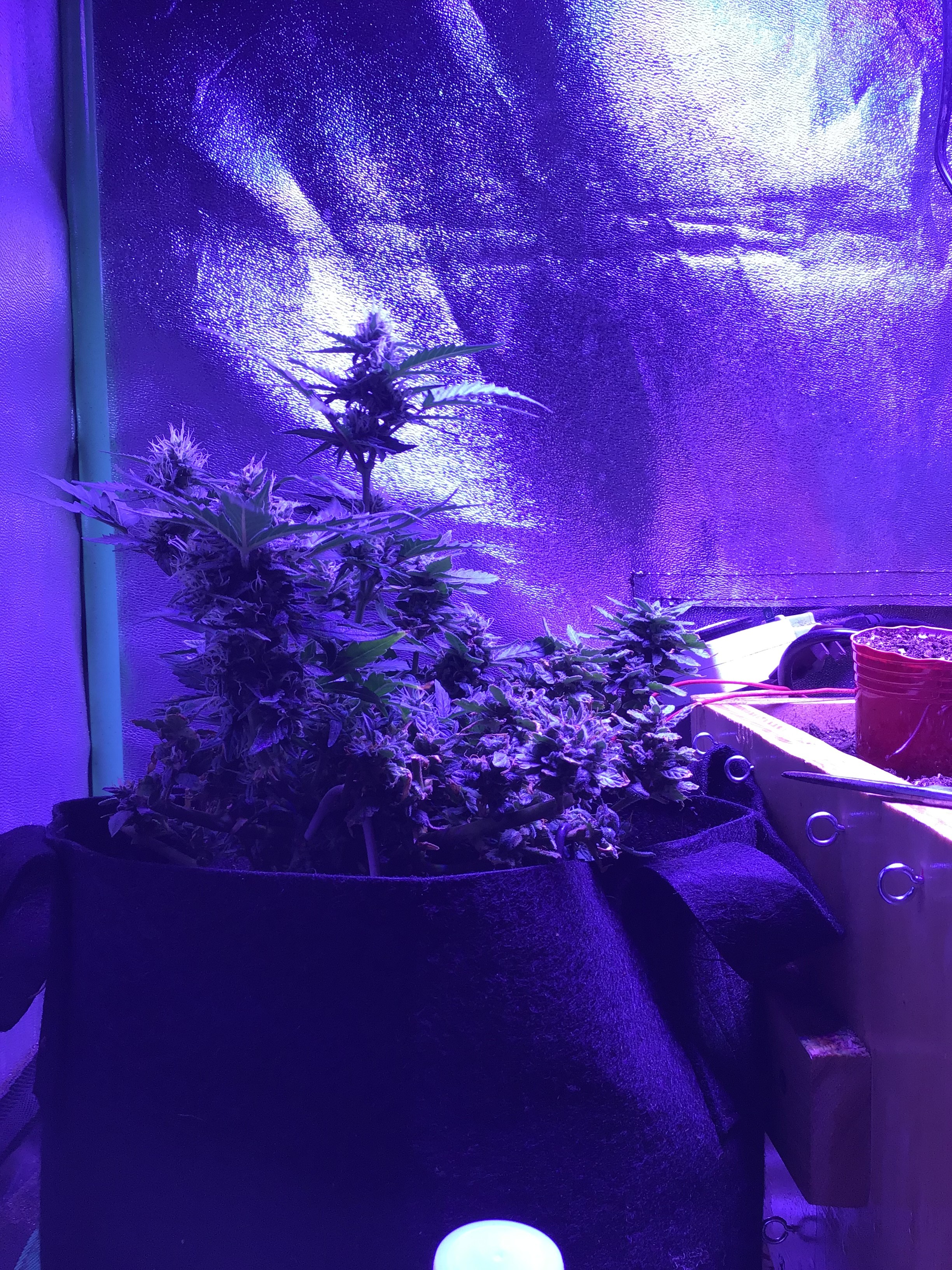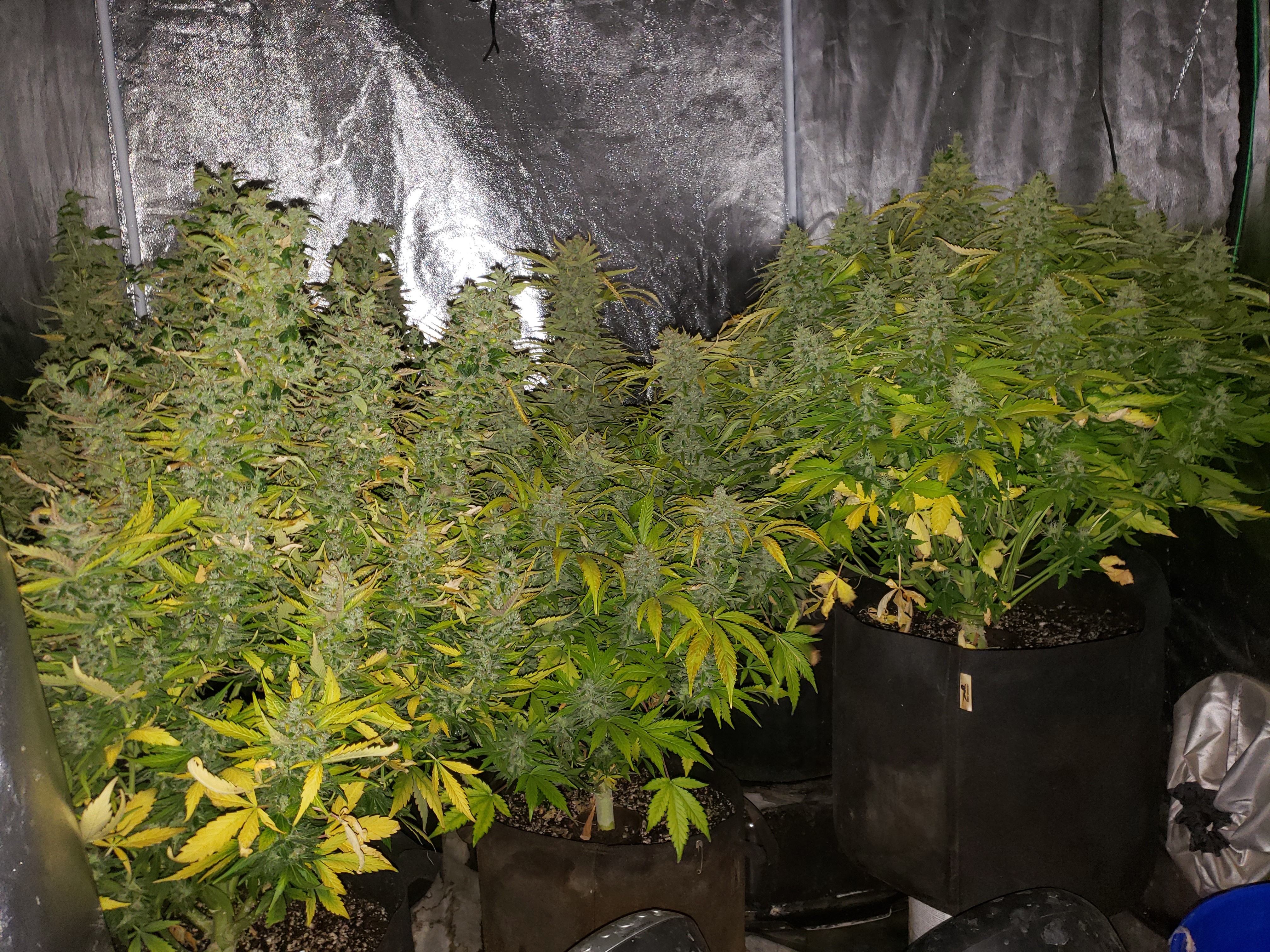 Ok you asked be prepared for pictures. Lol The overheating killed one plant for an early harvest, the foxtailed on was opposite of it. The other 4 are fine. But as you can see from the pics thing one isnt even visible under all the others. I choose 2 and grew 6. 3 ak47 autos and 3 bluetooth. One ak47 got crispy and had to come down(very very high when you smoke but it tastes like ass. My thing 2 lost as the worst tasting plant in the contest. It may fuck you up more than any other plant here but whats the point if the smoke sucks. Dry it was 59 grams but if you stopped by you could have it all. Lmao But not kidding. Ok here she goes.