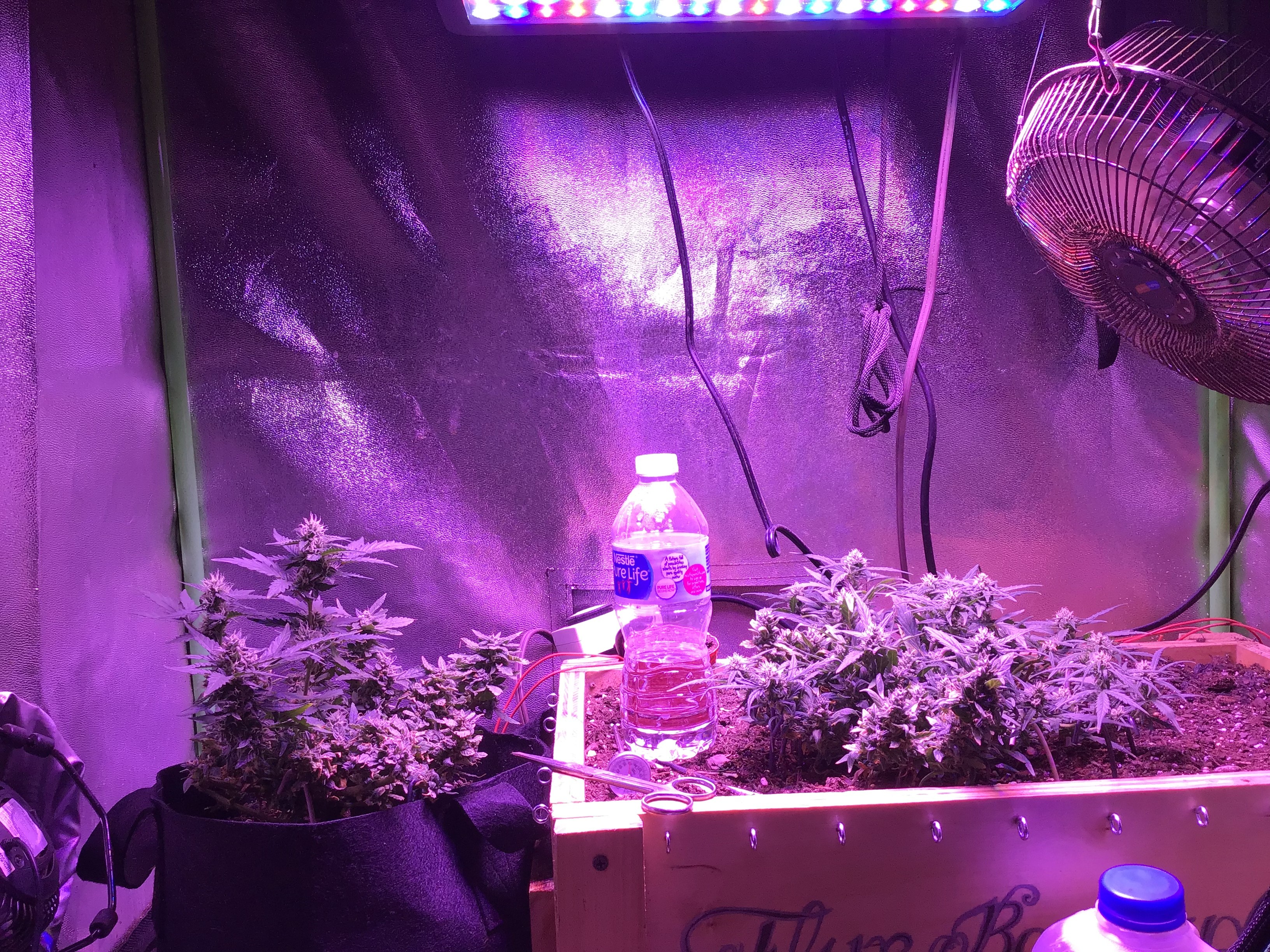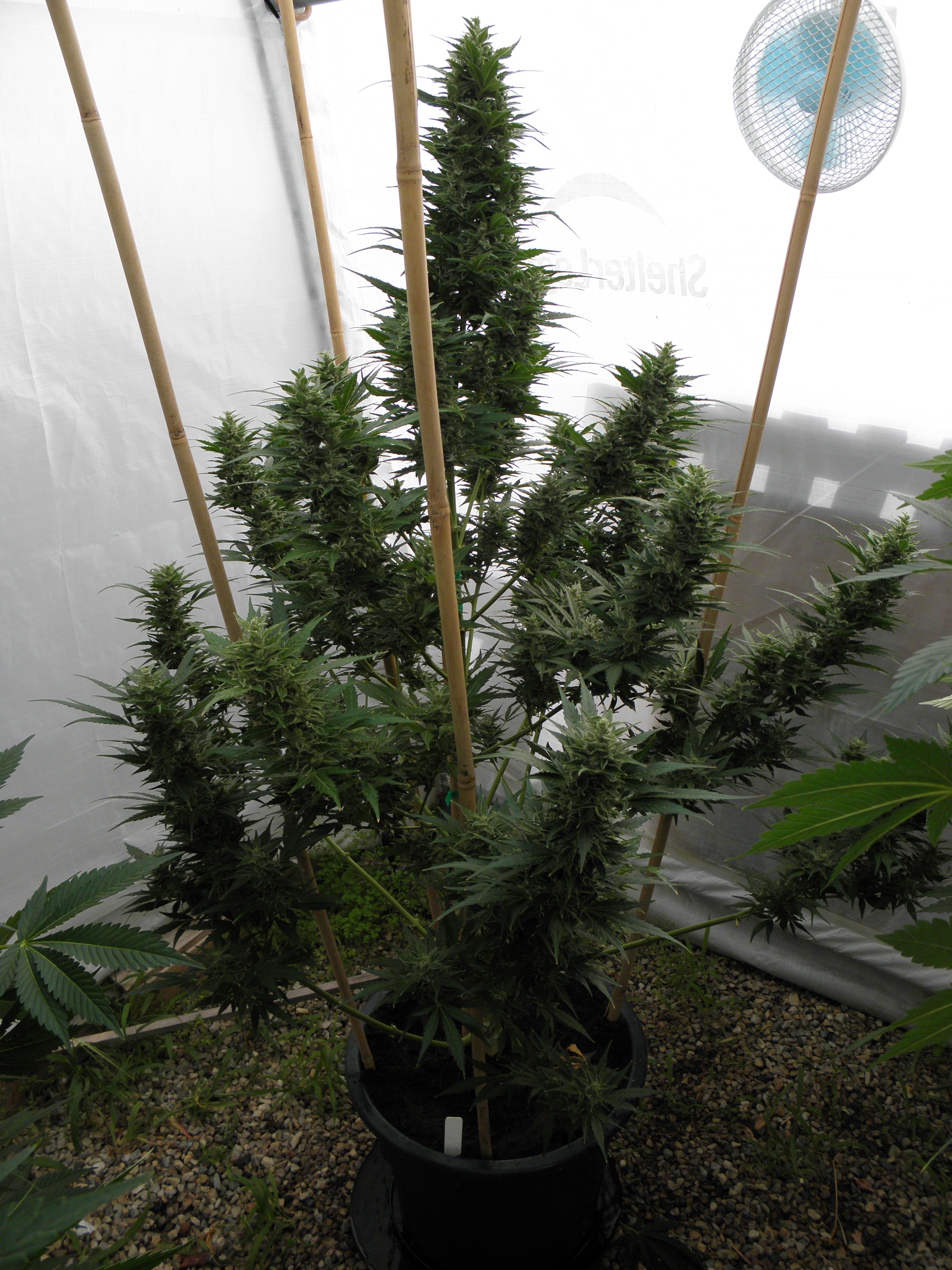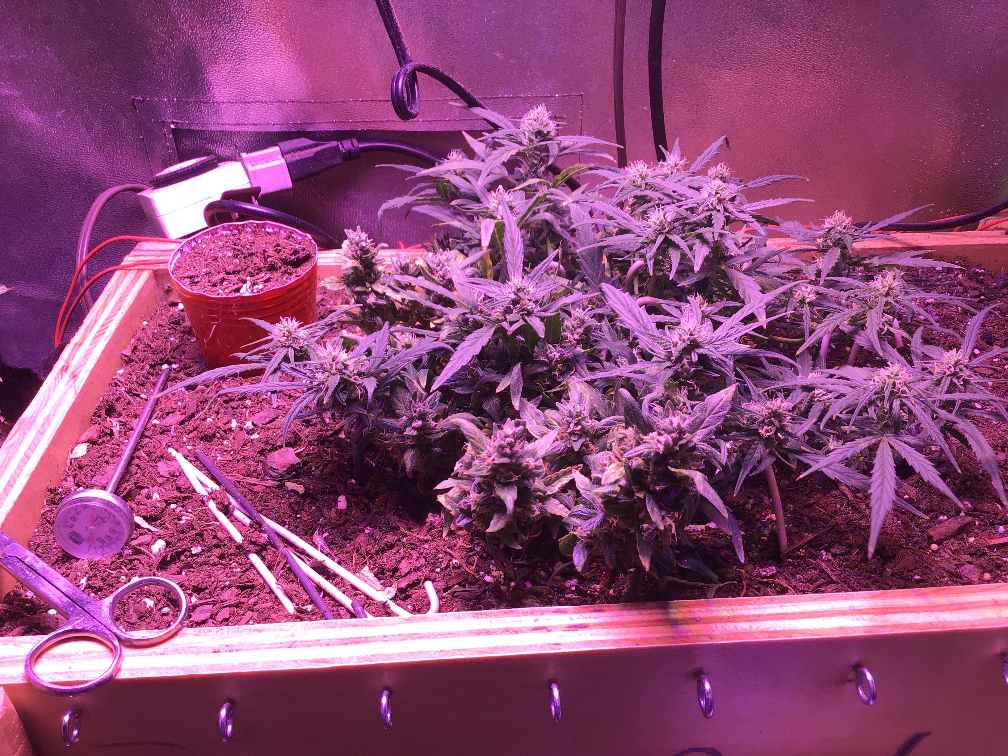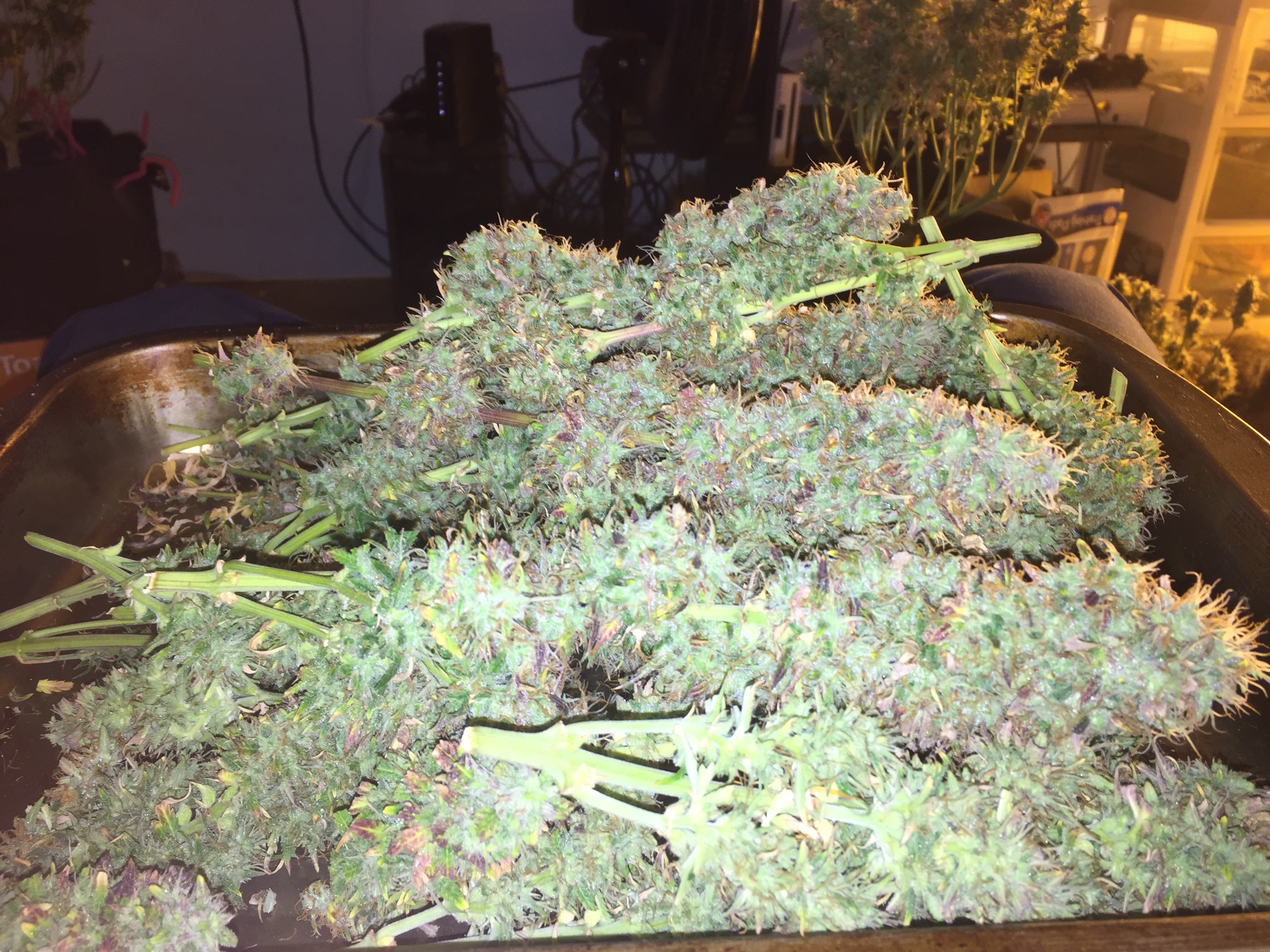 Ok you asked be prepared for pictures. Lol The overheating killed one plant for an early harvest, the foxtailed on was opposite of it. The other 4 are fine. But as you can see from the pics thing one isnt even visible under all the others. I choose 2 and grew 6. 3 ak47 autos and 3 bluetooth. One ak47 got crispy and had to come down(very very high when you smoke but it tastes like ass. My thing 2 lost as the worst tasting plant in the contest. It may fuck you up more than any other plant here but whats the point if the smoke sucks. Dry it was 59 grams but if you stopped by you could have it all. Lmao But not kidding. Ok here she goes.