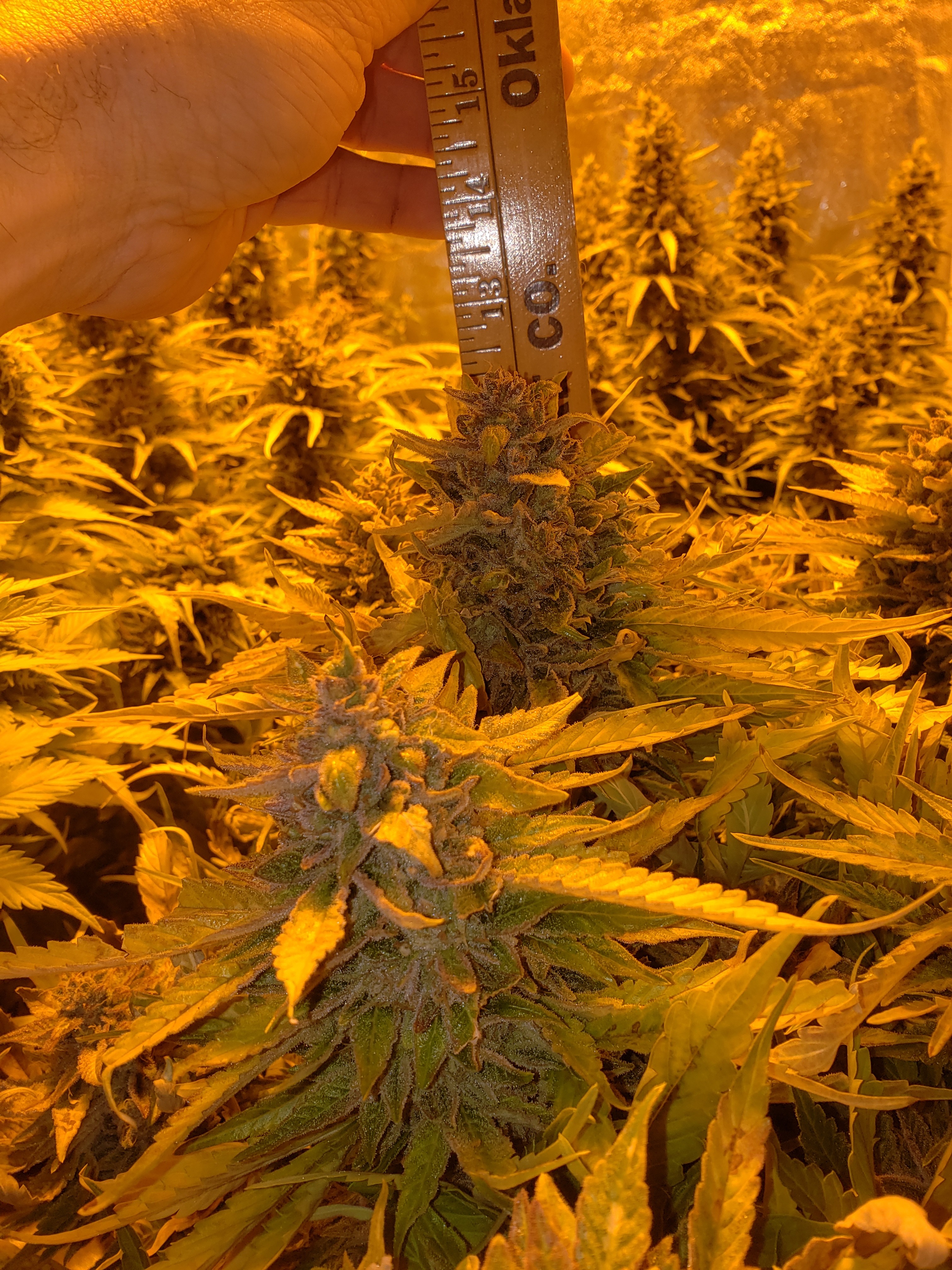 Late satarday photos. Well the first 2 pics are number one. The ruler starts at the bud not plant height. The others are all thing zeroes not entered but same tent and start date. Go figure.