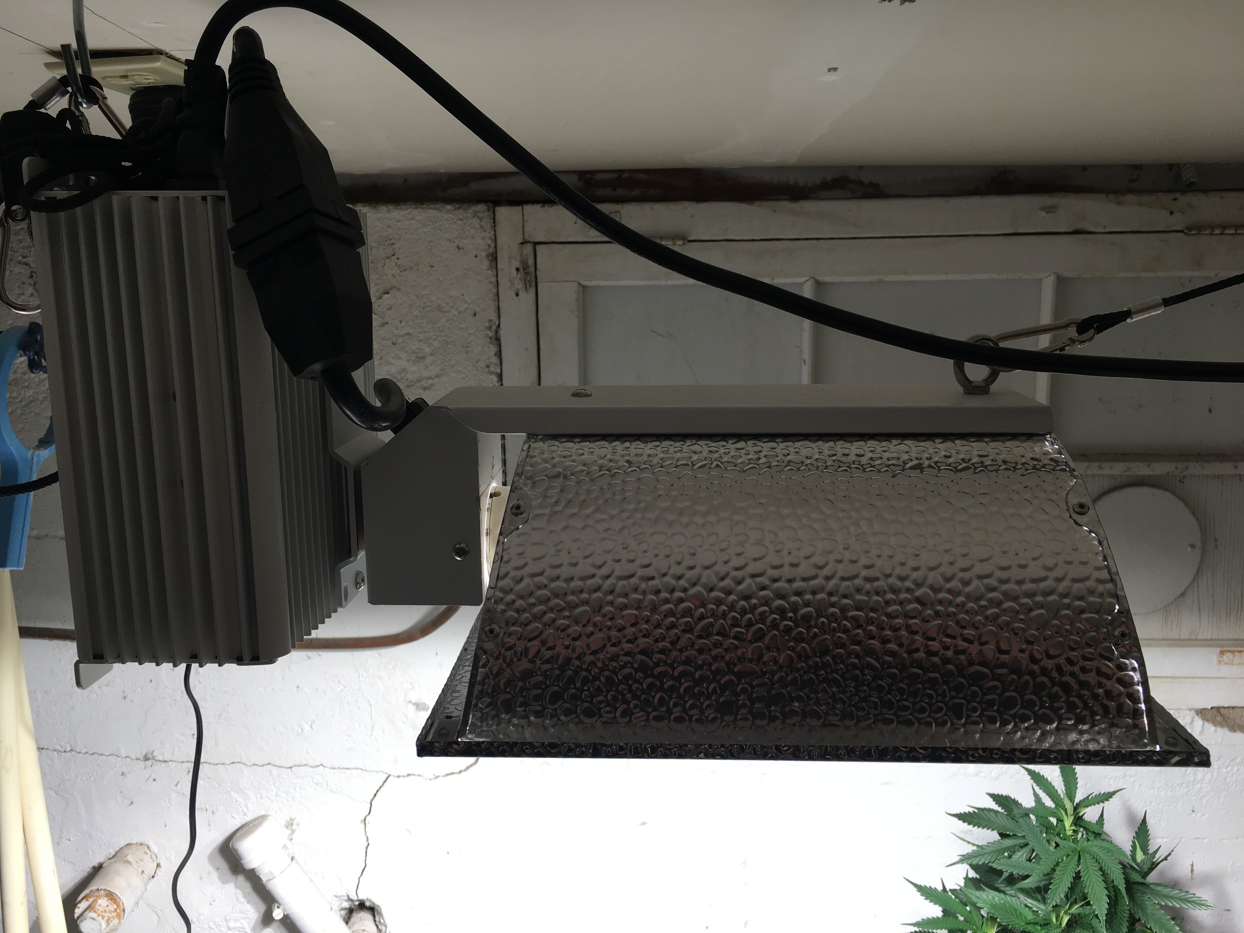My first Autos so took NebulaHaze advice, and left them alone with no topping or fimming. May have to LST as my basement ceiling is only around 6 feet high. Have my CMH hung about as high as it will go without punching a hole in the sheet rock. As a last resort I might have to move them to the barn, and pay for some auxiliary heat. Click image for larger version
