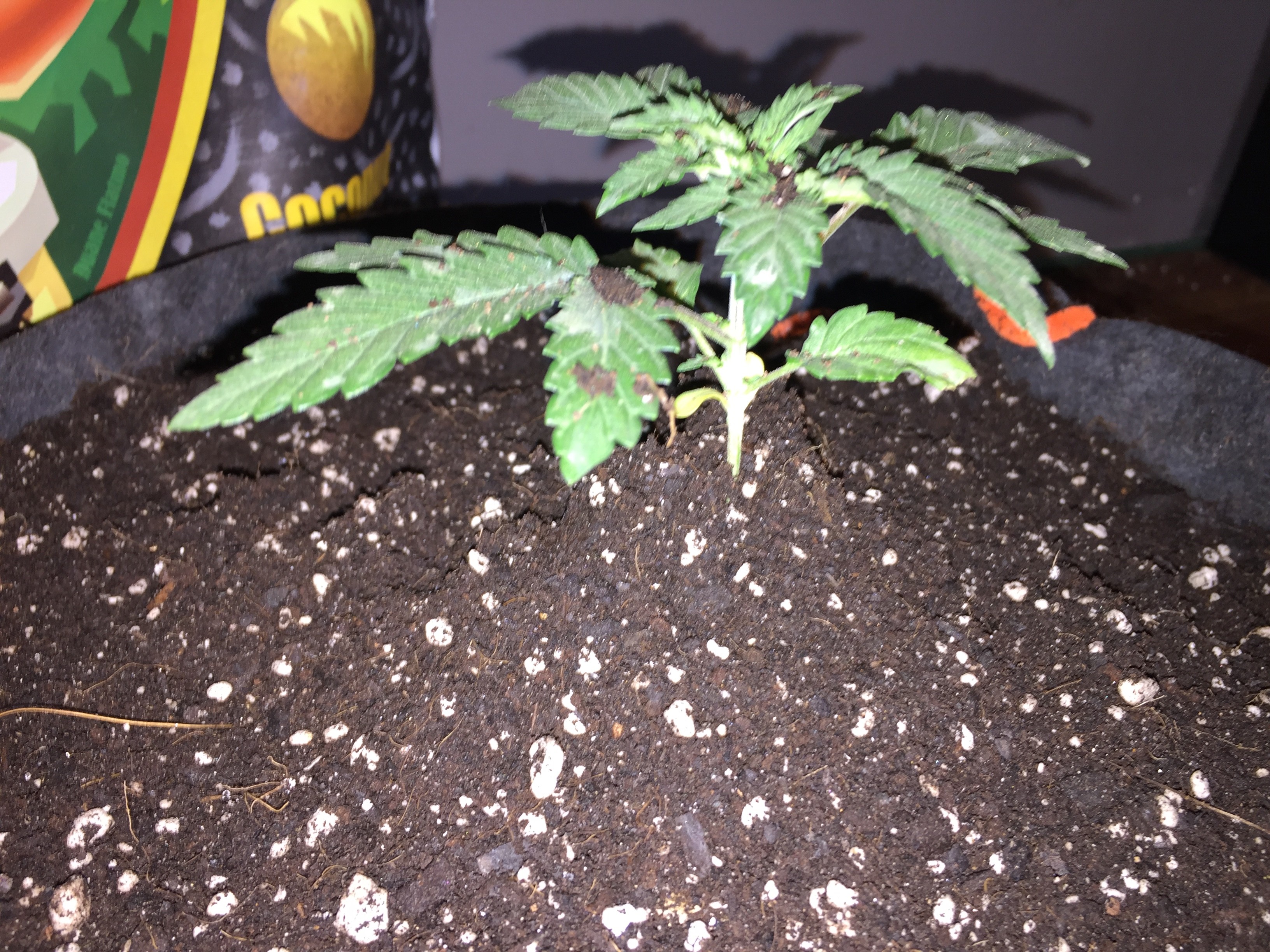 Okay so here’s my two regular photo GSC. I guess I lost track of time growing with this coco. Definitely don’t have to water as much. But yeah I think they’re like 2-3 weeks old. Kind of lost track of that too. But the reason I say that is because they were pretty big for there pots. So dropped in some 3gal fabric pots and getting ready to set em outside. On another note, only one of my GG#4 and Fruit Cake Punch popped but the gg stretched like a freakin vine for some reason. Which doesn’t make sense, since it was under four 6500k HO 24w t5s. Didn’t even want to post a pic lol but she’s growing good. Just leggy. I’ll just bury it when i transplant. But other than that, the two reg Cotton Candy popped and look good. All besides GSC are within first week above soil. Well, happy growing and wish me luck as I try to wrangle all these beasts.