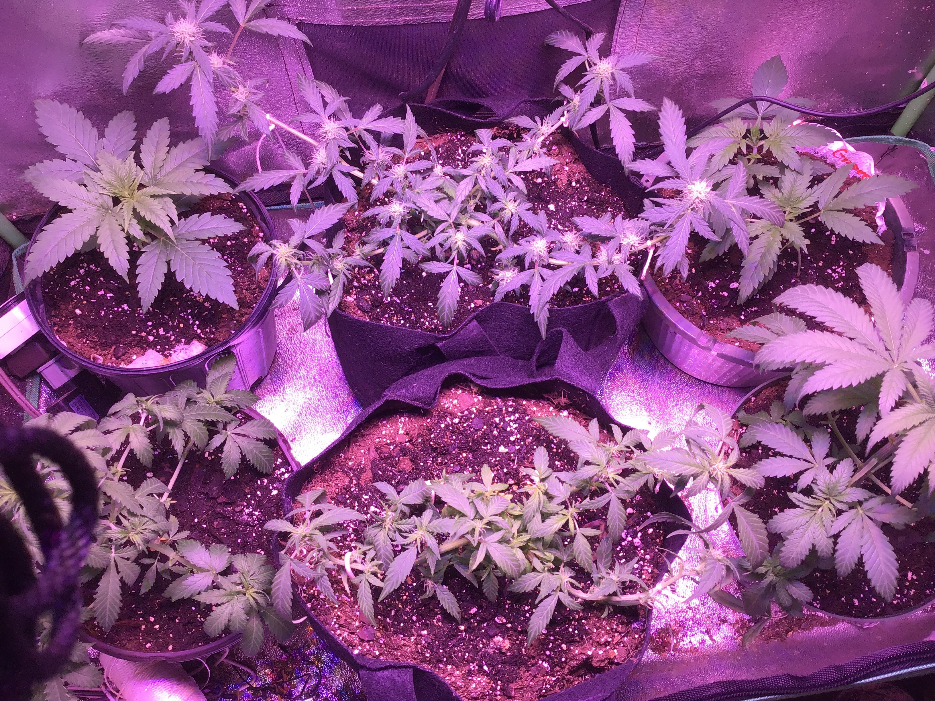 So, are they starting to classify as a SOG yet? I can bring myself to prune the starters yet. I was going to the other day. Later on today tho I need to do more training on the widows. Back left and front right corners are the new ones. I think they’re 2-1/2 weeks old. I don’t really keep track of ages. It’s a glue and 2 iced grapefruits. Iced grapefruit front left corner and glue right back corner with the two widow autos fluxed in the center.
