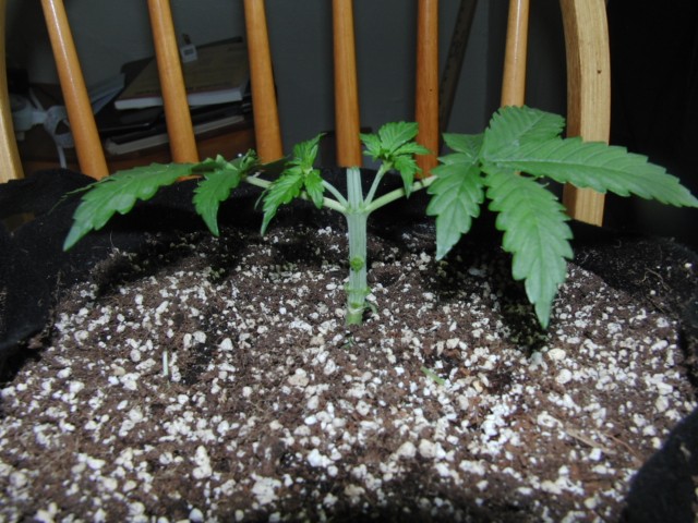 Got my one auto fruit punch put into its final home yesterday. I decided to go with a 10 gallon fabric pot. This is my first attempt at an auto so fingers crossed. I'll be putting her outside after the first full moon in June which I believe is the 3rd. Hope she gets enough sun to produce something decent!
