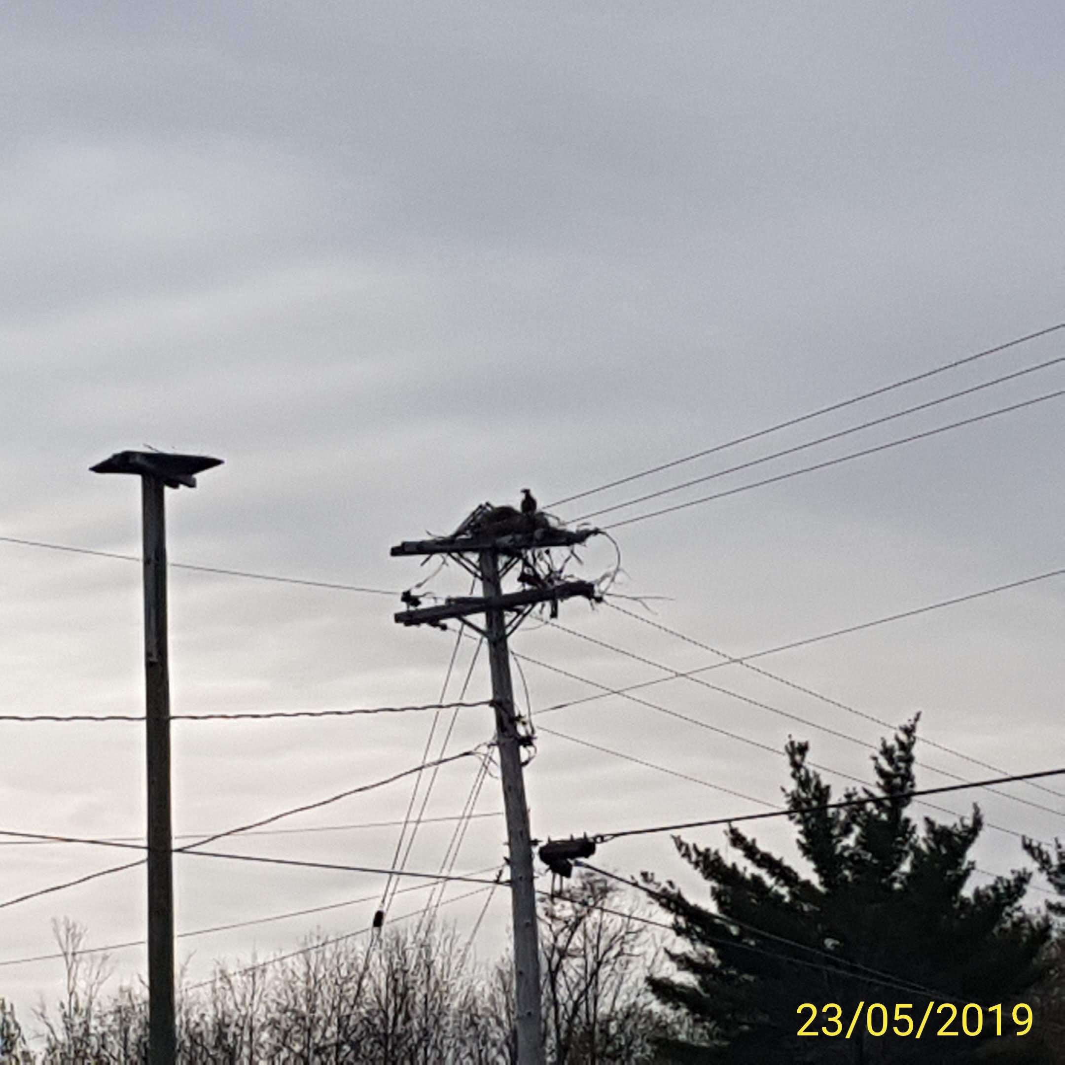 It is an Eagle nest on top of the power lines - so the Power Company put up a taller pole, with a flat top (hoping the eagles would shift)