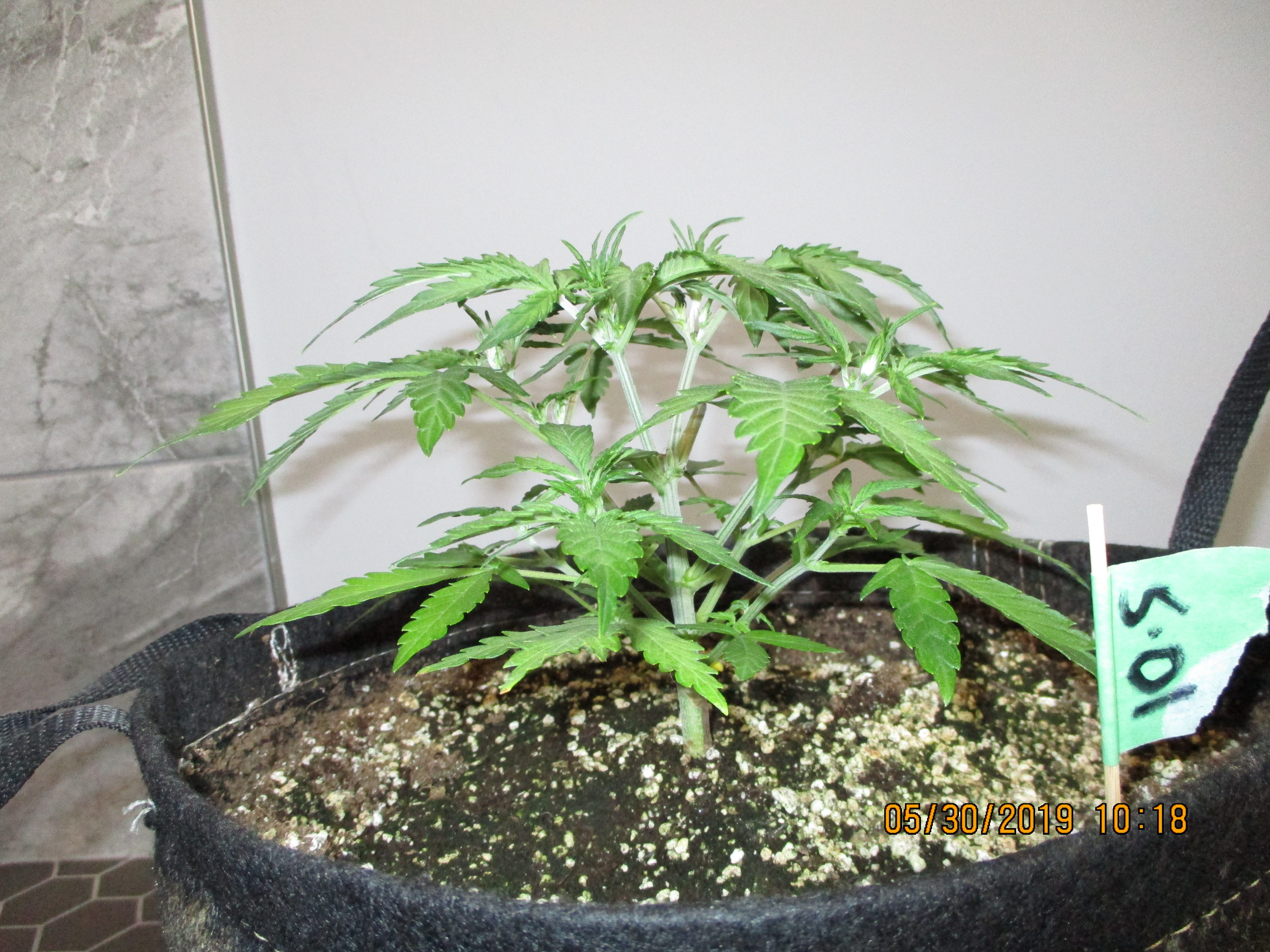 30 days from emerging from the dark. The one with the swizzle stick is 'Think Big' - the other - 'Sweet Tooth'. Topped them both and pruned a few leaves to encourage the outer growth to become branches. Click image for larger version