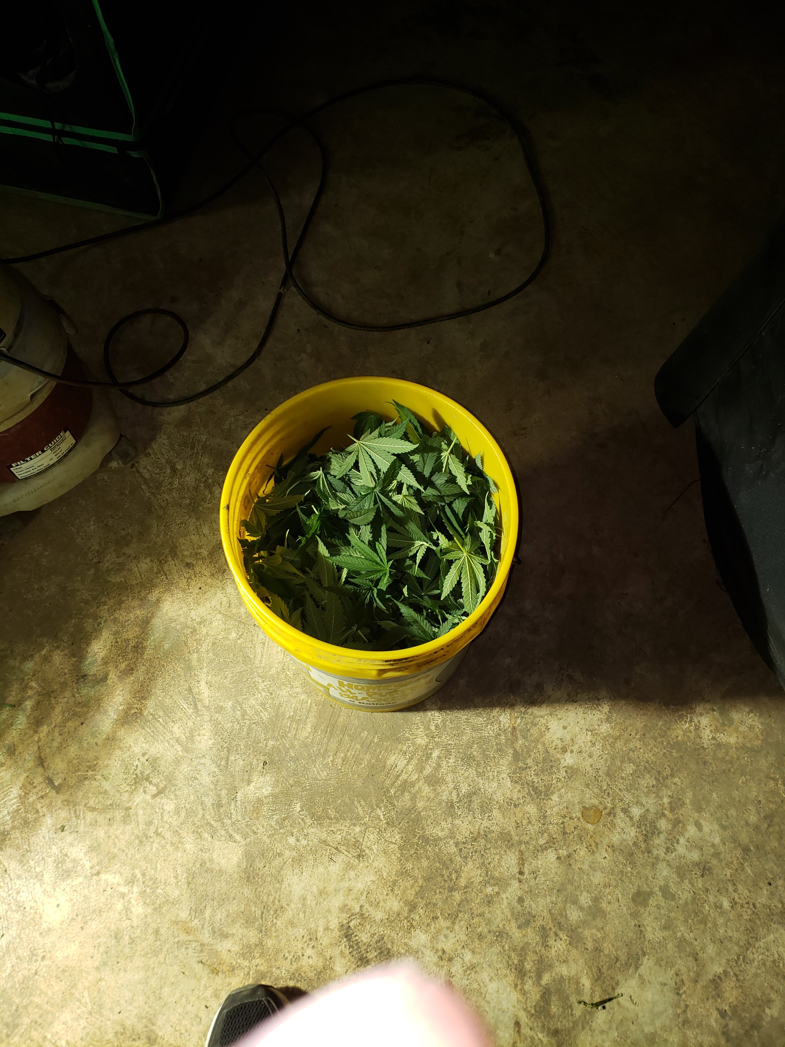 How does my outdoor look? It was flowering and a flood light installed and made it reveg. Harvest bottom half and it was getting pretty tall. Dug a hole and put the container in it and then stretched the branches with some ties and think it looks ok