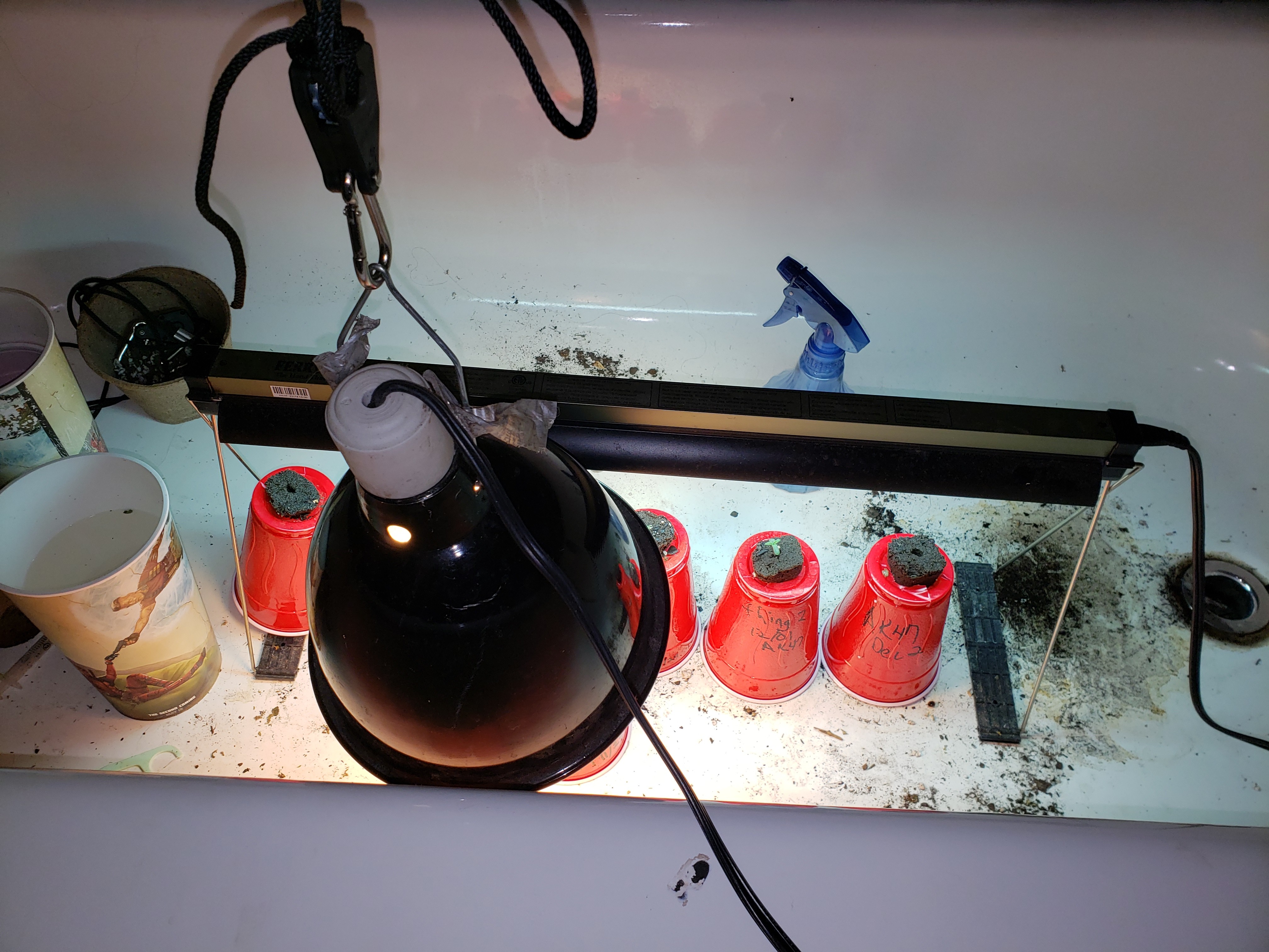 ID:	272273 that is basically my starter setup. It has a 24watt t5 which is plenty to start 6 plants and for the first week or more.The CFL is added in there because I have 8 plants started there and the last 2 do not fit well.