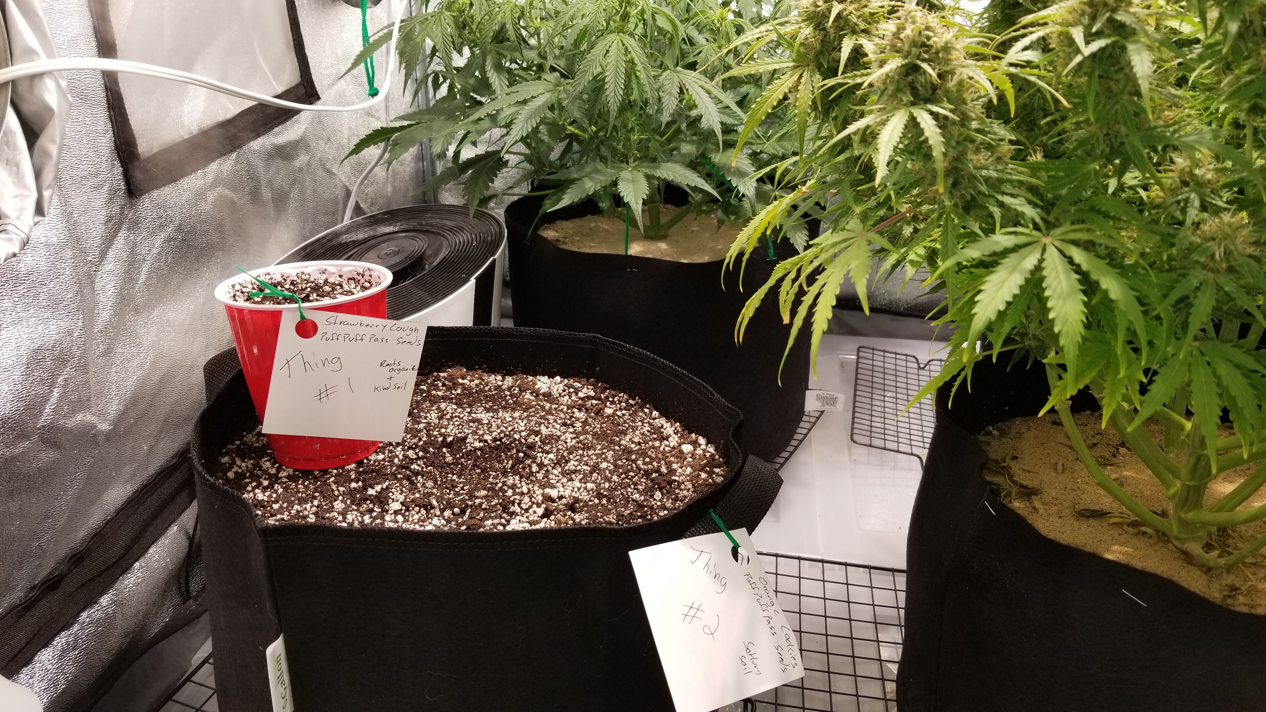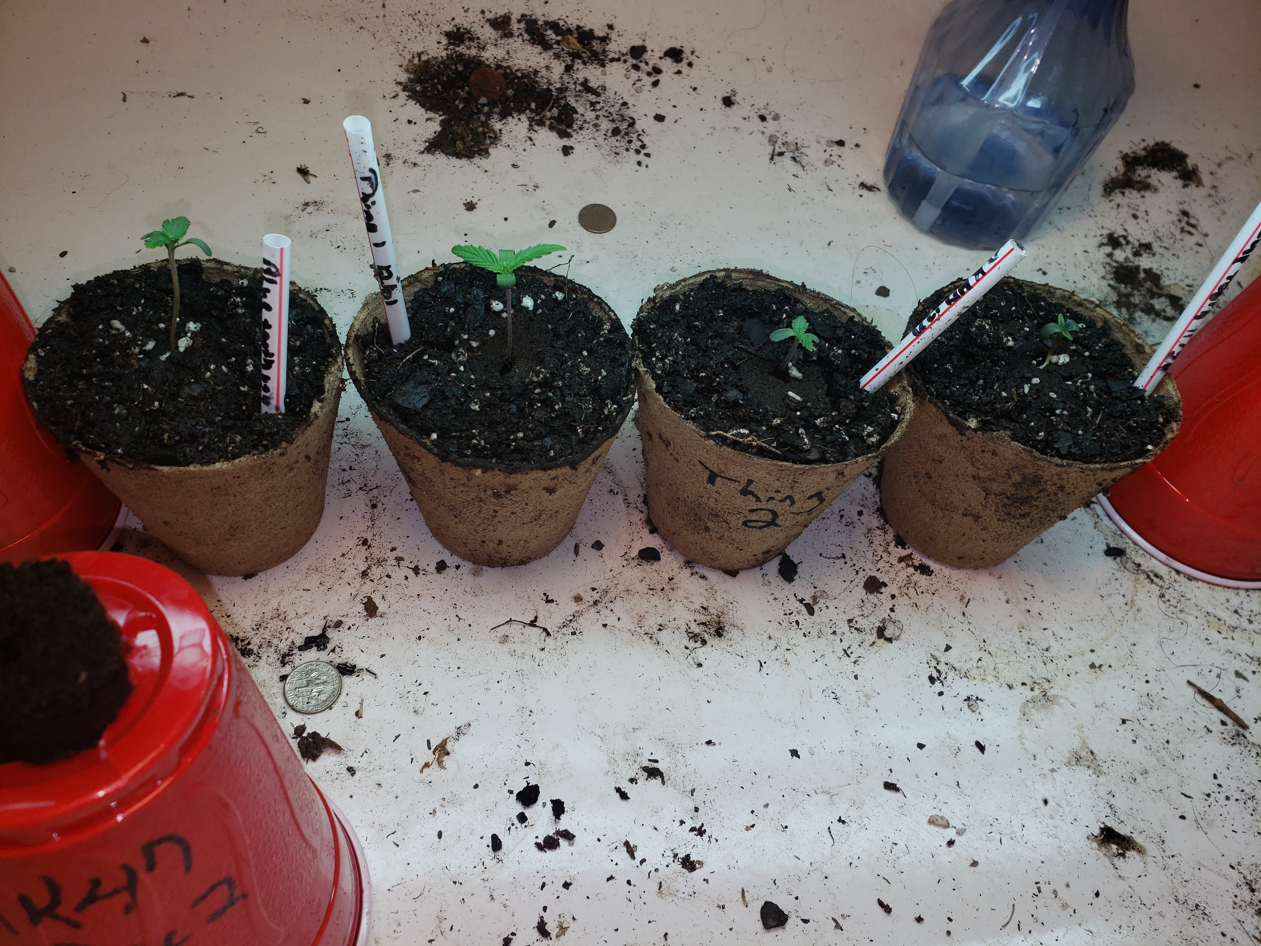Ok 4 of the plants have been put in peat pots. Thing one and thing 2 are in the middle. I Click image for larger version