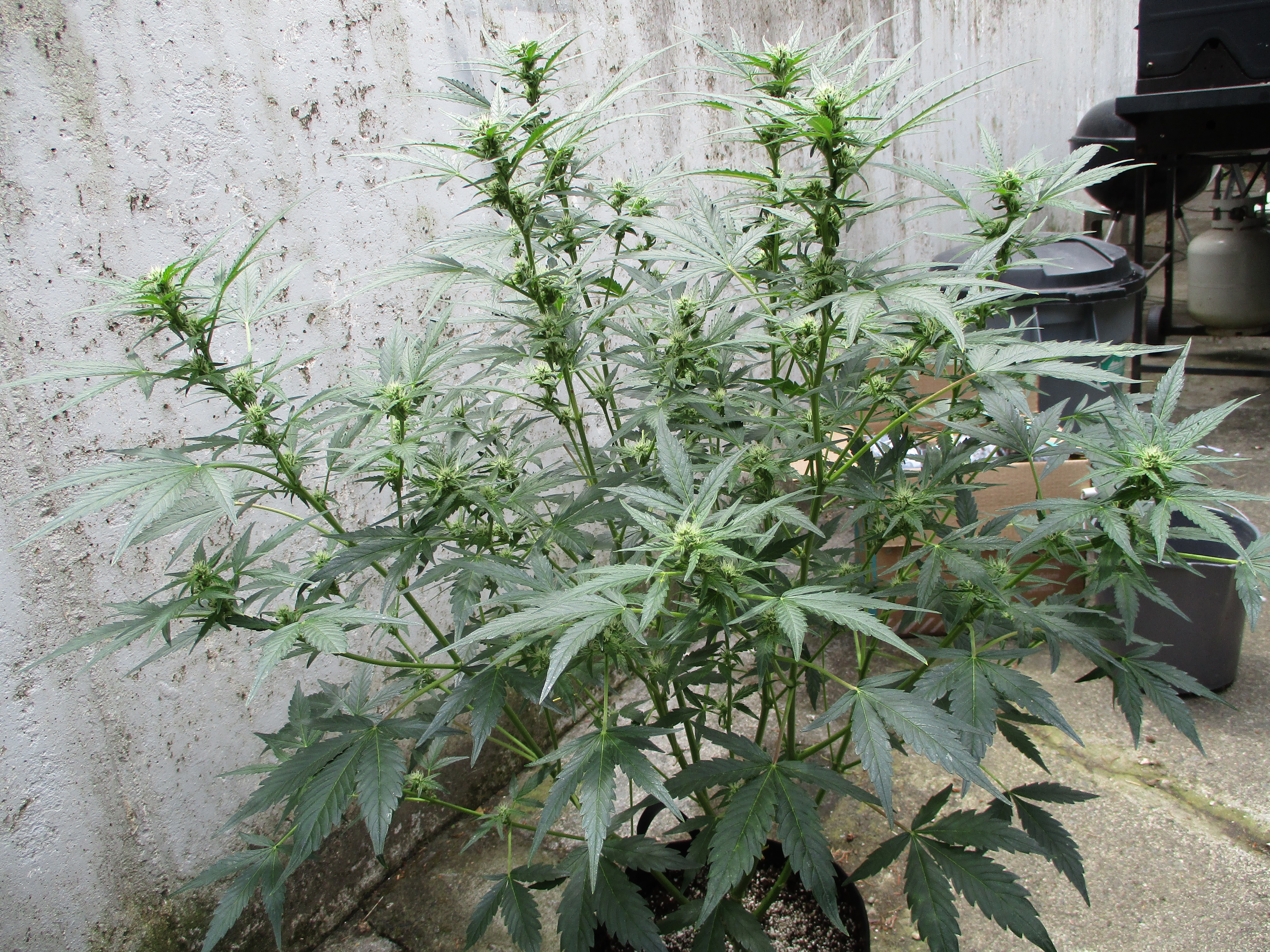 Day 54 for Think Big - about 2 weeks since being outside - on the plus side, the wind has been buffeting her around some so her stems and branches are that much stronger - hopefully for all the buds to come later. Supposed to be about 120 day plant. Click image for larger version