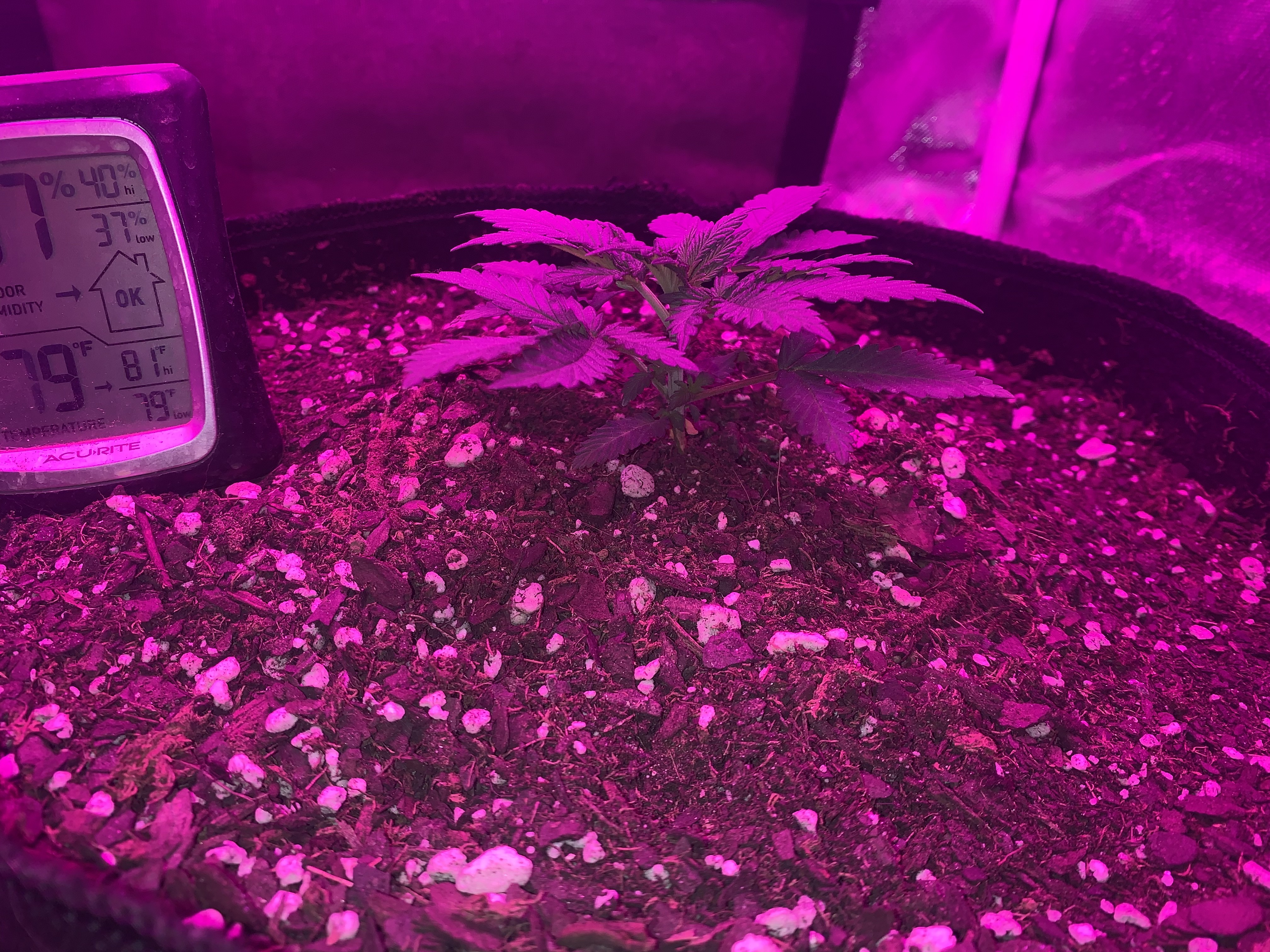 Don’t know if you guys are still posting Saturday updates or not but here’s my p98 lady at about 3 weeks? Close to it anyways. Took her out from under the t5 and added my blurple 100w but it actually grows plants surprisingly well. Already a noticeable amount of growth in the 2 days it’s been switched. Gonna start full nute strength next water. Oh and it’s in ff happy frog now in a 5 gal.