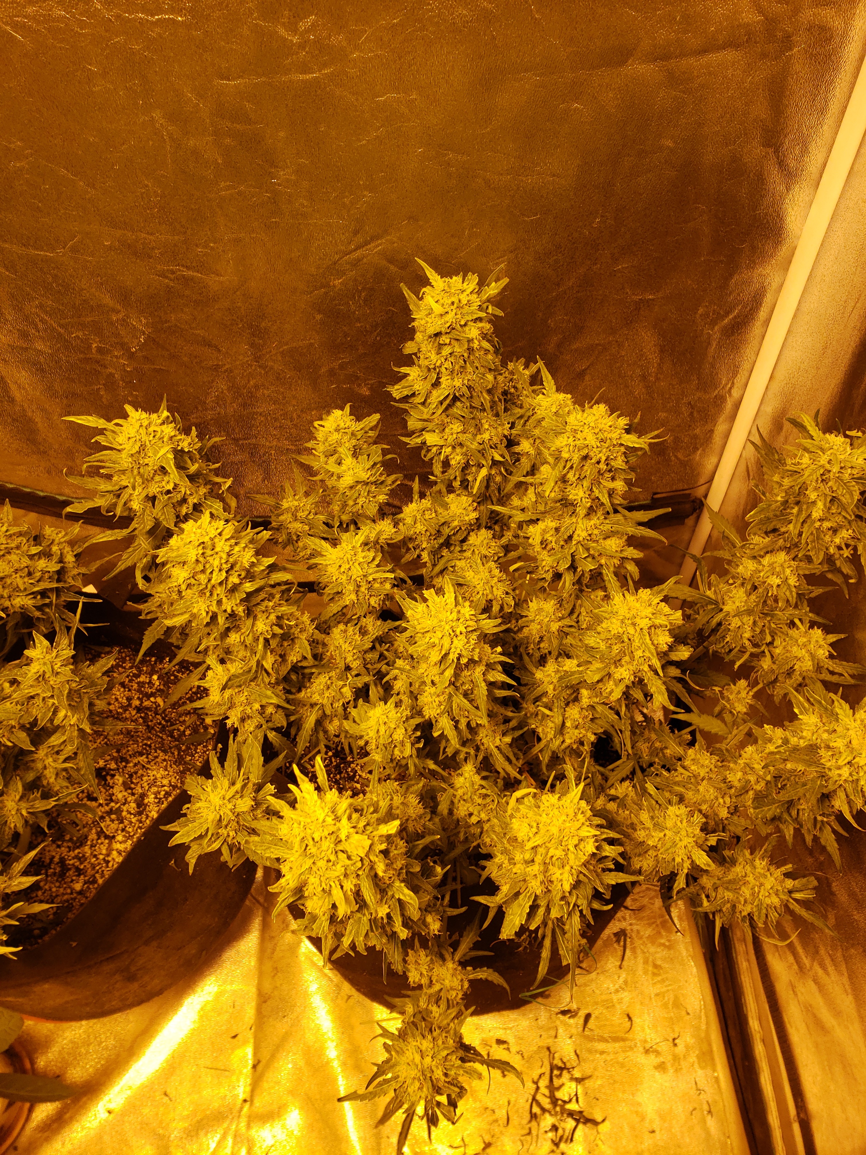 they still have at least a day or two of work to go. I have gotten 35 clones, and popcorn bud when dried would be about 48 grams. The trichome covered leaves would be about 100 grams dry. I suspect the popcorn from the whole tent will be 12 ounces dried. The leaves alot more. I can make 100s of clones if I wanted to.