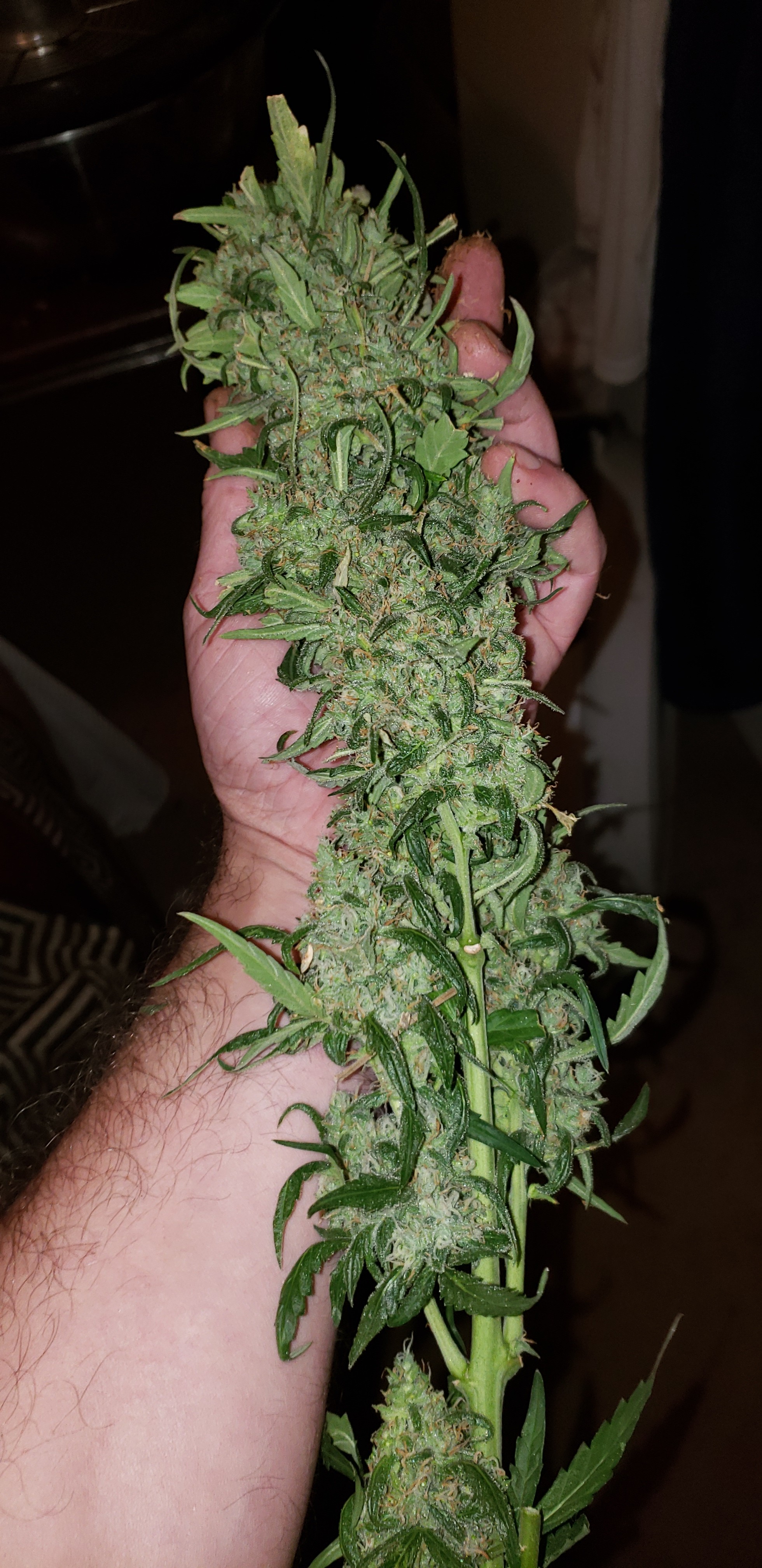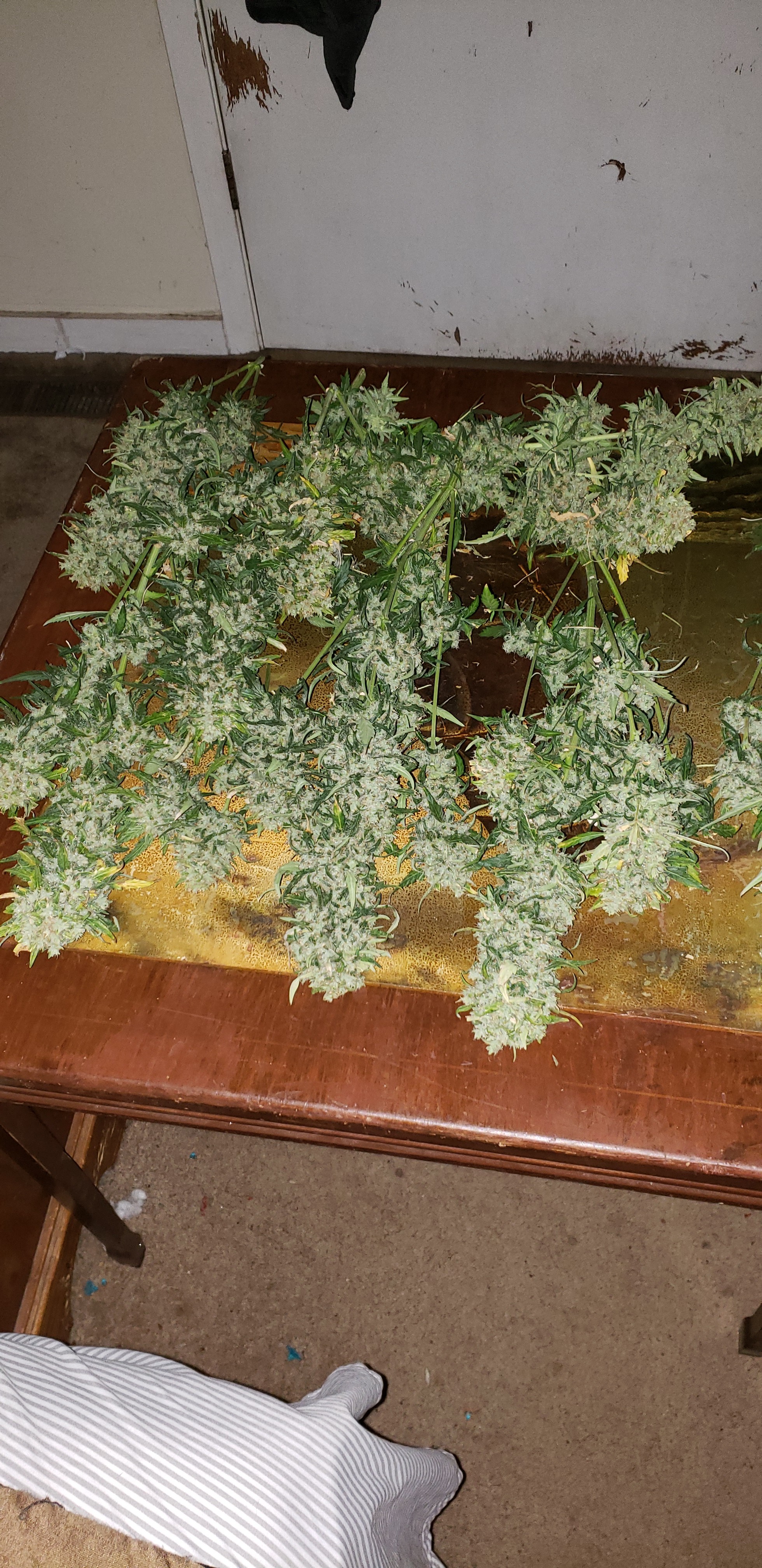 Harvested part of the unknown auto tonight. Hopefully it's tangerine dream, it doesn't smell like weed, but more like fruity pebbles or fruit punch. Still have the rest of the plant ripening another week. Hope this wasn't a bad idea, but it saves me from having to buy more to hold me over. Tried to only remove what was blocking the buds left on the plant.