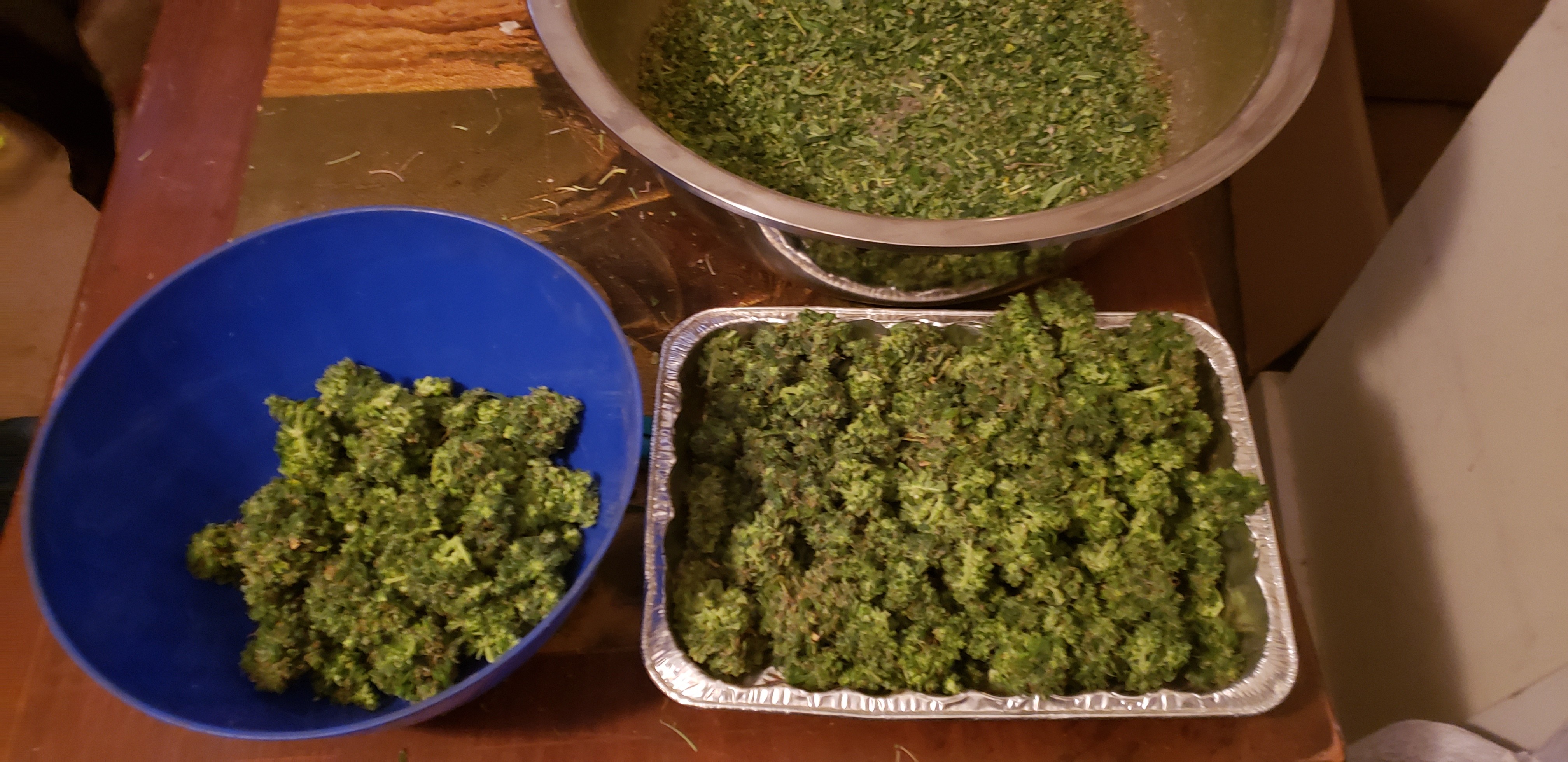 Little early, but chopped 2 grapefruit and dug out a ton of rot. Family is in this weekend, so took 1-1/2 hrs for three of us to go through and trim it all. Wish I owned a autotrimmer for the rest...lol. Longest bud was about 12”.