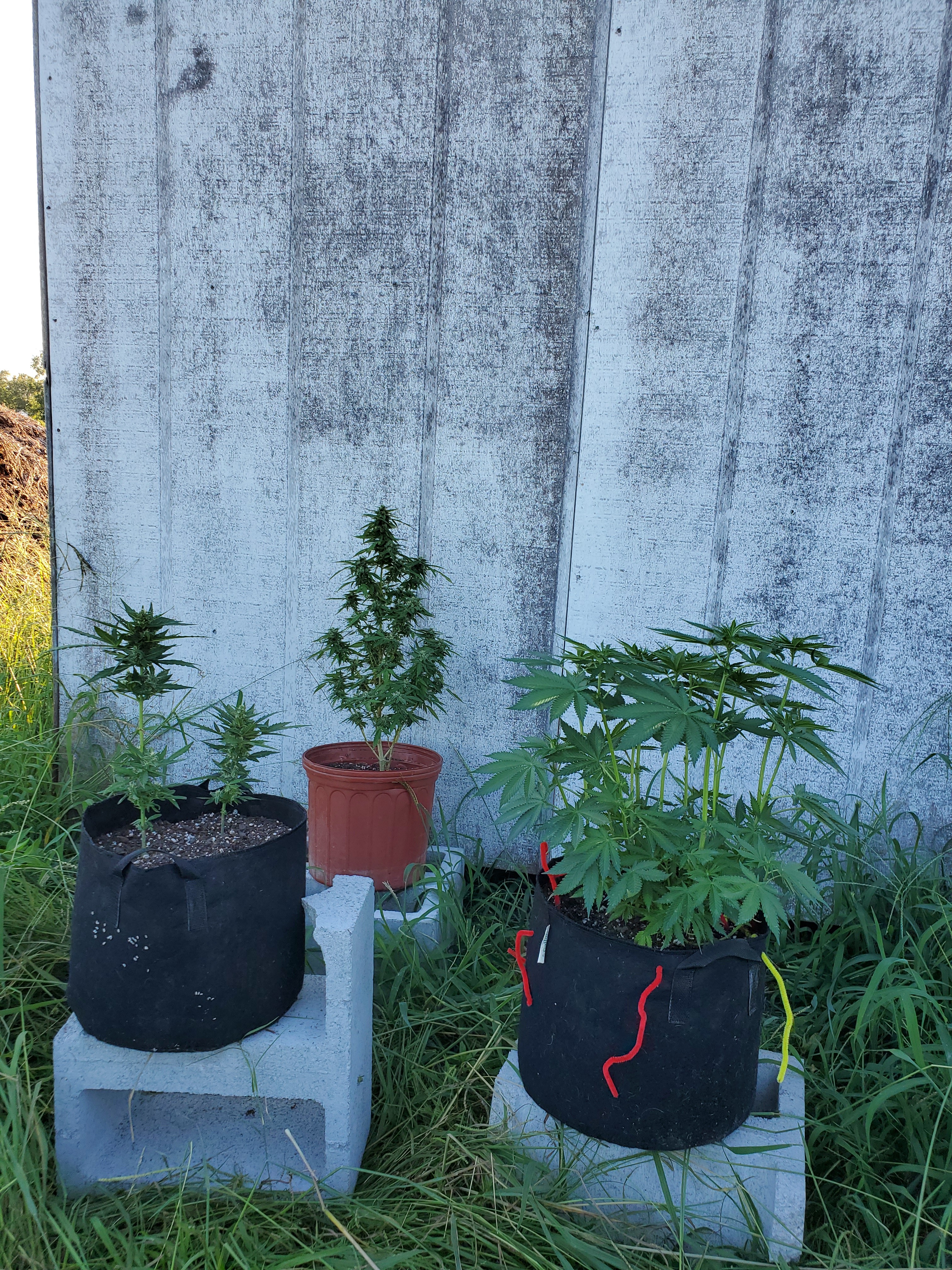 Chemdog on the left and Candy Kush on the right. Little one is Bubba Cheese - growing up tall and lanky.