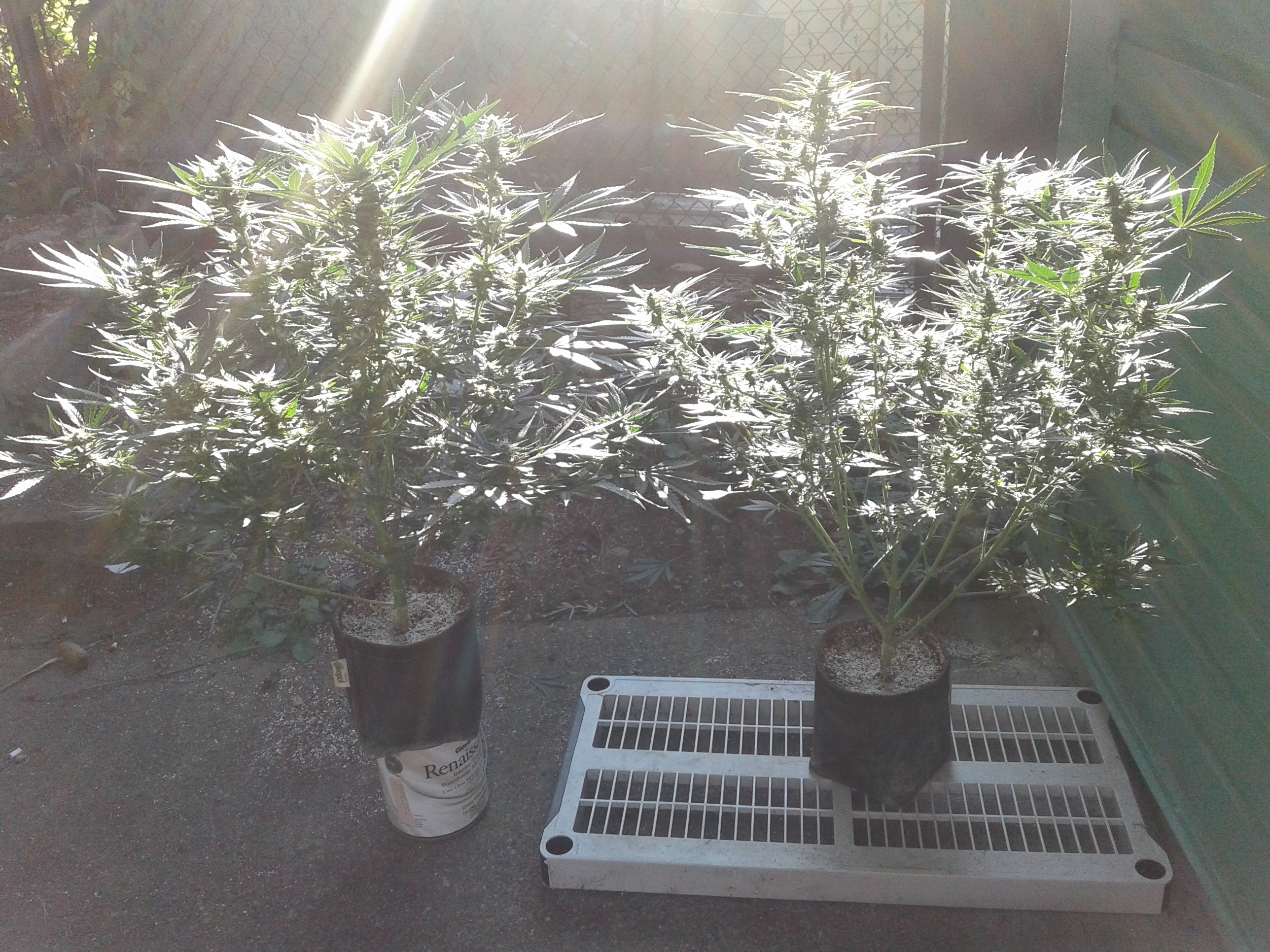 With the sun shining through.- it's easy to see which plant has bigger buds - Candy Kush on the left - Chemdog has some Larfy buds happening as the last one had that I harvested - so - I topped the buds.