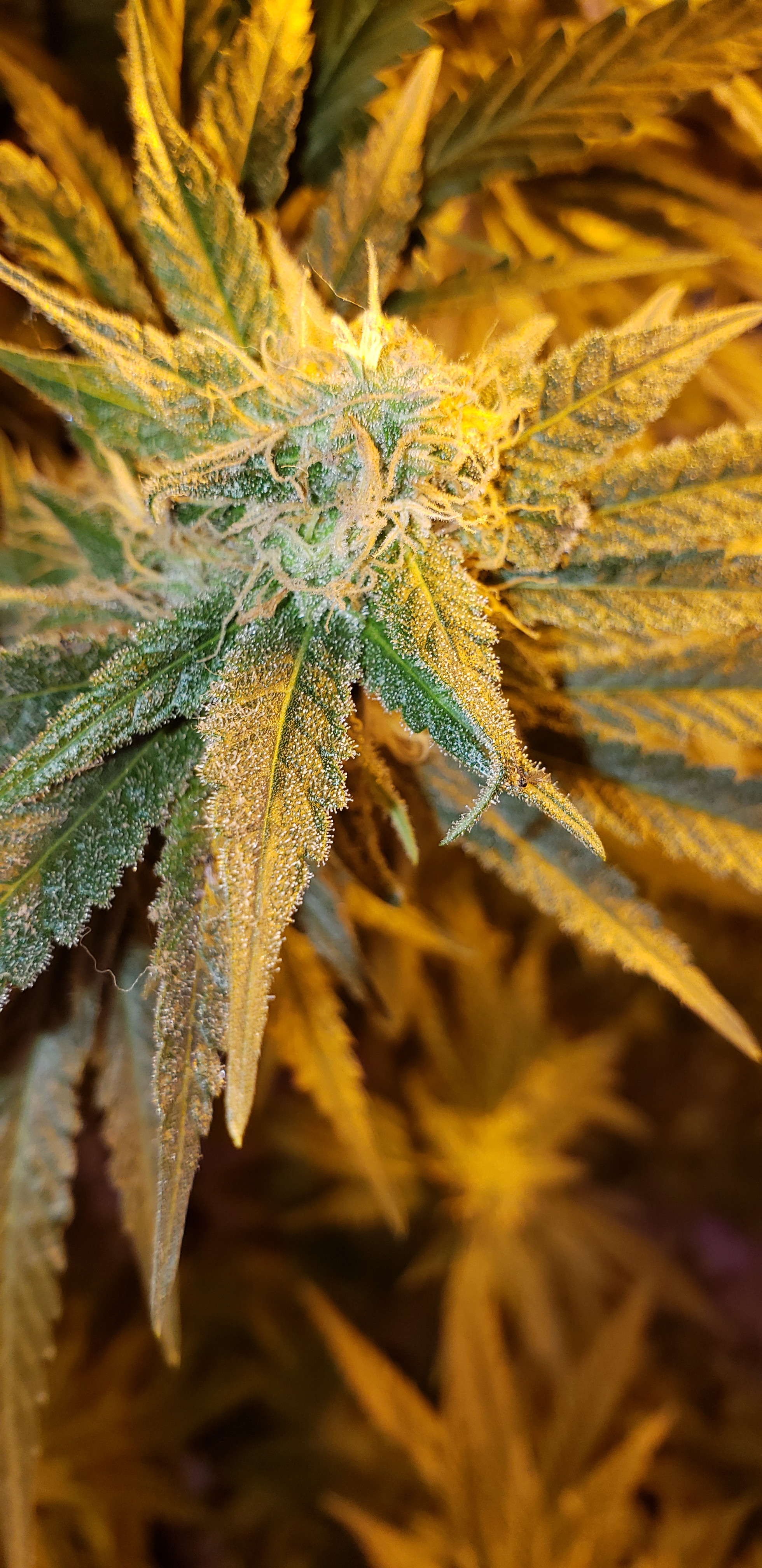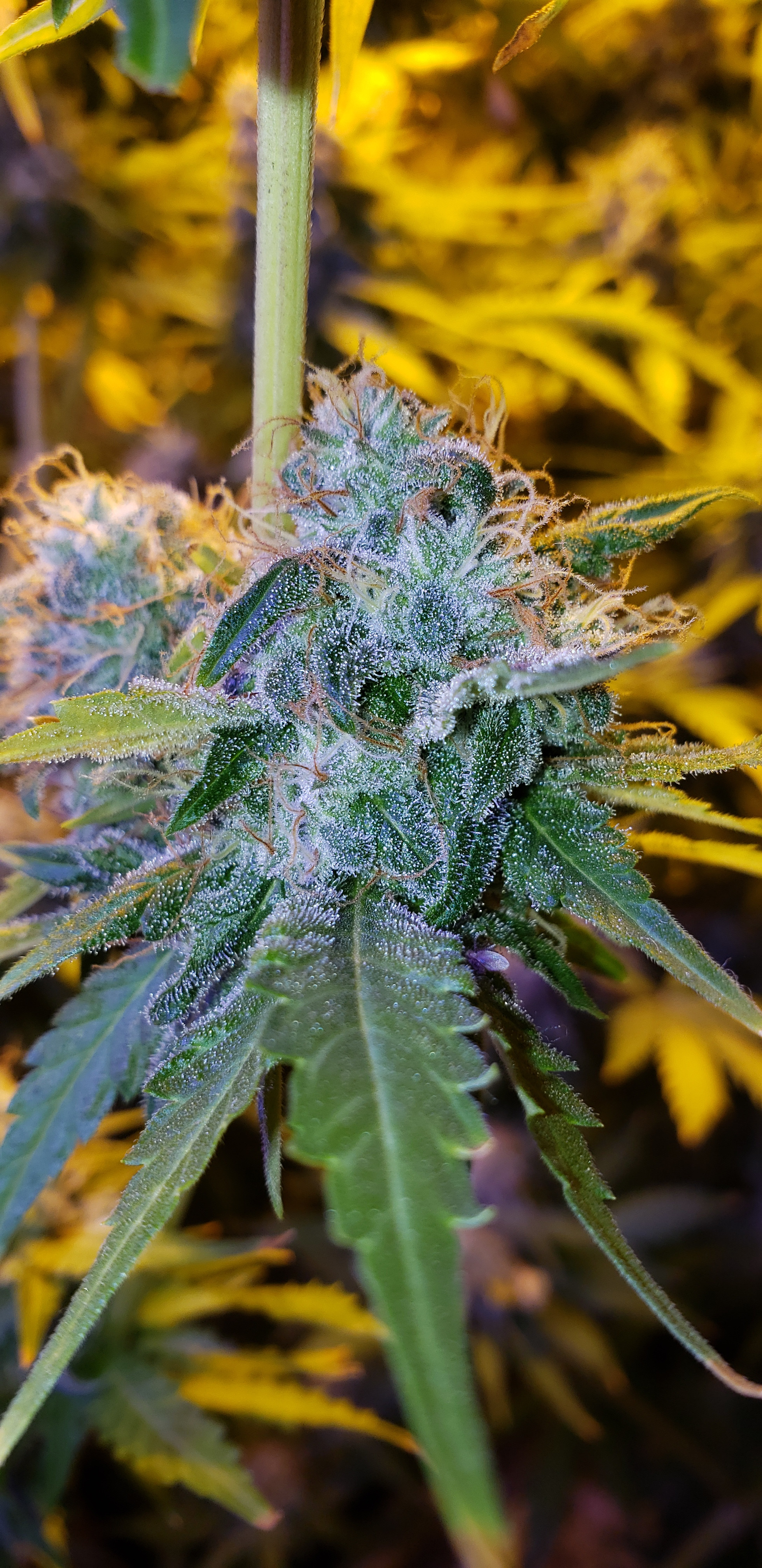 Just some pics of frosty buds 2 to 3 weeks before harvest. The small ones are just popcorn bud, but they will make some great hash. The other 2 pics are of supercropping.