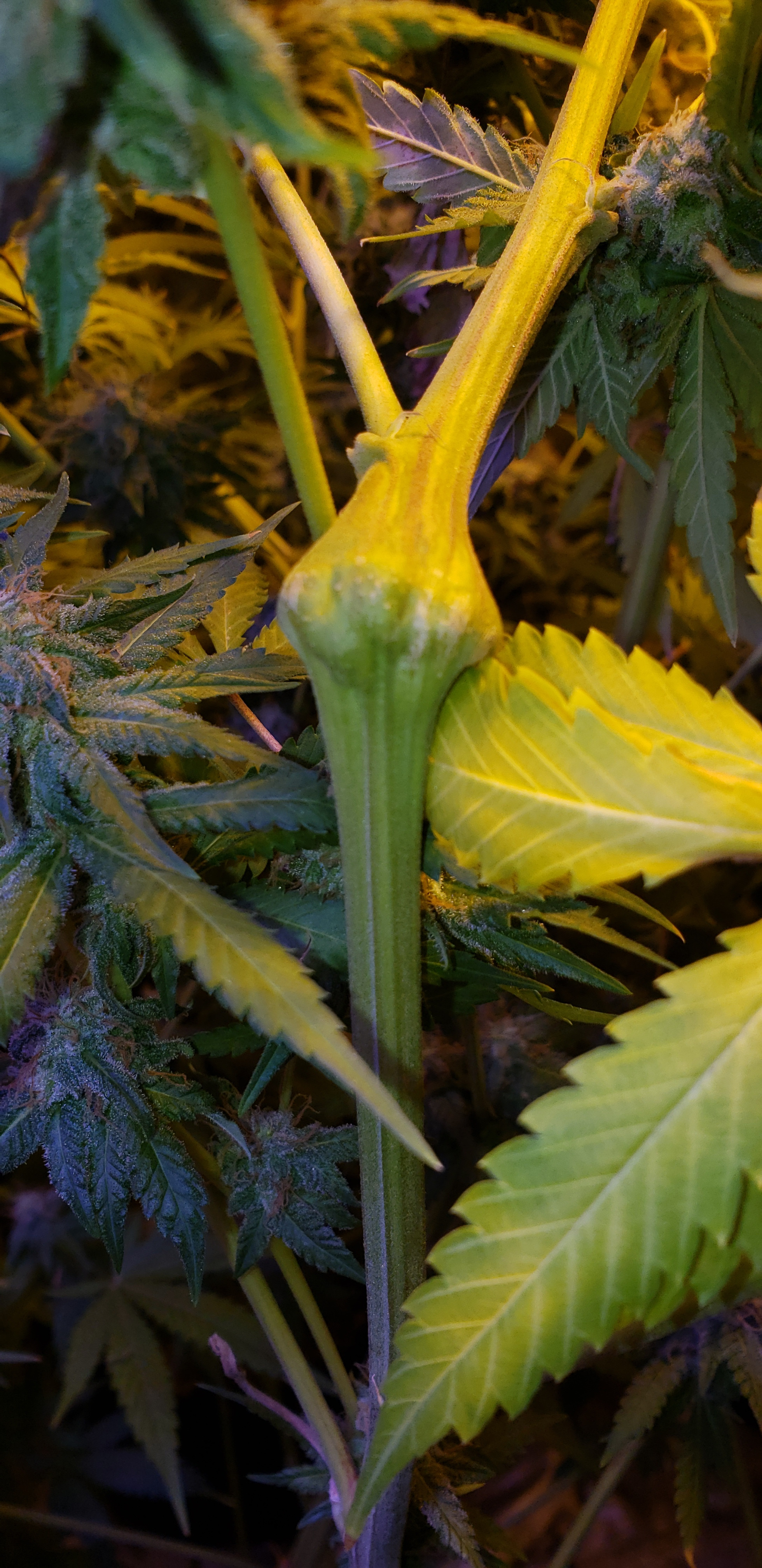 My dam email is not working this morning its 430 so sometimes they do repair work at this time so no pictures, Si I chopped the 3 over shadowed gorilla lous and my Lemon zketle I'm about 1/3 done with it thats a strange looking plant it started to look like it had alot of rot but its purple leaves had turned brown and it just looked like shit these were my 4 smallest plants ,the gl i cut the top off and hung the rest still ended up with 1 ounce of buds i know that horrible yield but hey they were dwarfed by everything else lol