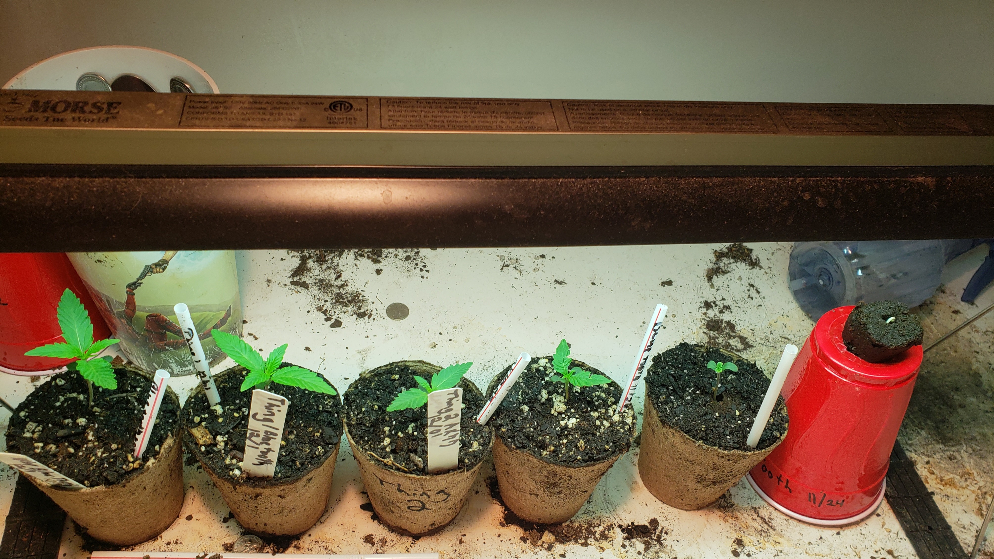 Here are my satarday pics. Finally got all 6 of my plants up. Well the one on the far right is almost up. Thing one is the 2nd from the left. Thing 2 is 3rd from the left.