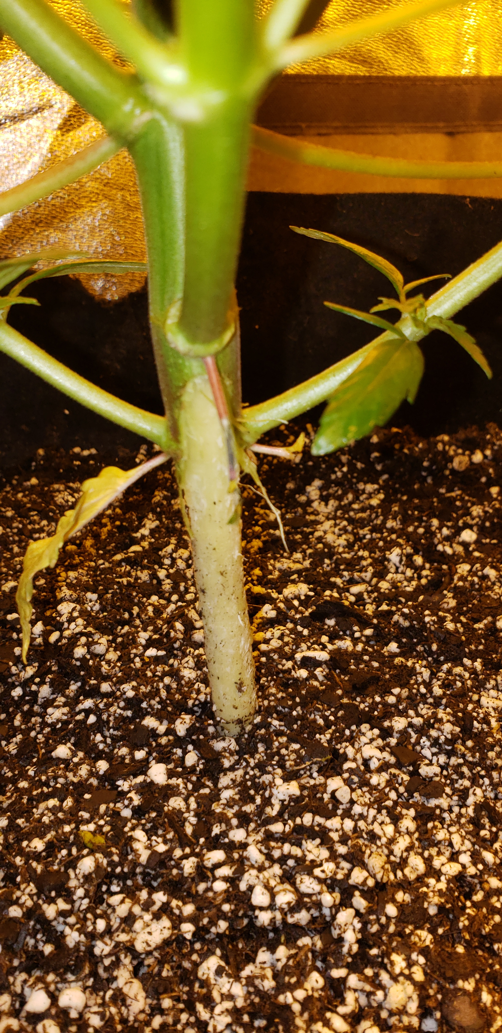Here is something I have never see in an inside grow. It had me confused for a bit. Outside it's more common. But here is a picture of rodent damage from where they eat the outside of the "bark."