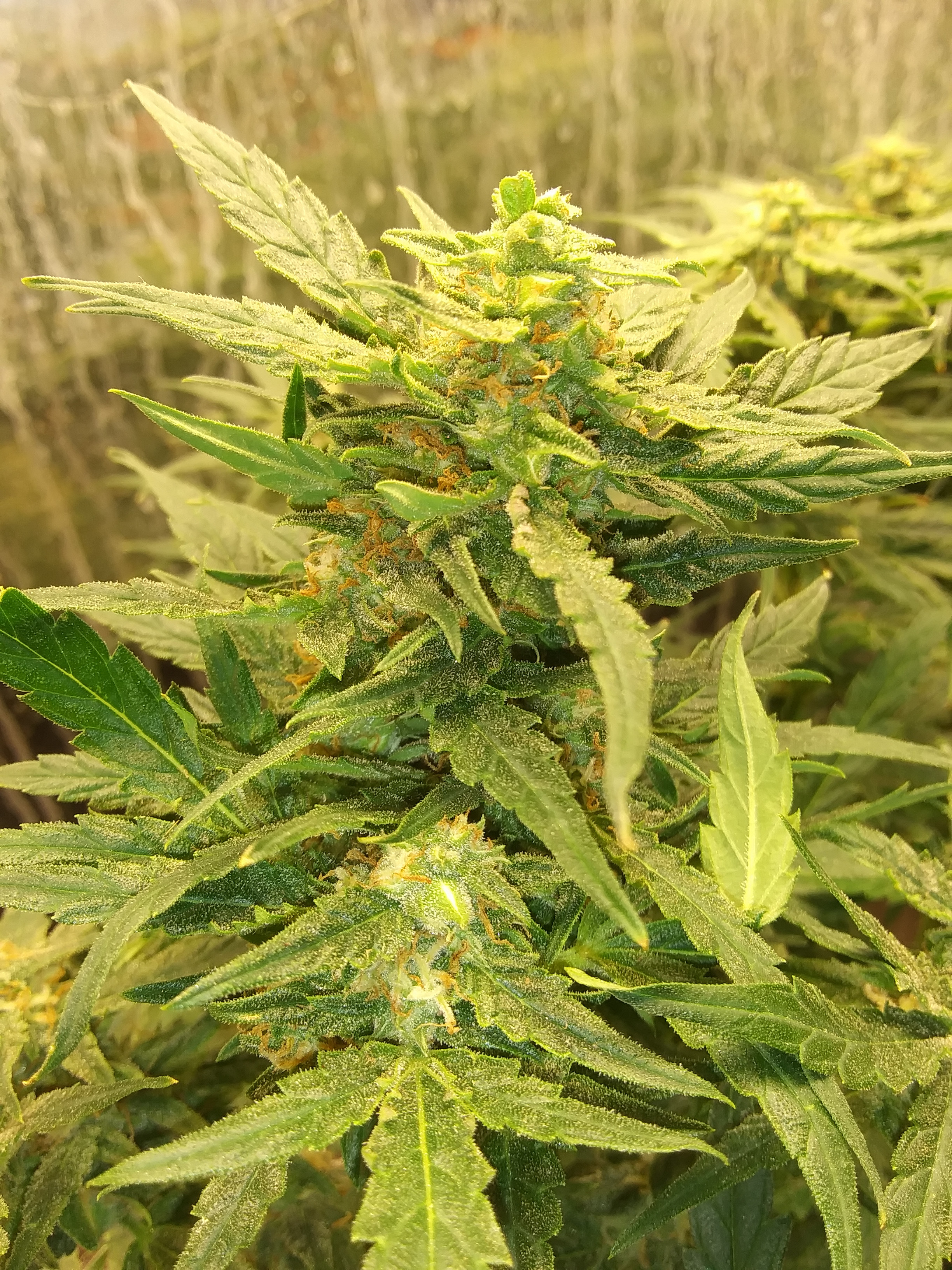 On week 10 or so for my amnesia grow. Really coming on now, heads are getting bigger each day. Smell is developing nicely. I am being careful about how much nutrients to give her. I gave a little to much last water and ended up burning the fan leave tips. Think it will be just 0.5 ml per litre of bloom boost from now on after 1ml a litre burning her. I'm very happy with how she is growing, new fabric pots and larger grow space are making a difference. New LED is definitely producing great results whilst saving energy.