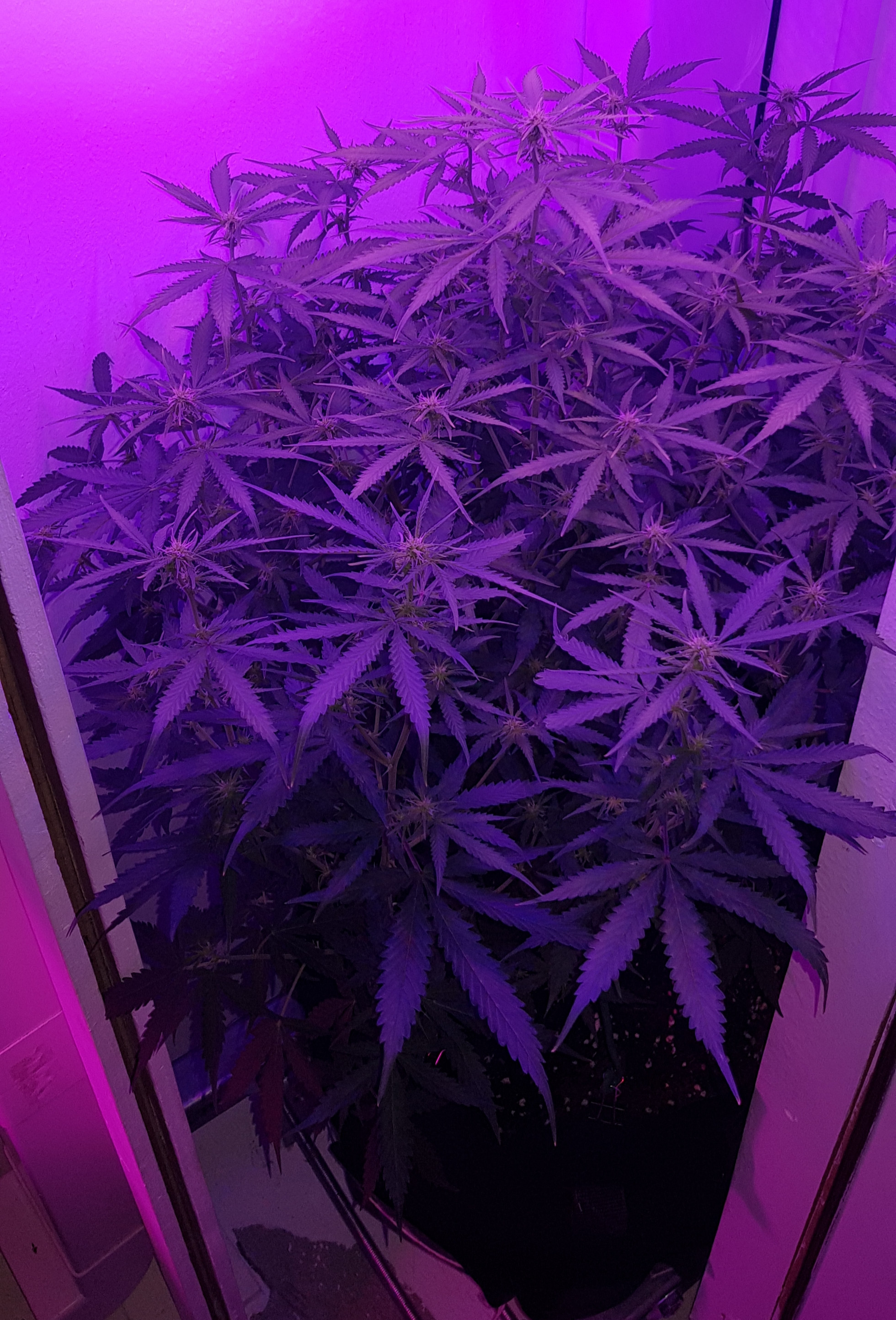 It seems you have alot more space than i do. If i had space like that I would let the fan leaves grow. I am selective about what I remove, it is normally ones covering bud sites and after, I have noticed a difference. Perhaps the small space i had and the reflection from the close white walls helped the lower buds and leaves to get that light. I do also try and tie the stems back and spread her open. I will see how this grow goes. I have had a few mistakes on my way here but learned. Advice i have been given on this forum has been put to use on this grow. So thank use. 👍
