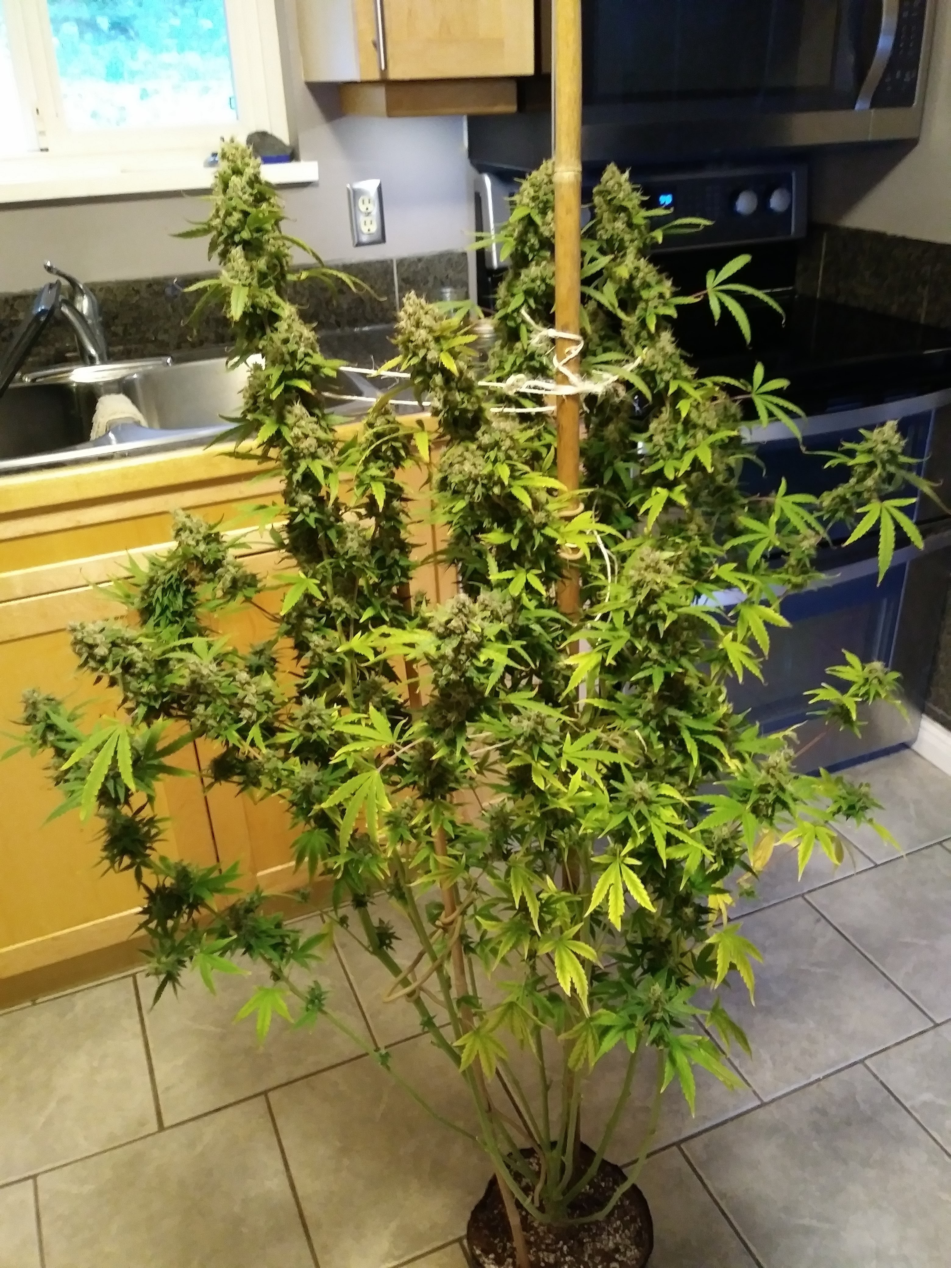 She started off weird with sets of three leaves at the onset. Couldn't really tell if that persisted cuz I topped her at 5 down to the third node. And didn't like that at all - did nothing for like 3 days. Then she began to grow. All the way to 4 feet (50 inches) and I'm asking her 'why'? You were supposed to be short.