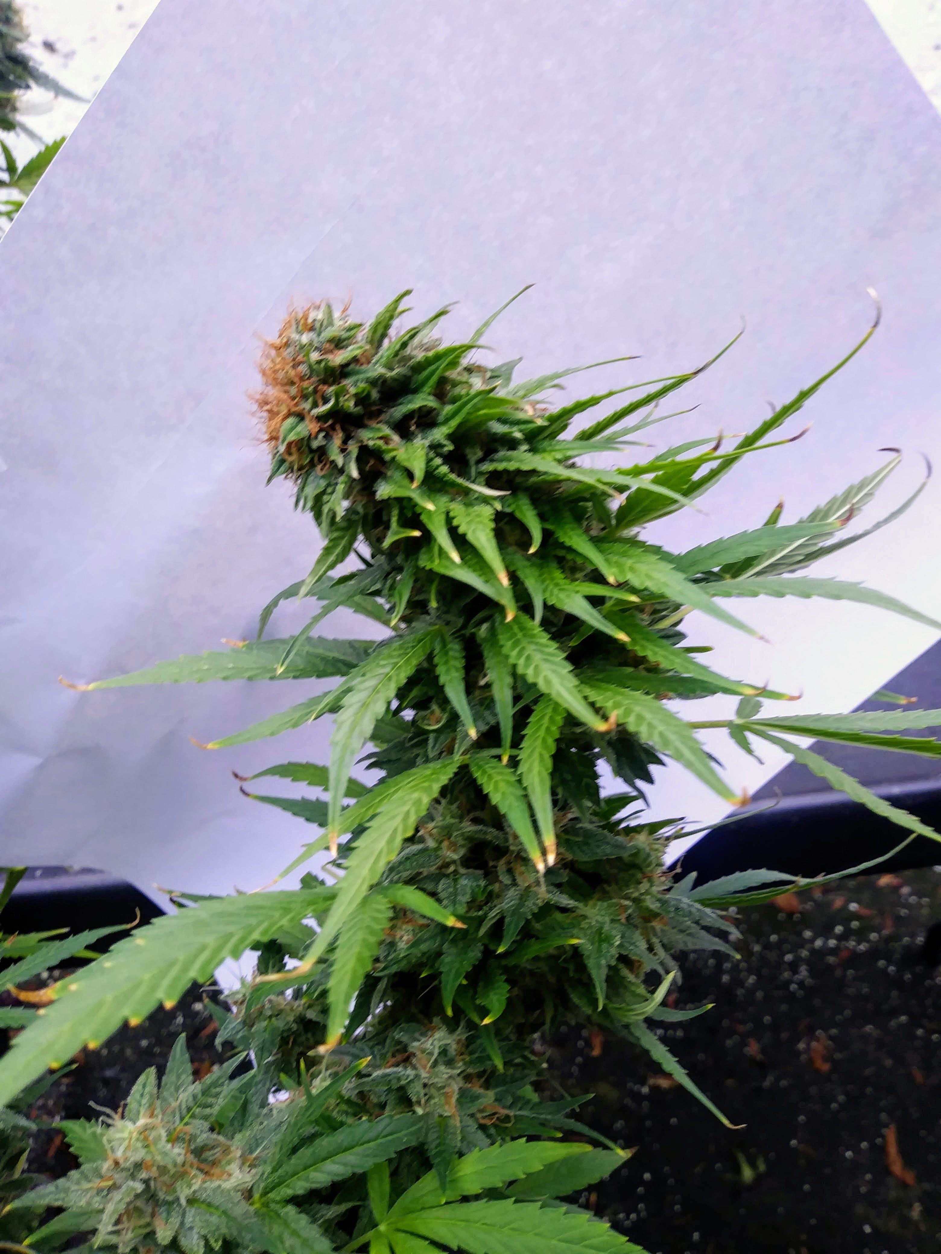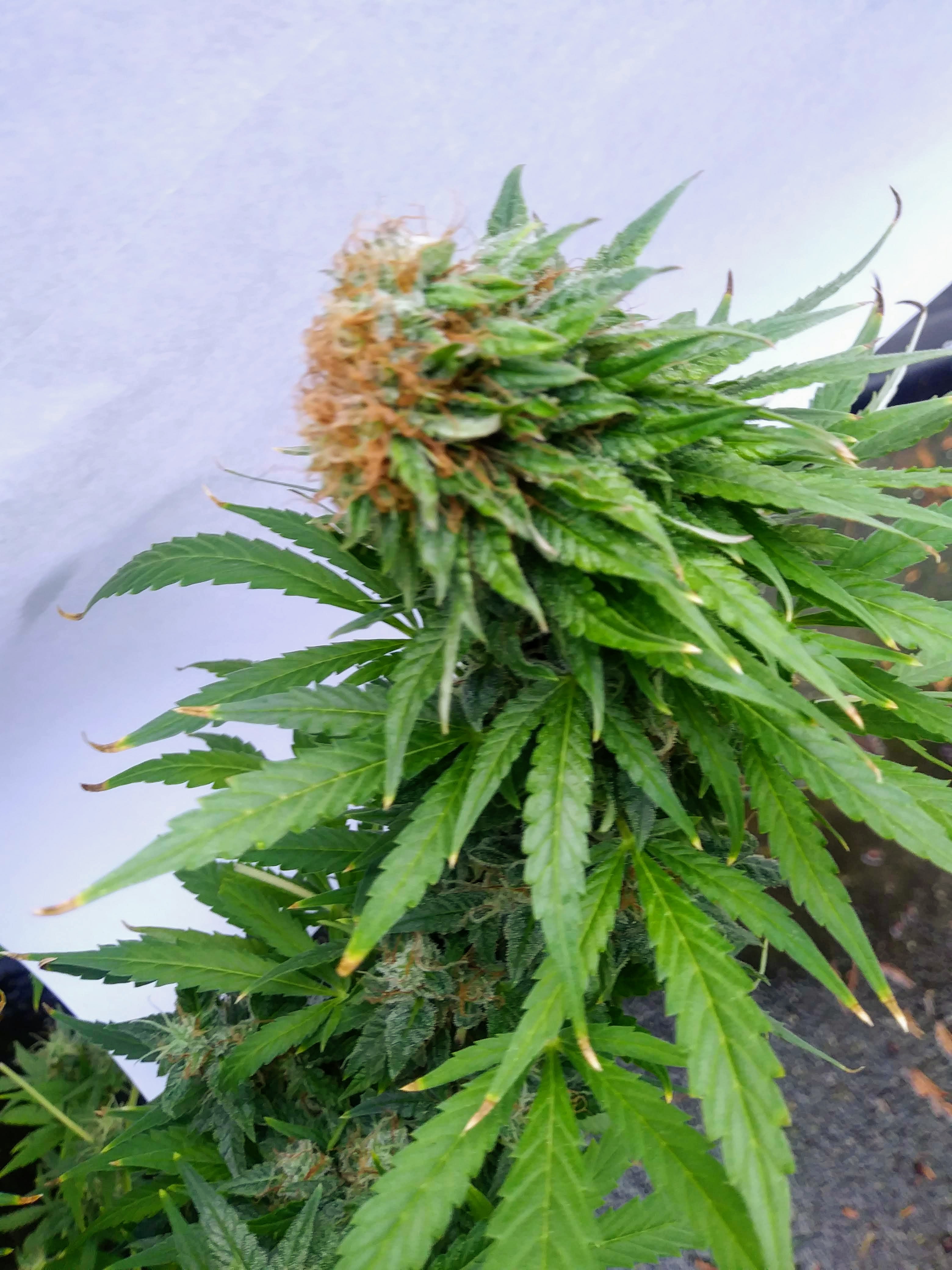 At first - because of the thick stem - I thought I just might have something we all want once in a while - something bigger. Polyploidism of some kind - synonym to giganticism. But didn't grow into something really big and ugly. To me it looks like an invisible hand held it back from growing as tall as the other colas - but everything beneath kept growing and bunching up like a train wreck.