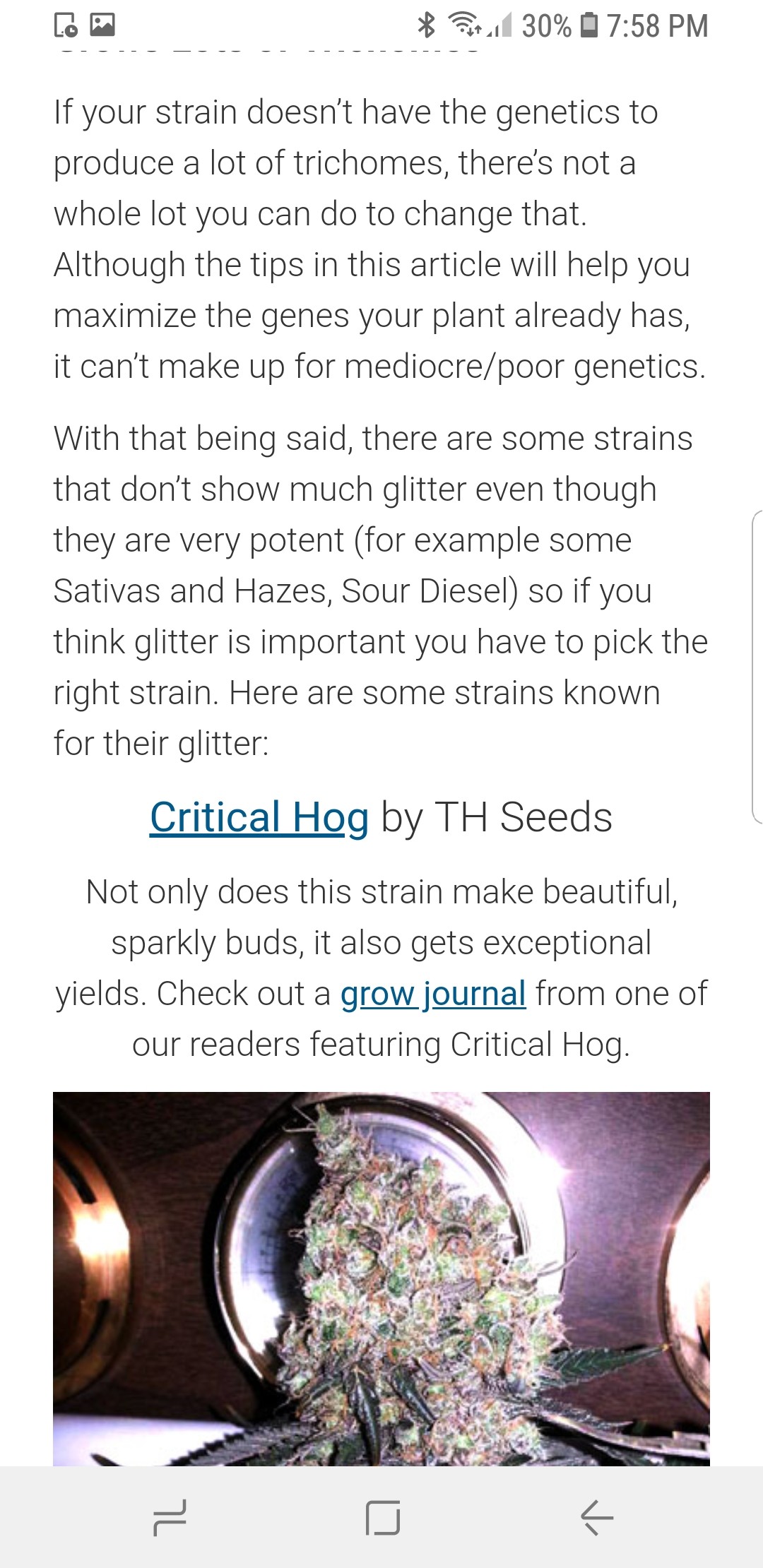 Hey again GWE. I don't know if anyone has been actually following some of my posts about these issues that I'm having of supposedly Auto and photos. But I have what is an auto that I got in a group of five seeds from Nirvana four and a half months ago. It's a hundred and twelve days old, but I will post pics tomorrow or as soon as I can but the buds are colas or whatever you call it are fattening up but there's no trichomes at all. Which I think is a little strange. The whole plant is strange. Two and a half months ago the other four plants from the group of five seeds were harvested. I've had so many issues with this plant because it's in kind soil or was but that ran out long ago with its nutrient levels. Anyway what do you do with a plant that has no trichomes on it? It should be all crystally. Shouldn't it?