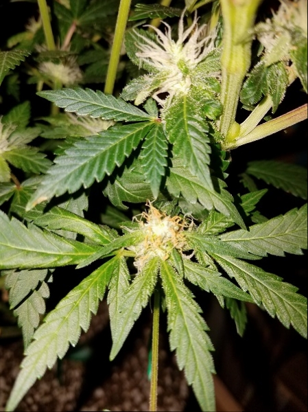 This plant is still having problems as is evident in one of the pictures, but it still continues to grow. Look at that frosting! This plant is going to put out some tasty smoke.