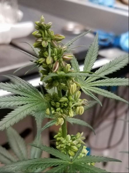 Let's get started with the male which has been separated and is living in the garage(Been there a time or two). I have been collecting pollen and have pollinated a bud on the Super Lemon Haze and Incredible Bulk.