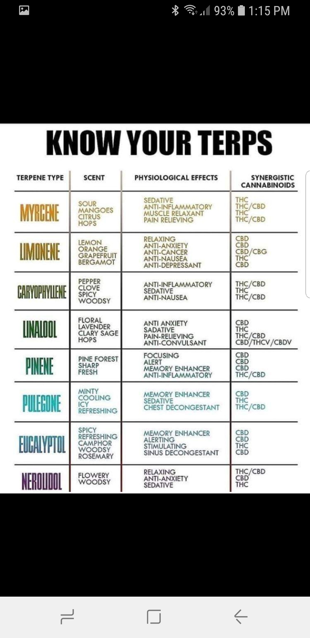Terpenes themselves have effects of their own, eucalyptol is quite awakening/alerting in the smell and so on, but I doubt linalool containing weed is going to make your high skin “softer” haha. So although they would obviously have subtle effects they will be so personalised and different for each and every person the chart would have to be far more developed.