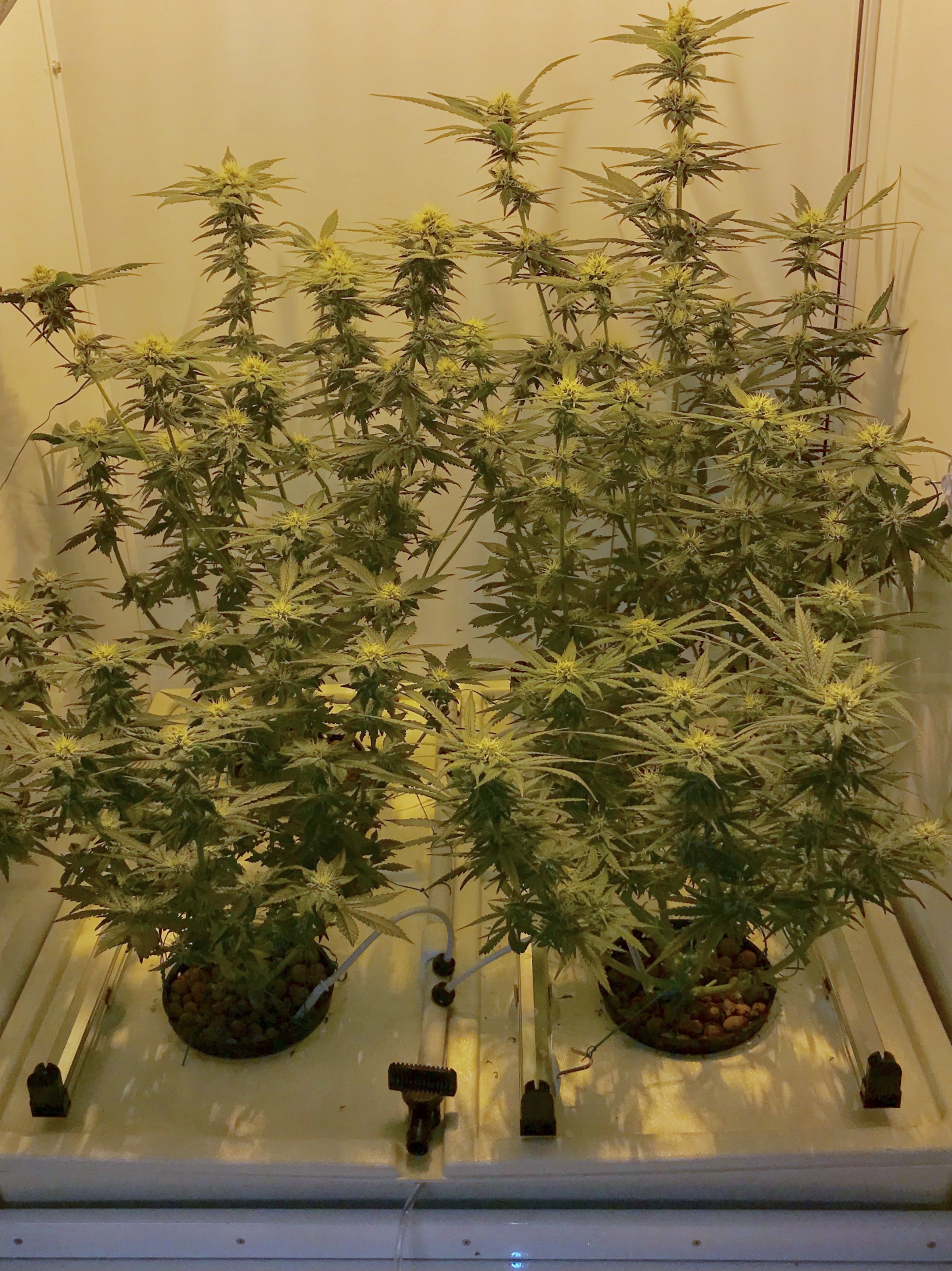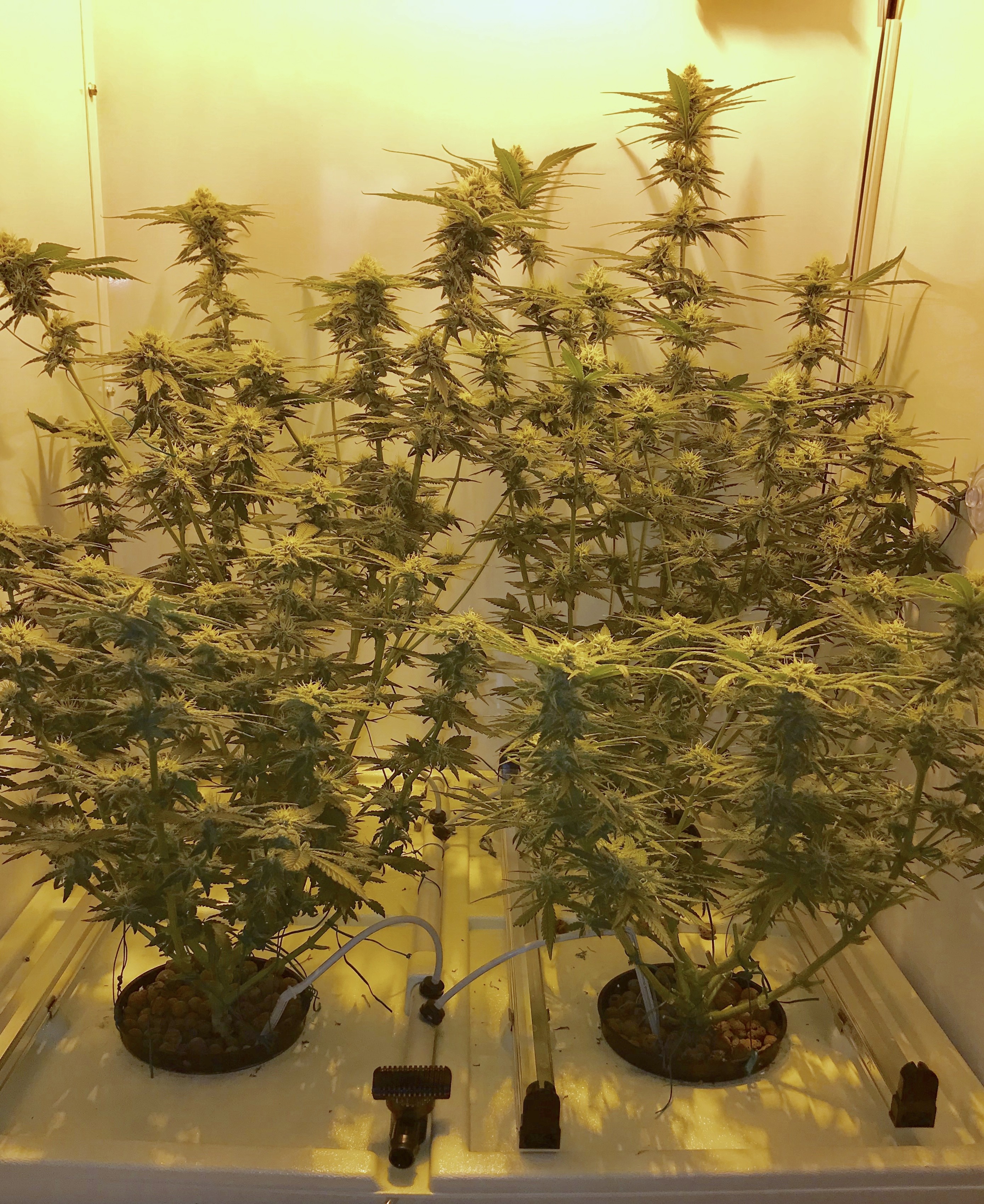 Jack Herer (rear left) is a small plant, but buds look nice, and BadAzz Kush (right rear) is a monster. I've got humidity down to 35-40%.