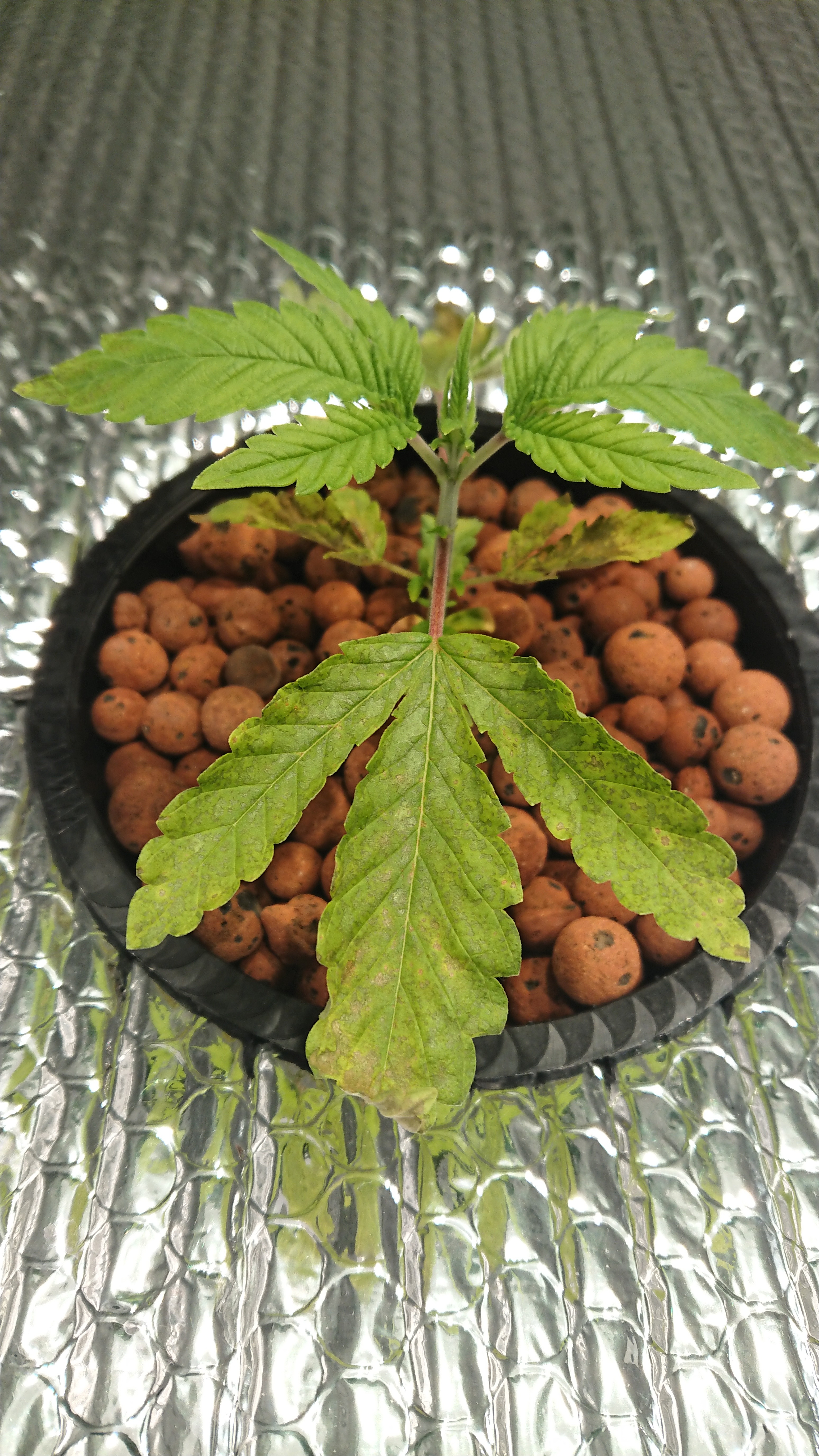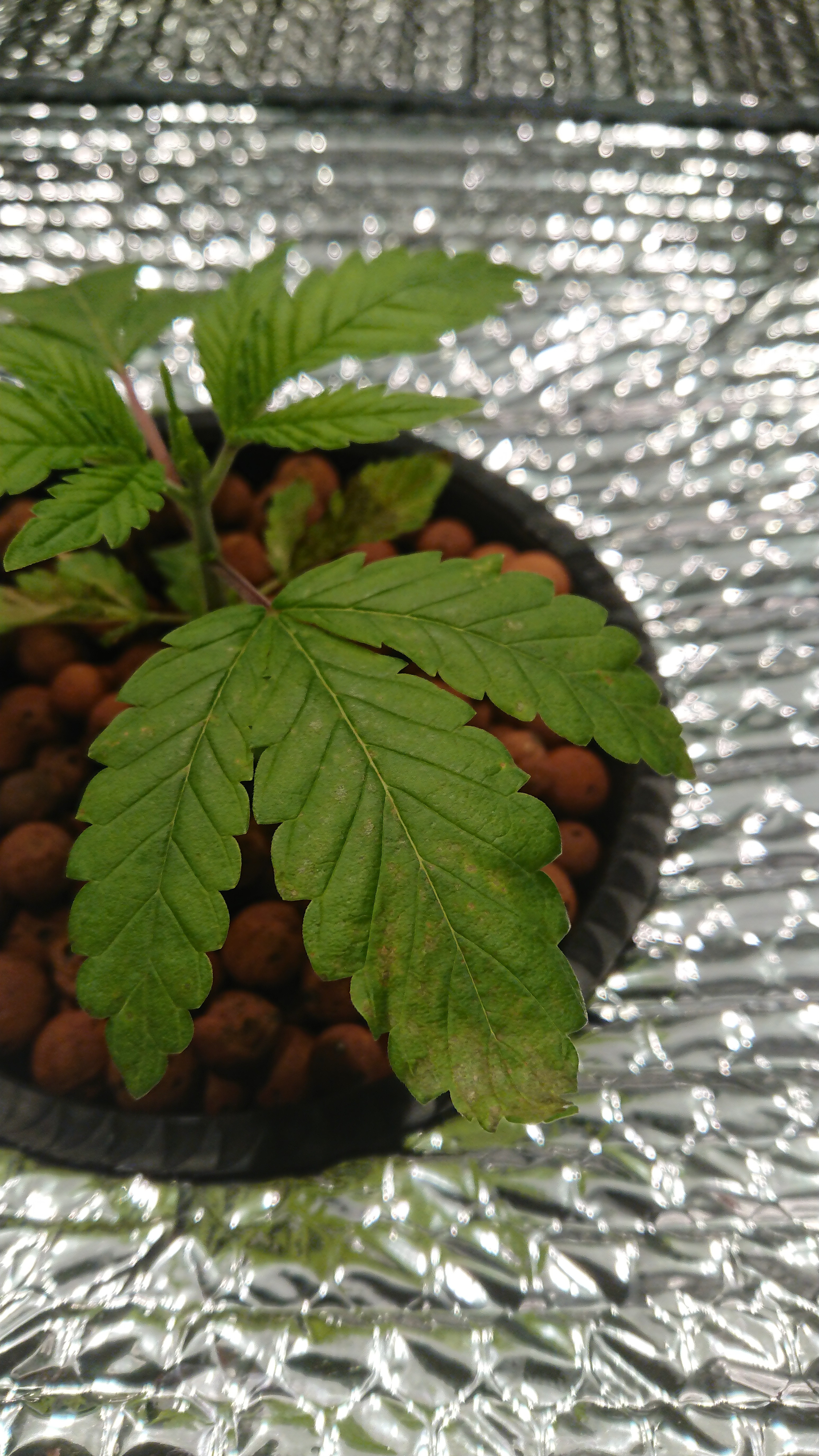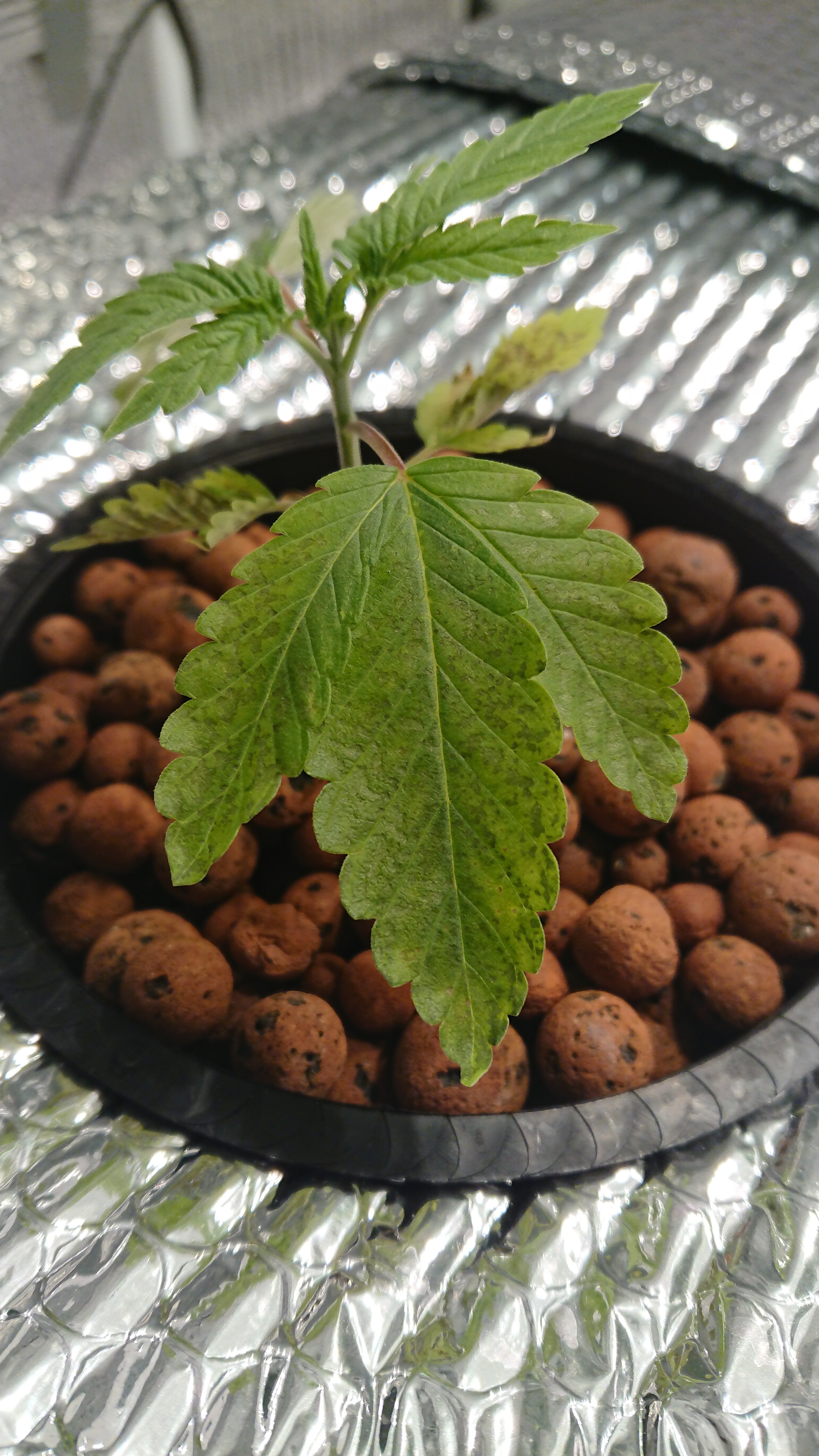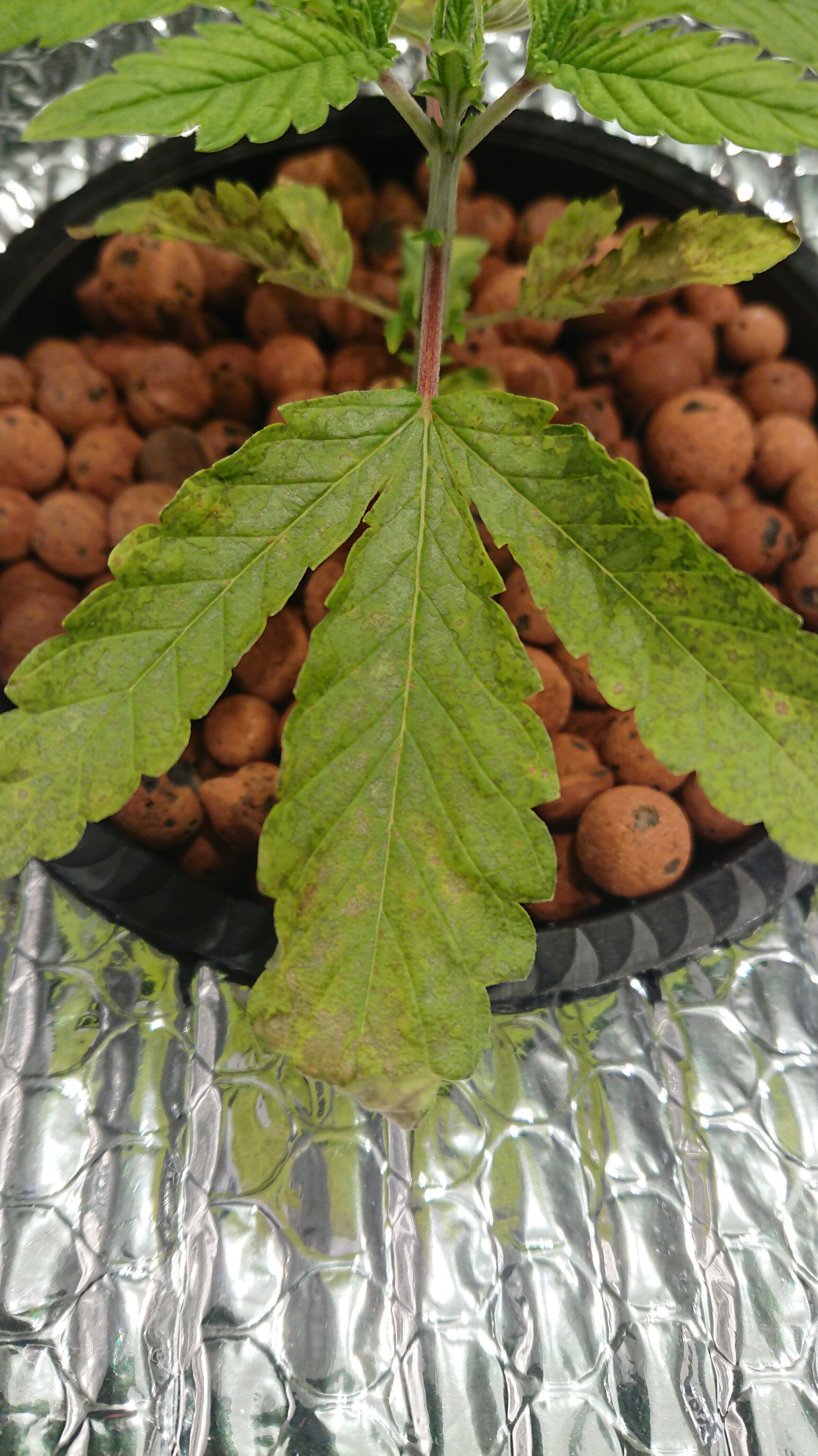 hey so im doing a current culture setup basically little girls are on week two in the buckets. Just noticed this starting the other day and the worst pic is what the little girl looks like today. The most developed plants, up top and at the roots, are showing the worst sings but def noticing some spotting on the smaller ones starting now too. Running lots of air so started with there lowest hyperairated schedual which puts week one at like 80 ppm. Changed water the other day uo to 120ppm now. I strongly feel they are deficient but was advised by current culture to keep ppms there cause plant seems small they said and ensure water level is at second ring of pot. water level has been around there consisantly and no higher than 74,room temps between 70-75 night and day humidity between 40-75 ph between 6-6.3 no more and stead there last two weeks. Please help dont know if i should go against there advice and bump up ppms because the more developed plants showing the worst and this started at the bottom leaves now that i am paying closer attention. Or flush and keep the same ppm. or hand feed the most developed ones for a bit. The one plant went from the best pic to the worst in like two days. Should also mention fairly new still so any help appreciated. Def first grow in RDWC Thanks in advance