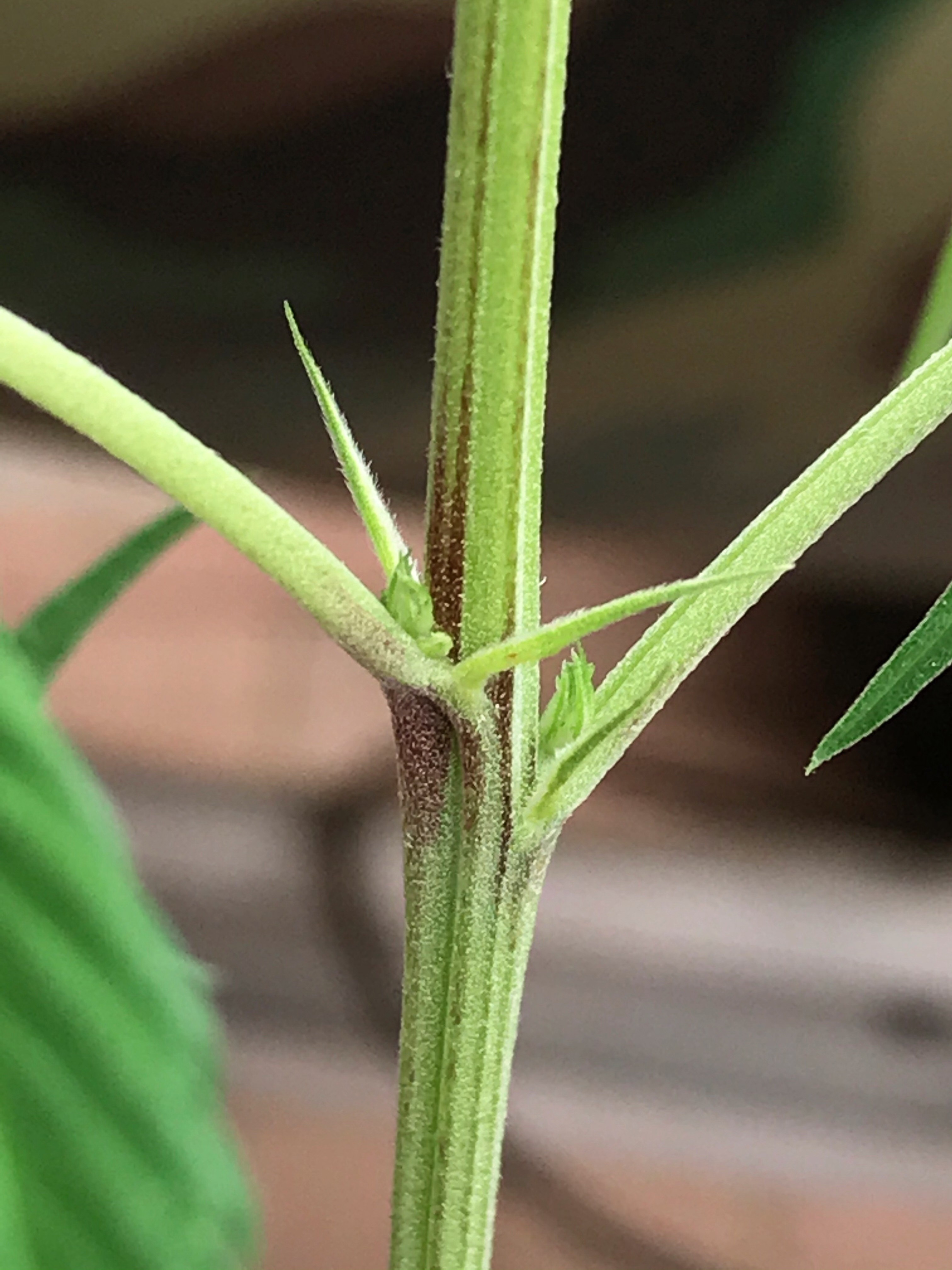 There are no pistils in the pictures above, only pollen sacks. That is a Male plant, you are looking at stipules.