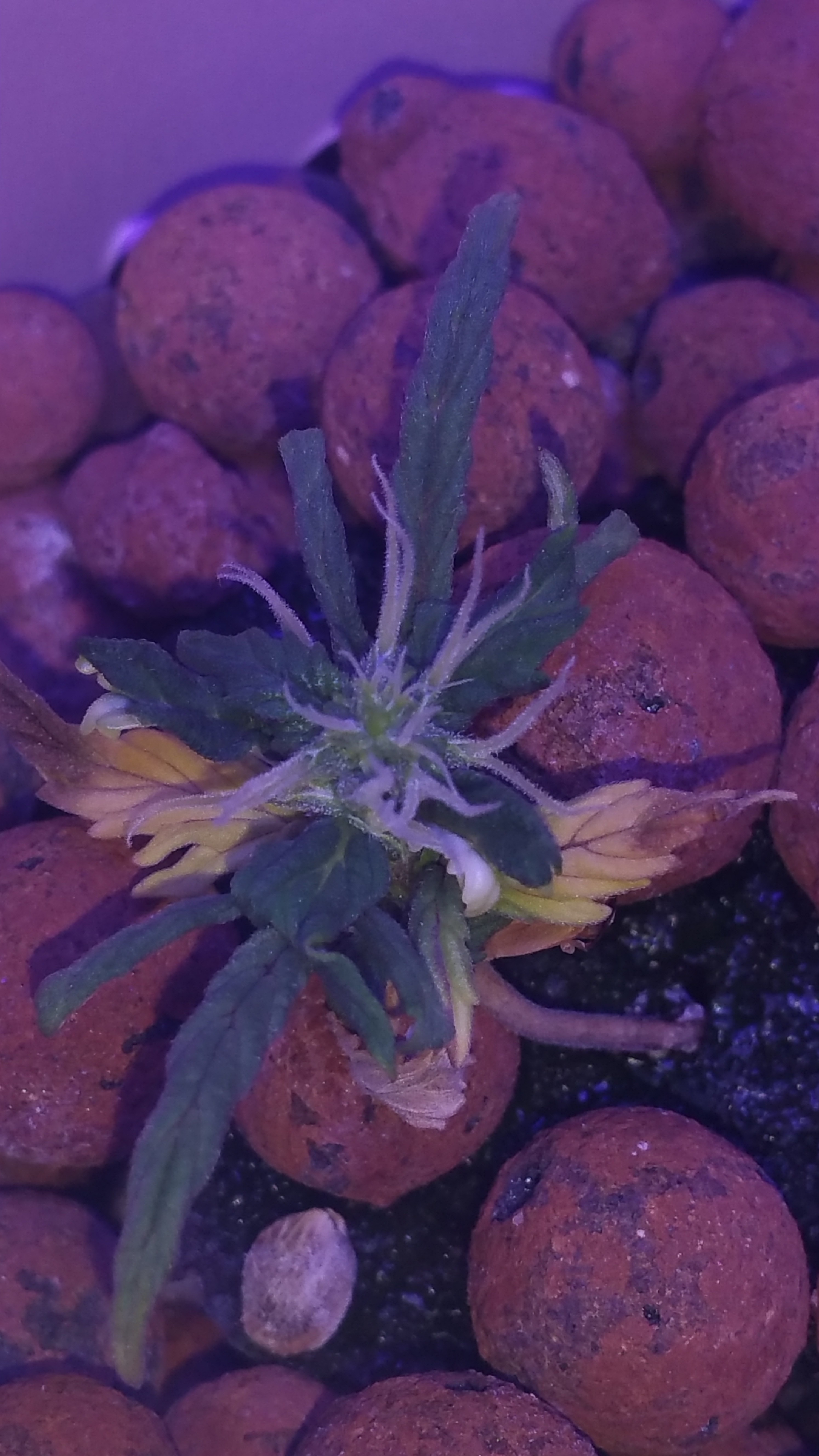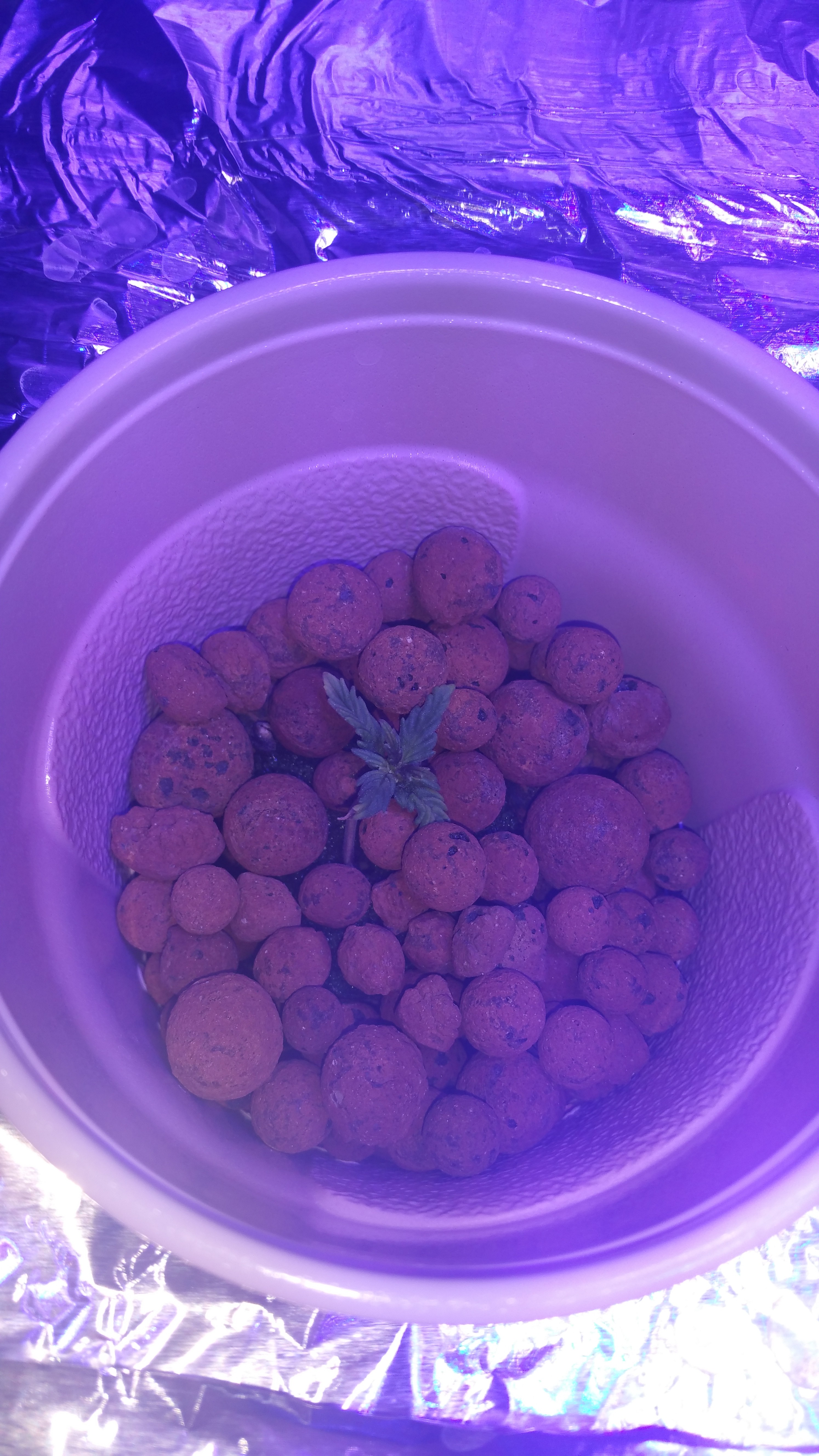 I checked my tent tonight and just happened to check the tiny remnant of a Jock Horror auto I tried to start at the same time I started the Blue Dream that is doing so well. The Jock Horror forced it's way out of the rooter somehow and it just never recovered. But it never died either.
