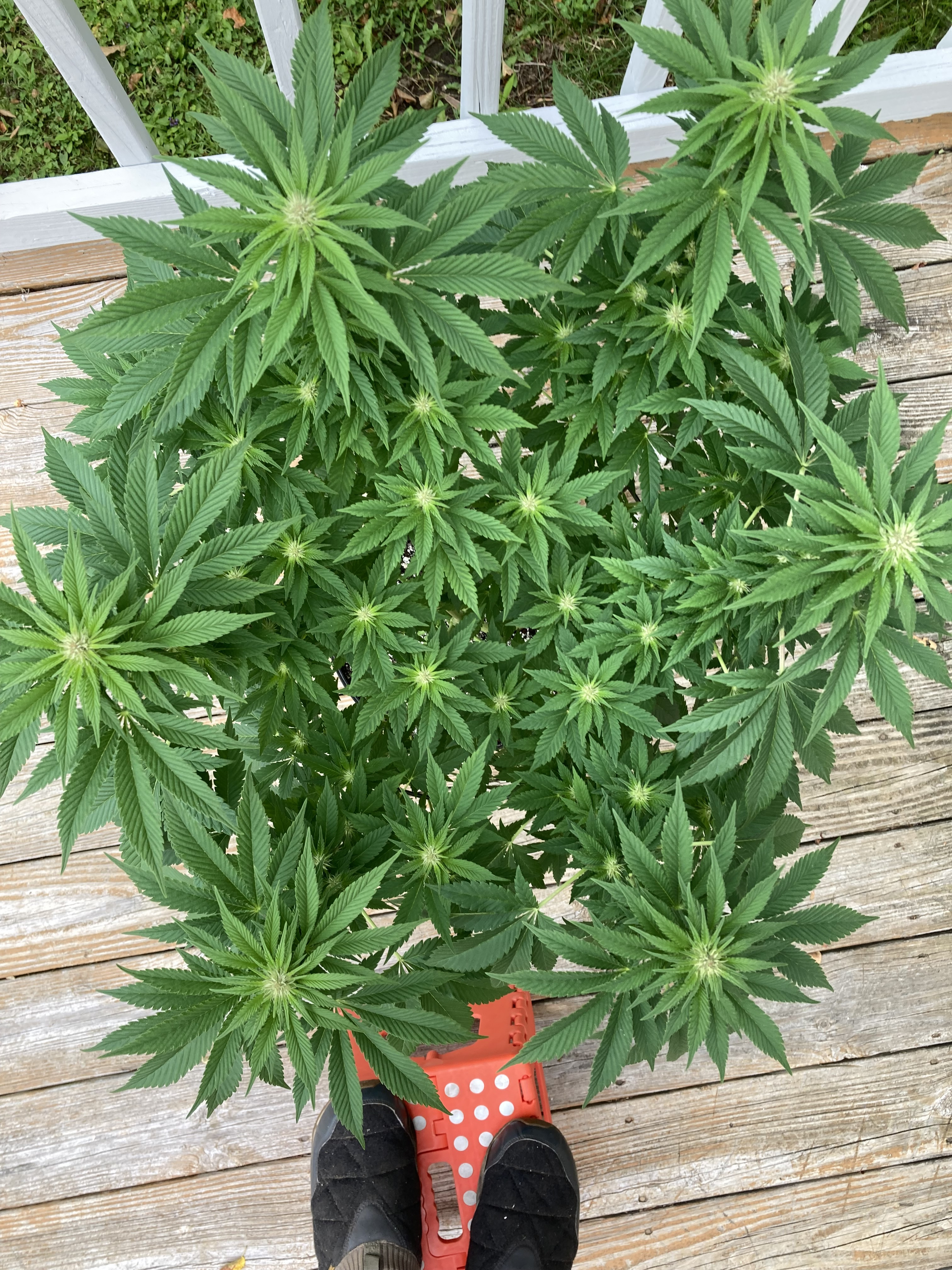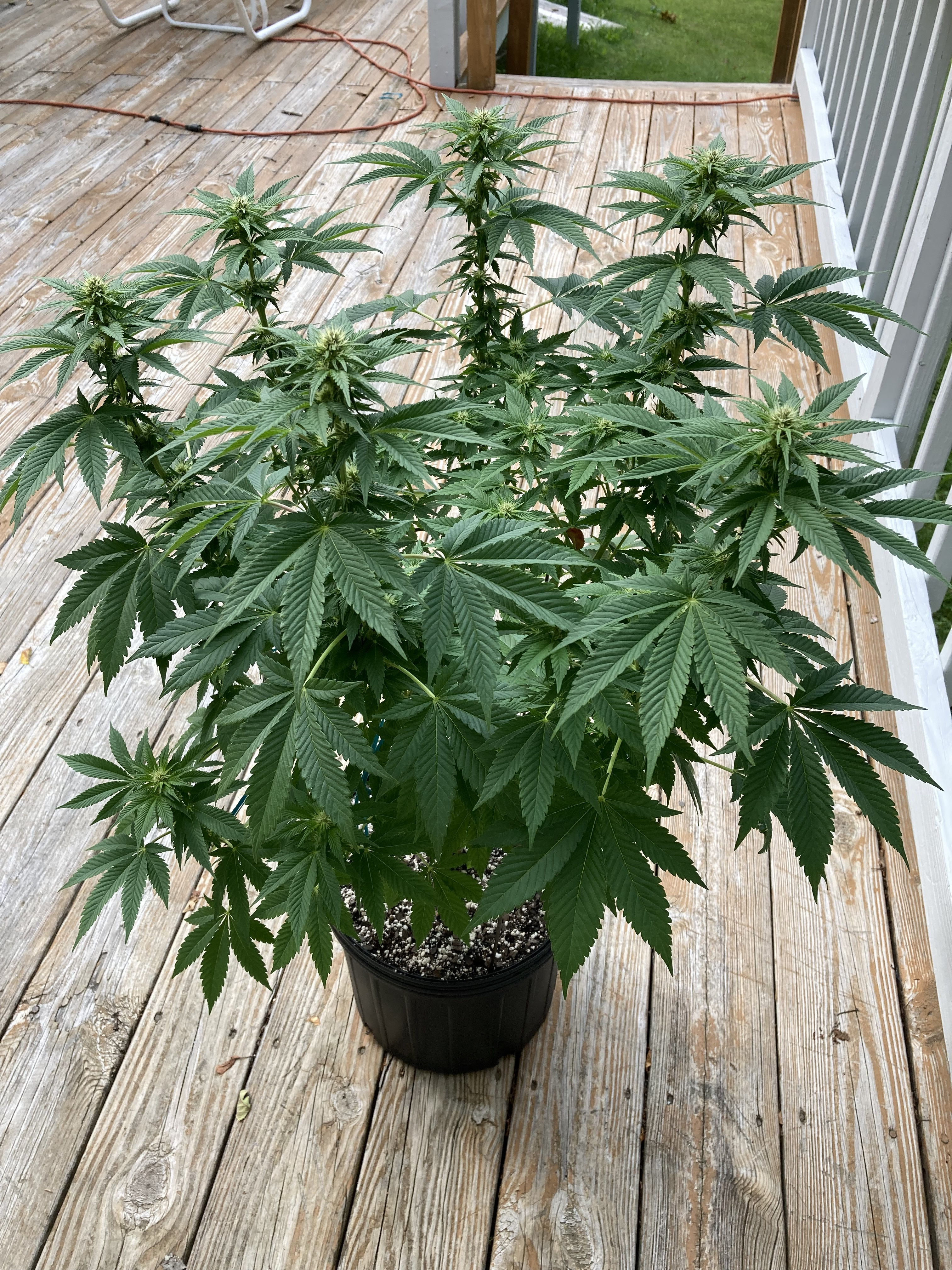 Speaking of which, noticed some preflower pistils on my small GG4 and have made the decision to force it into flowering while it is still easily portable. My goal is to move it towards matching the daylight hour schedule of mid September as I'll be gone for a week and it will have to fend for itself outside. By then it should be in week 8 or 9 of flower. So we'll see. This weather ain't helping any! Actually have it inside under a light for the day....or next 3. Been trying to keep it out of the rain when possible for fears of WPM. One thing about growing inside in the winter with wood heat, never have mold worries. Stay dry, I'm so bored I think I'll go out and split some wood in the rain