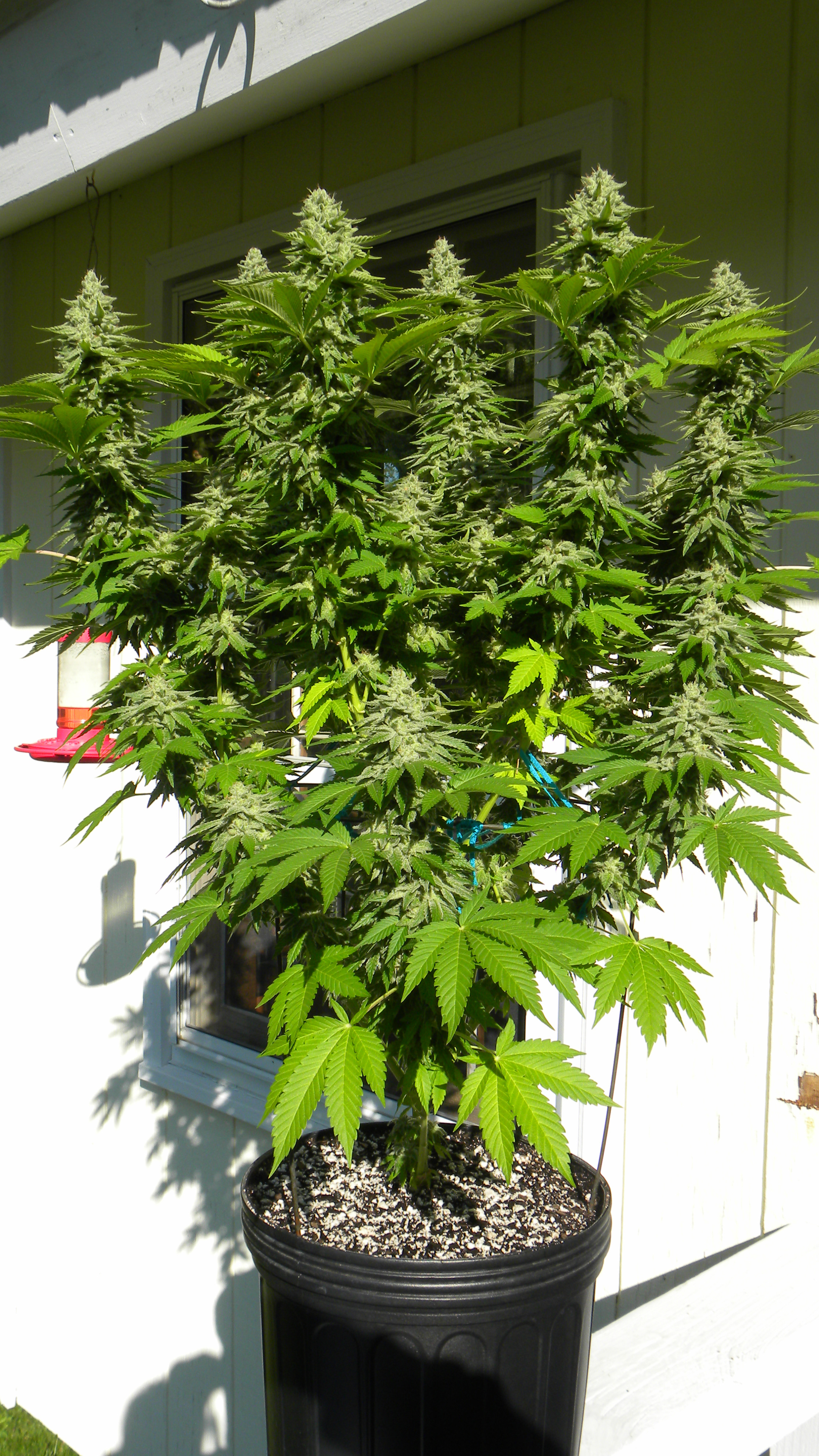 The plant in front is the GG4 (there's 3 plants in the room). Notice the the node spacing difference, indoors was very stretchy.
