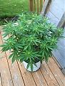 Hi GreenState just a thought about going away.. you could place a drip pan under your container water really well and place it in a shady area if the heat is too much of a concern while away? It's what I did to mine when we left for 5 days. They did just fine. I love the blueberries, I do have 3 plants but never get enough between us and birds so I just got some sat. at our local farmers market size of a dime most of them.