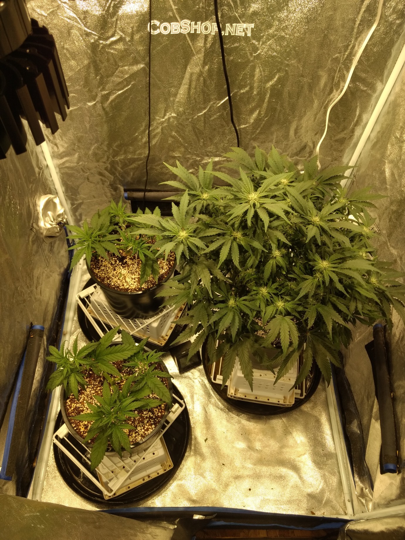 After a long day of flushing Coco, I finally have the other 2 planted. Bubba Cheese is in the front of the tent, white Widow CBD is in the back.
