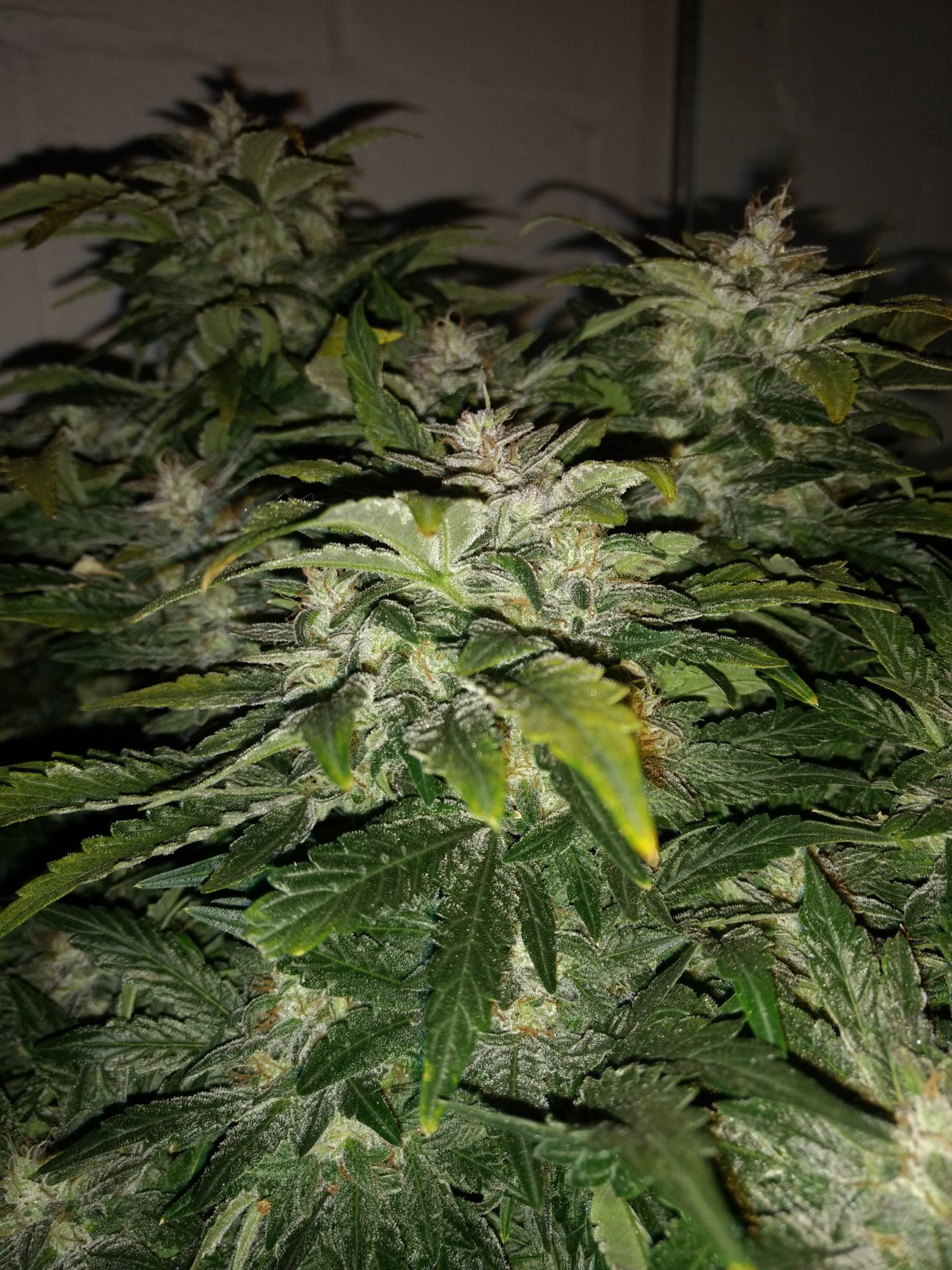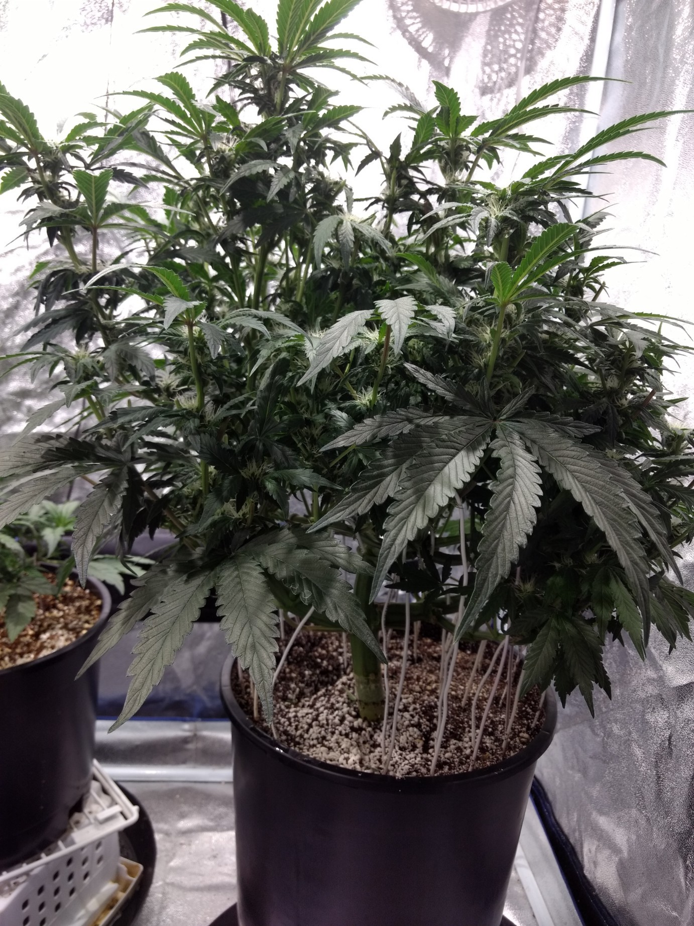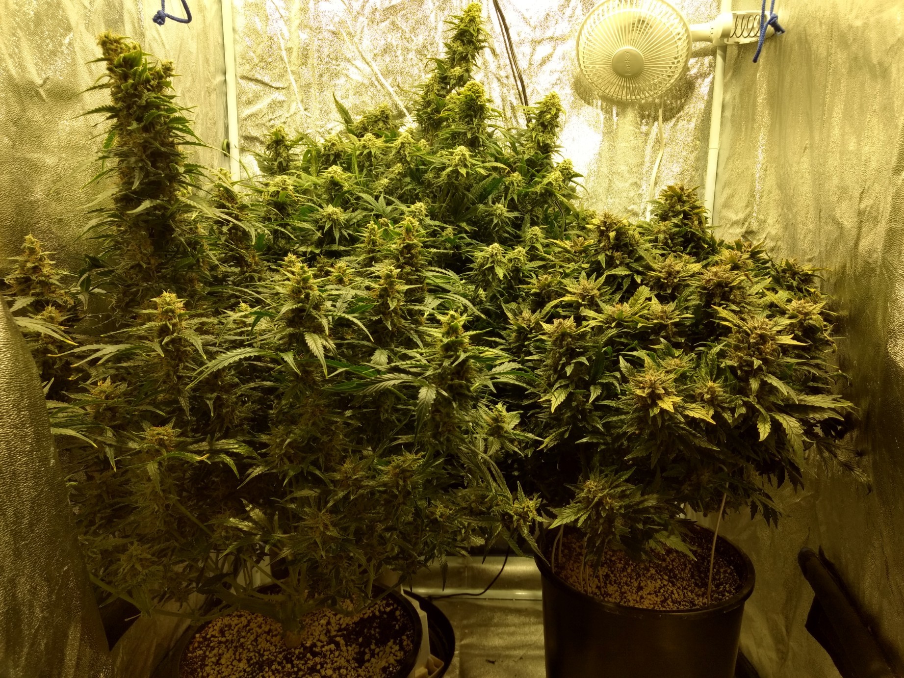 Looking good Mcubed I thought you were going to chop that GC lol your being smart to let her finish , as they are autos and I'm a firm believer in not stressing autos those girls look to be ready for their final homes .when I use hard pots I try to transplant when the leafs hit the edge of the pots ,with photos this isnt a concern, but the time it takes an auto to recover from being root bound will stop half its vertical growth