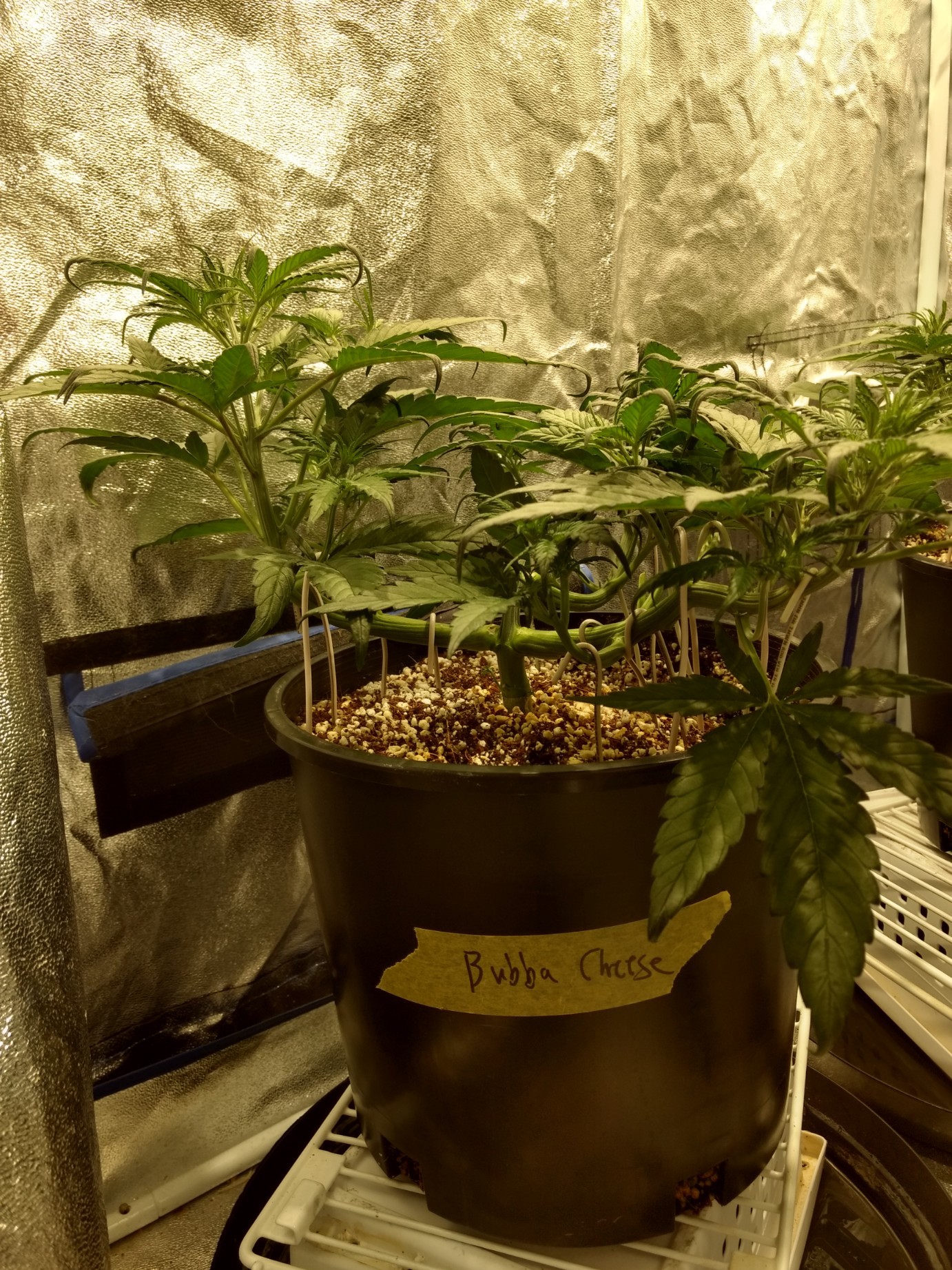 So far so good! Yesterday I went to train some more branches down on the bubba Kush, and accidentally snapped a branch. Luckily, it wasn't a main branch lol. I taped it together and will probably take the tape off in another 4 or 5 days to see if it's healed.